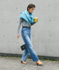 柔らかい綺麗なトーンのカラーストールは顔周りを華やかに見せてくれます。