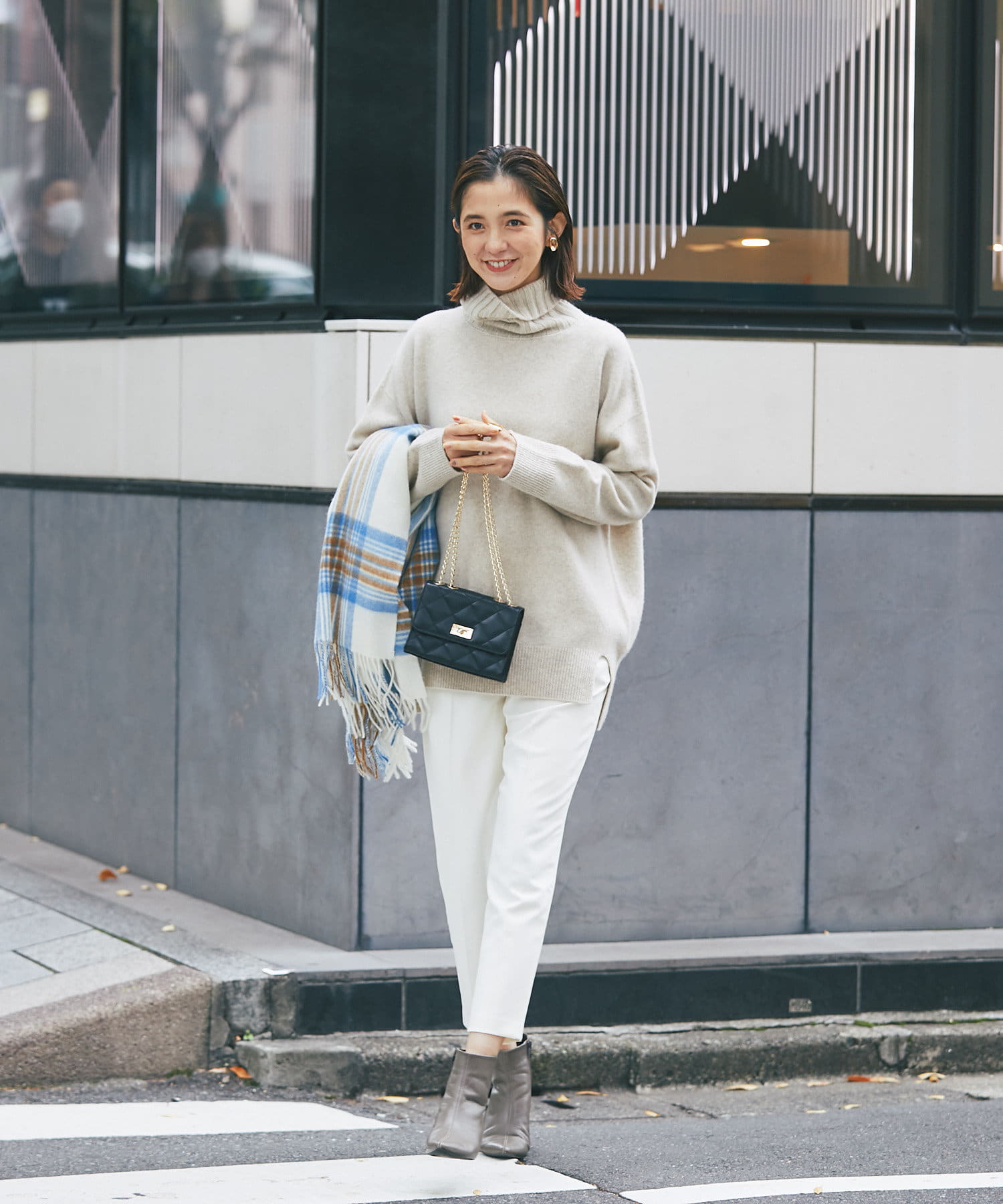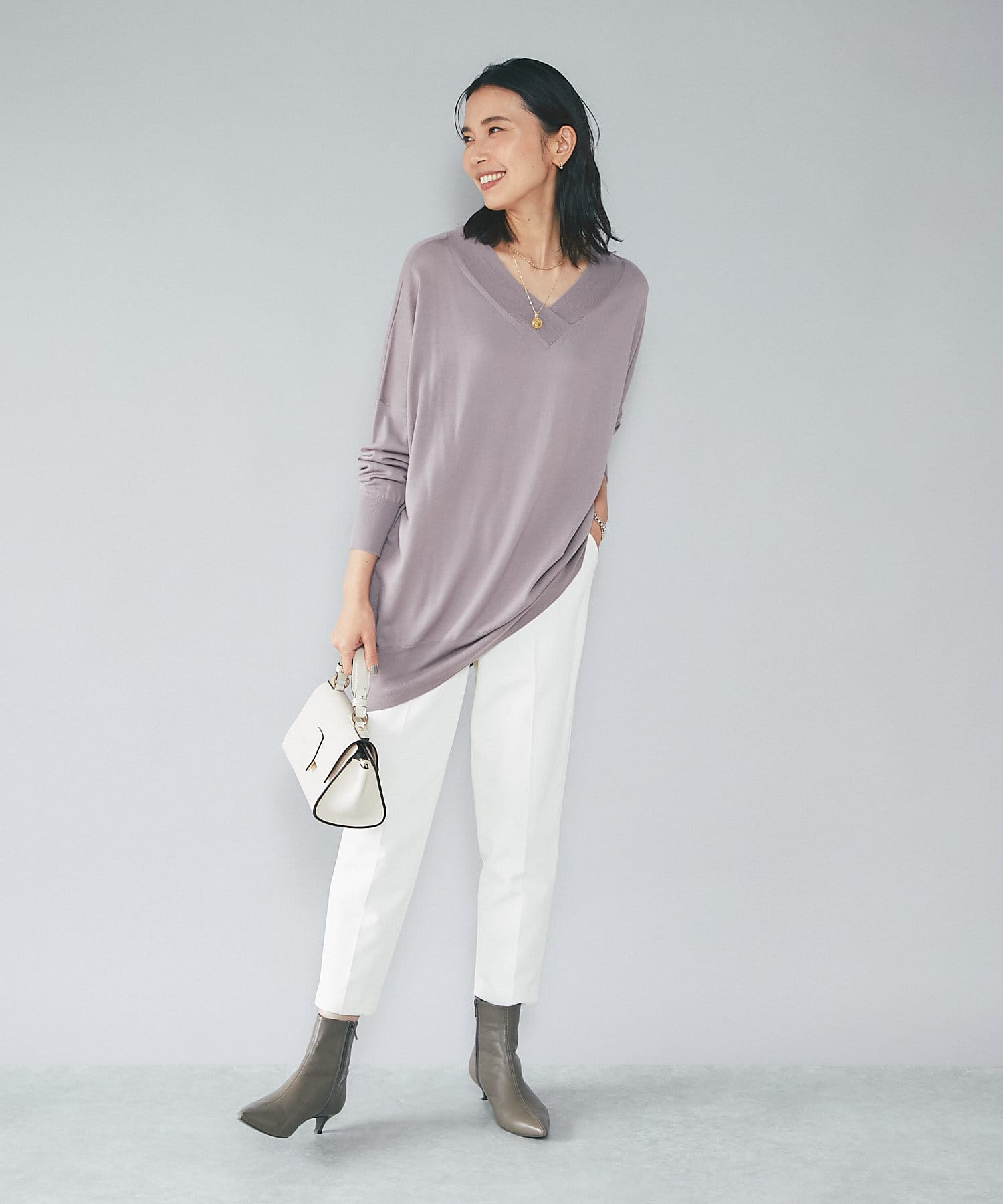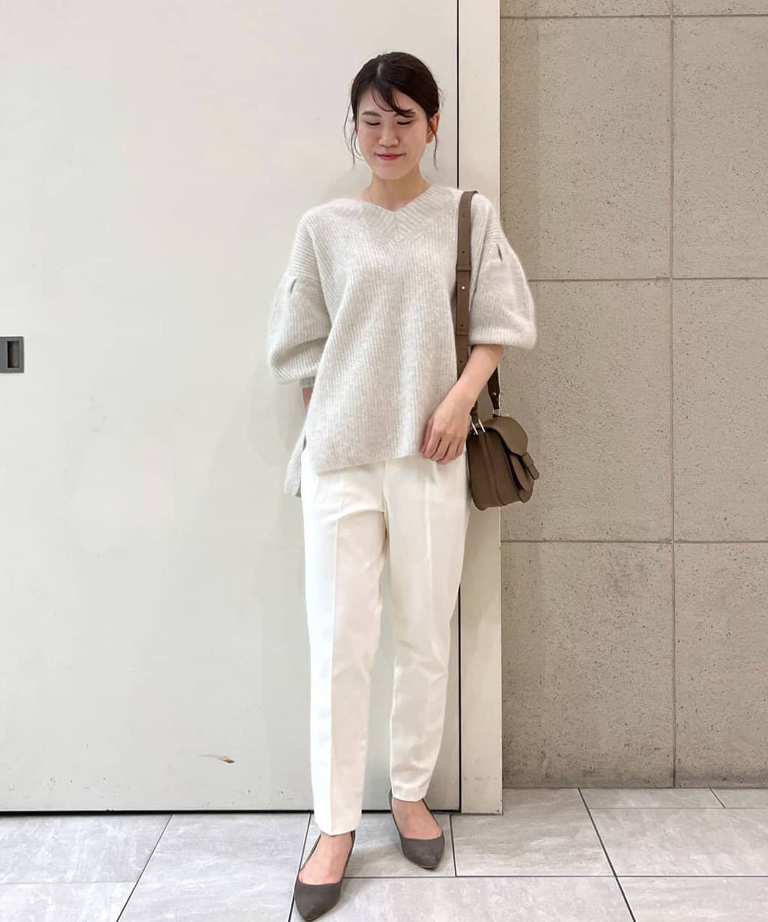 また、オフィスコーディネートにも相性がよく、とろみブラウスや、コンパクトなニットなどを合わせた上品スタイルにもぴったりです。