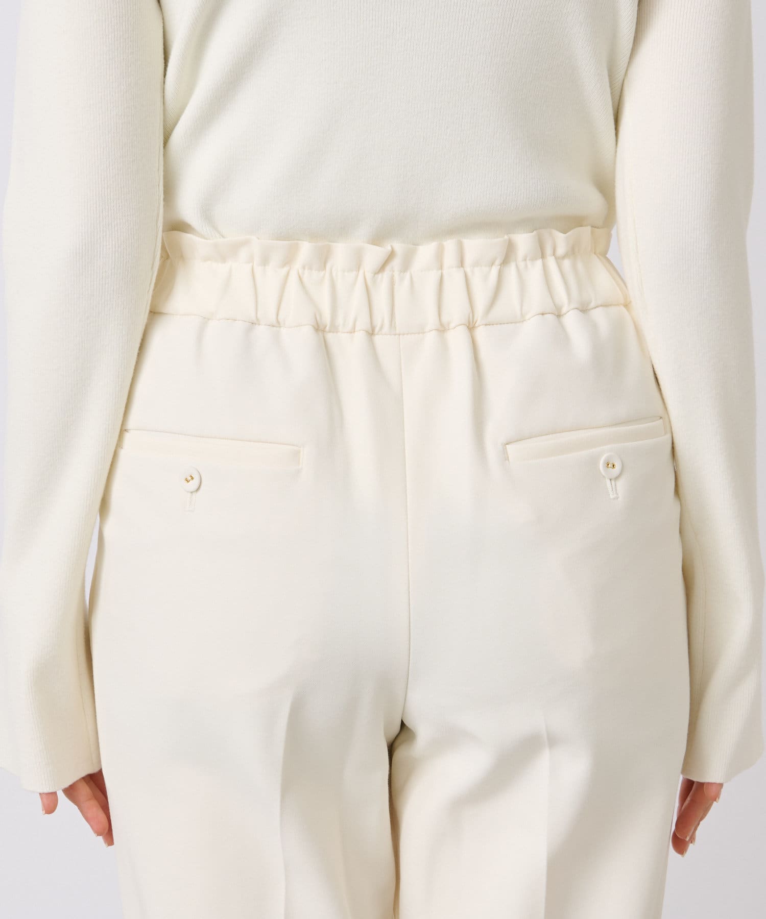 ベルト下にタックをとり、お腹周りをカバーできるように仕上げ、安心感も抜群!