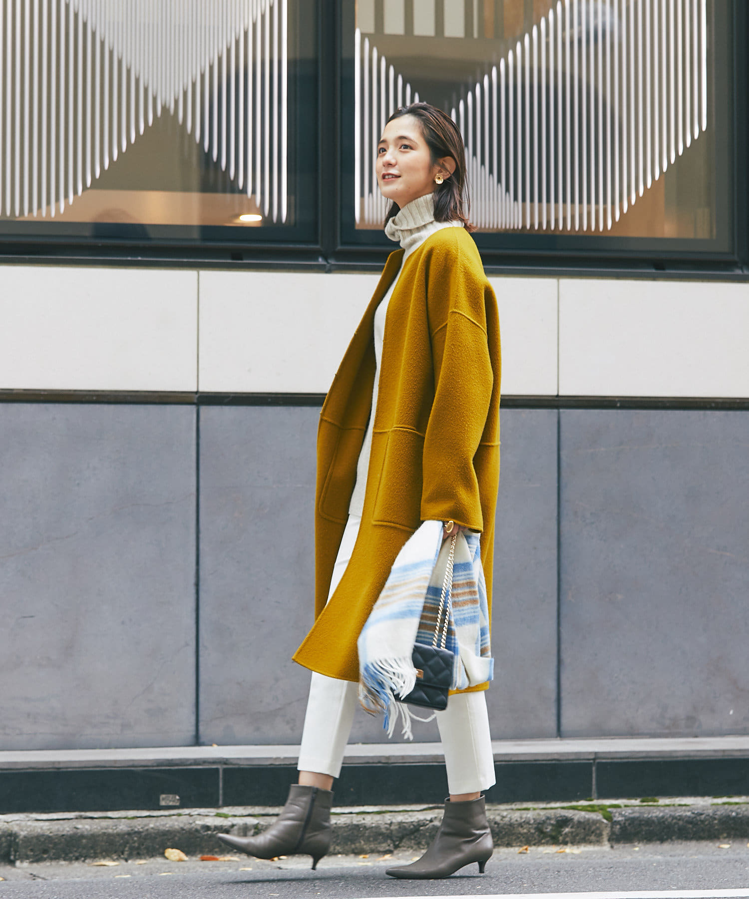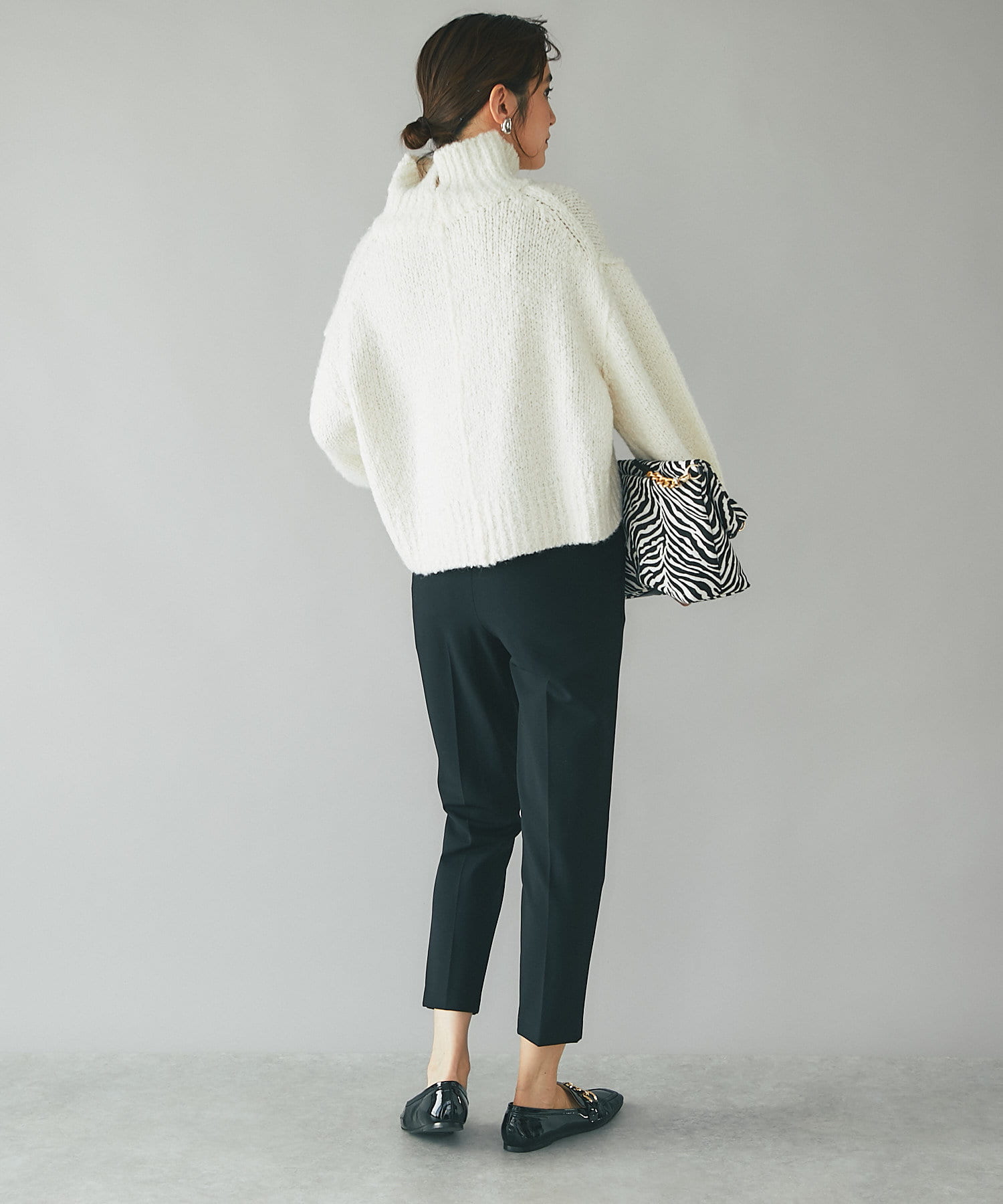 ニットコーデも重くならないクリアで膨らみのある生地を使用し、軽やかにな印象で着用して頂けます。