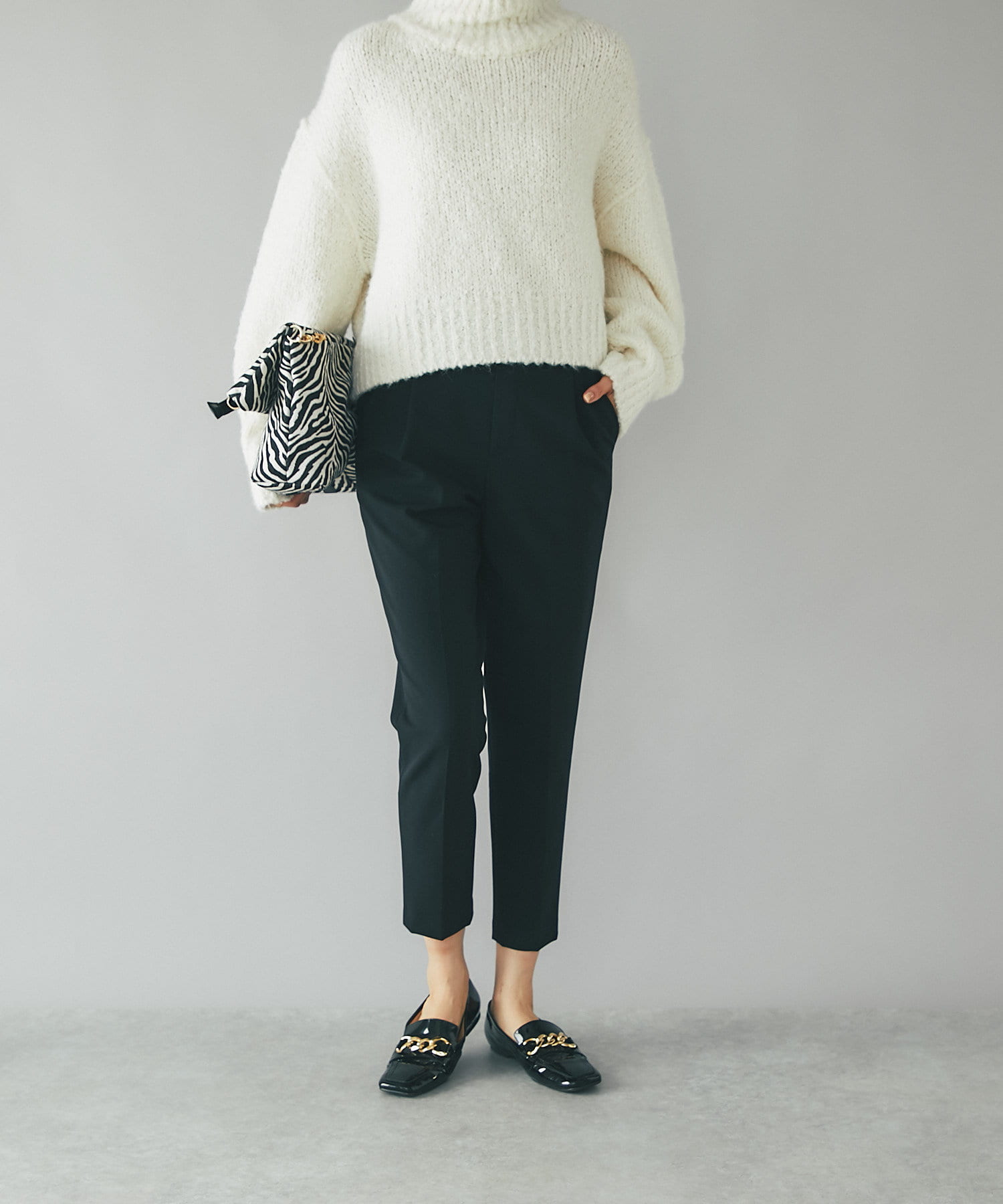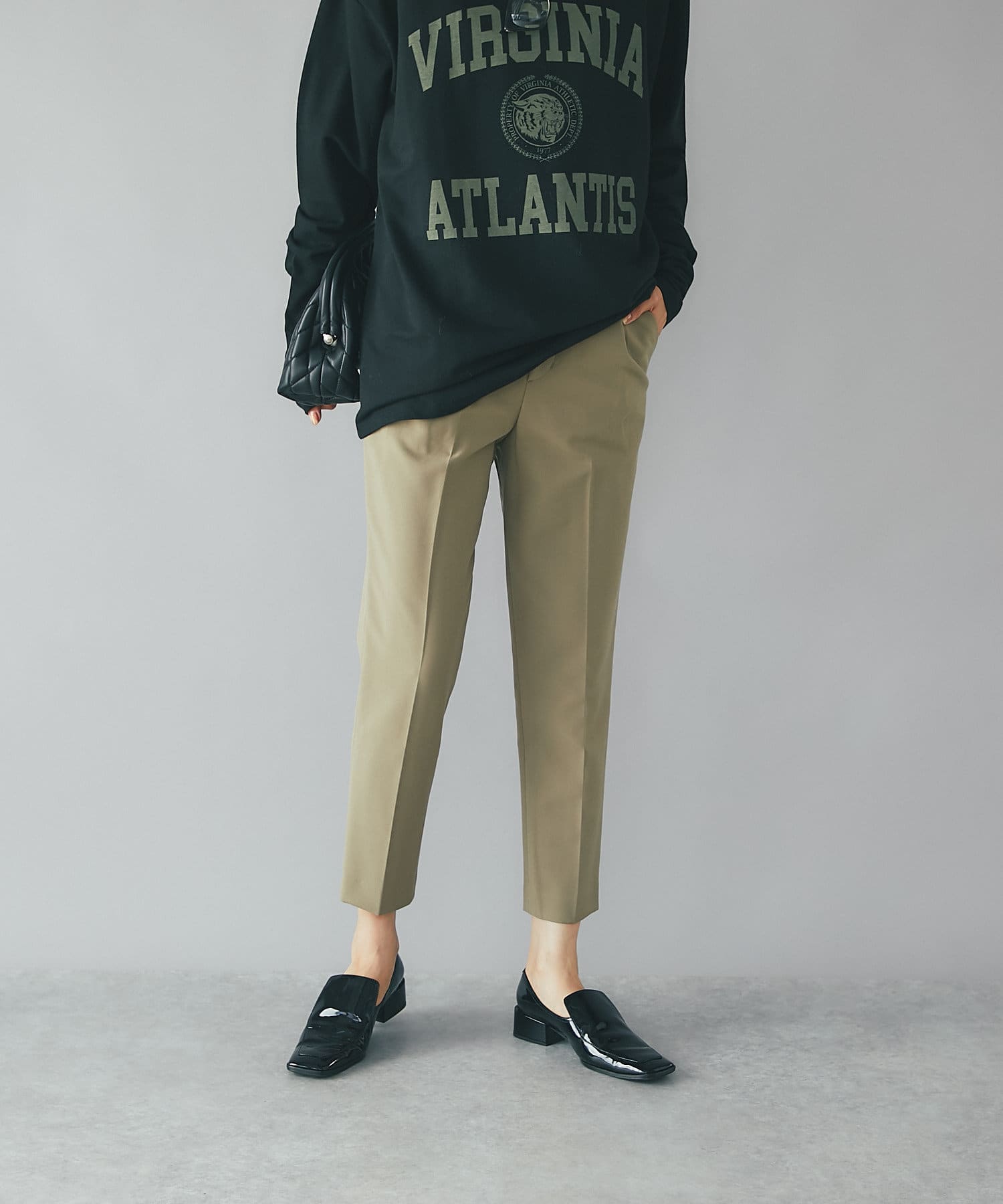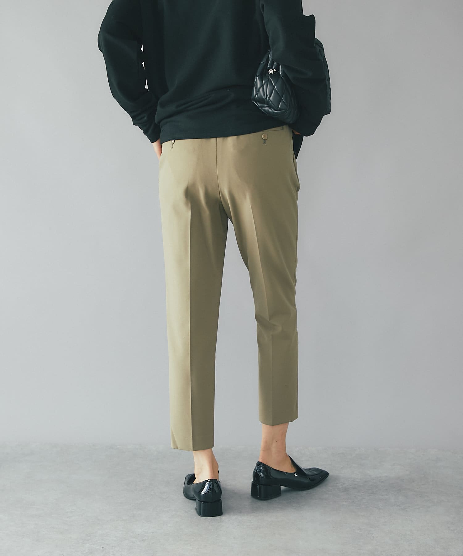 すっきりと美脚に履けるセンタープレステーパードパンツ。