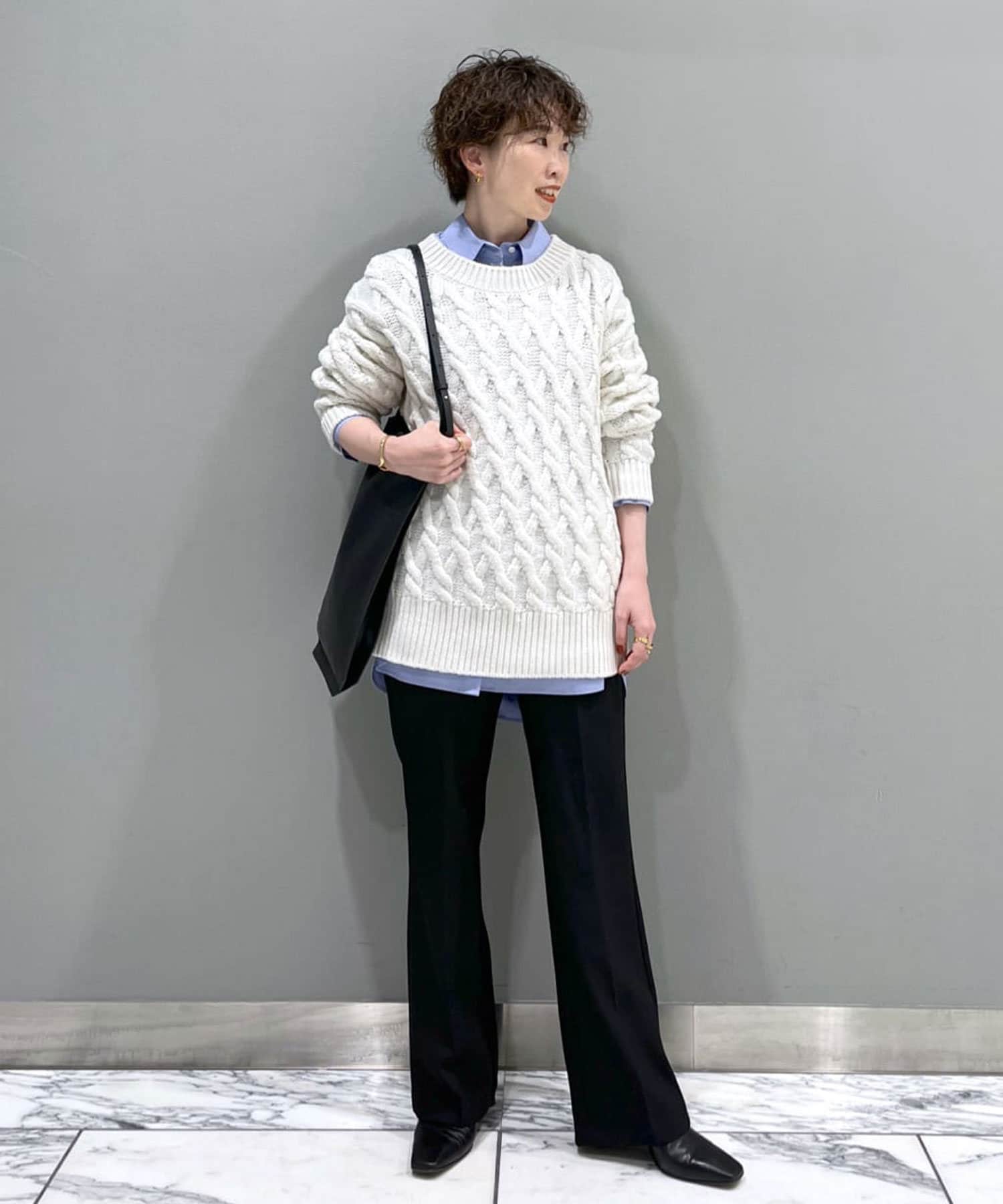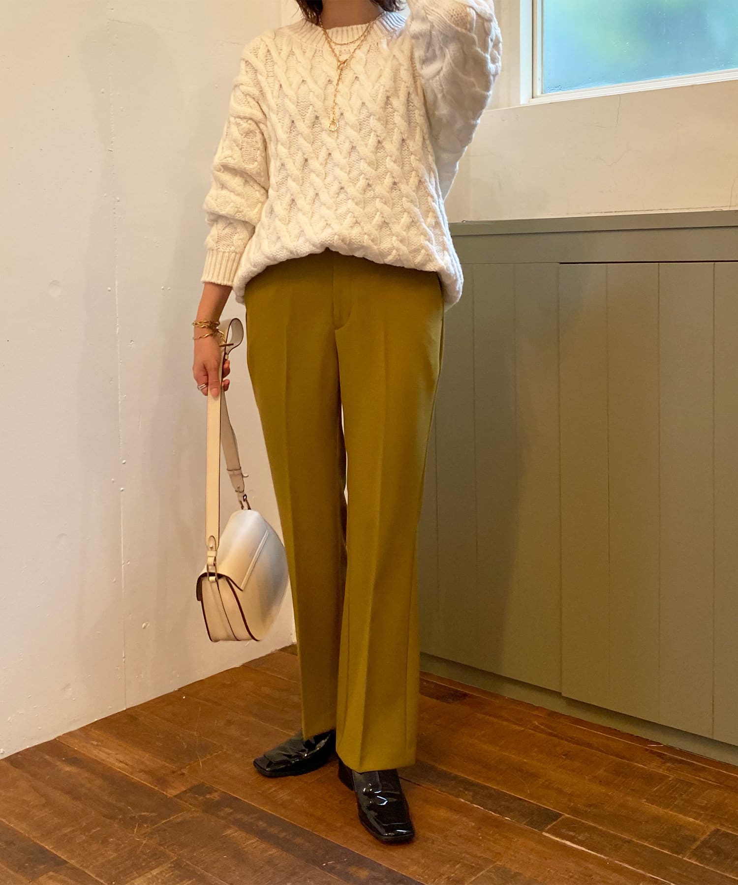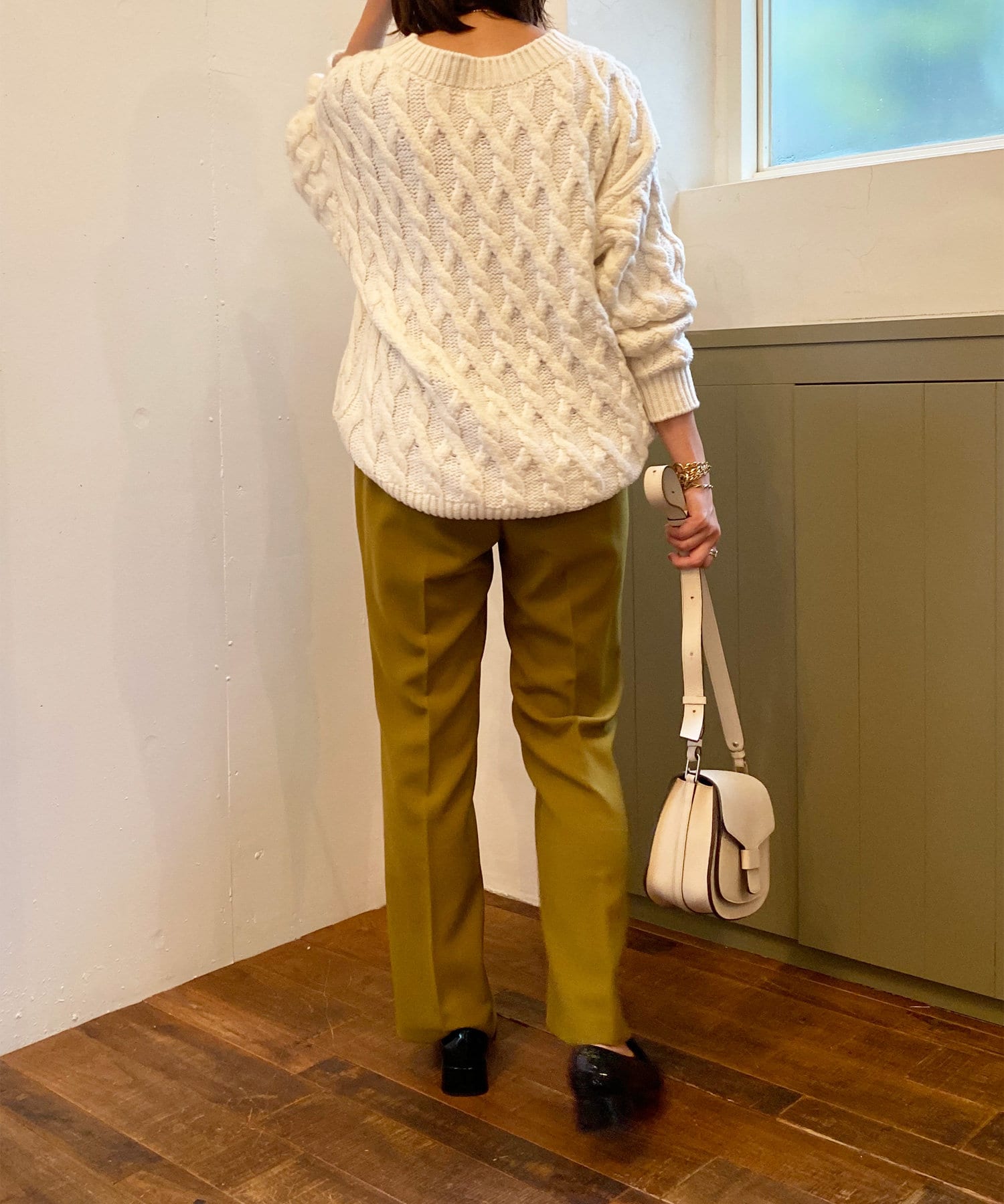 カジュアルスタイルには今季らしいざっくりとしたシルエットのニットを合わせ、カラーをアクセントにして頂くとよりトレンドライクな着こなしを楽しめます。