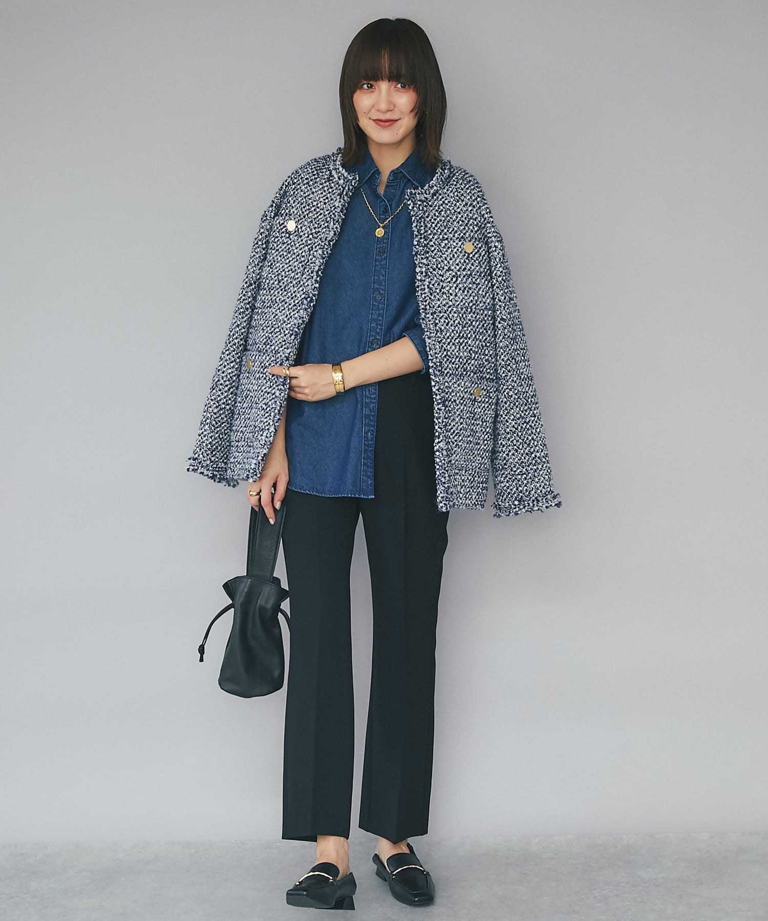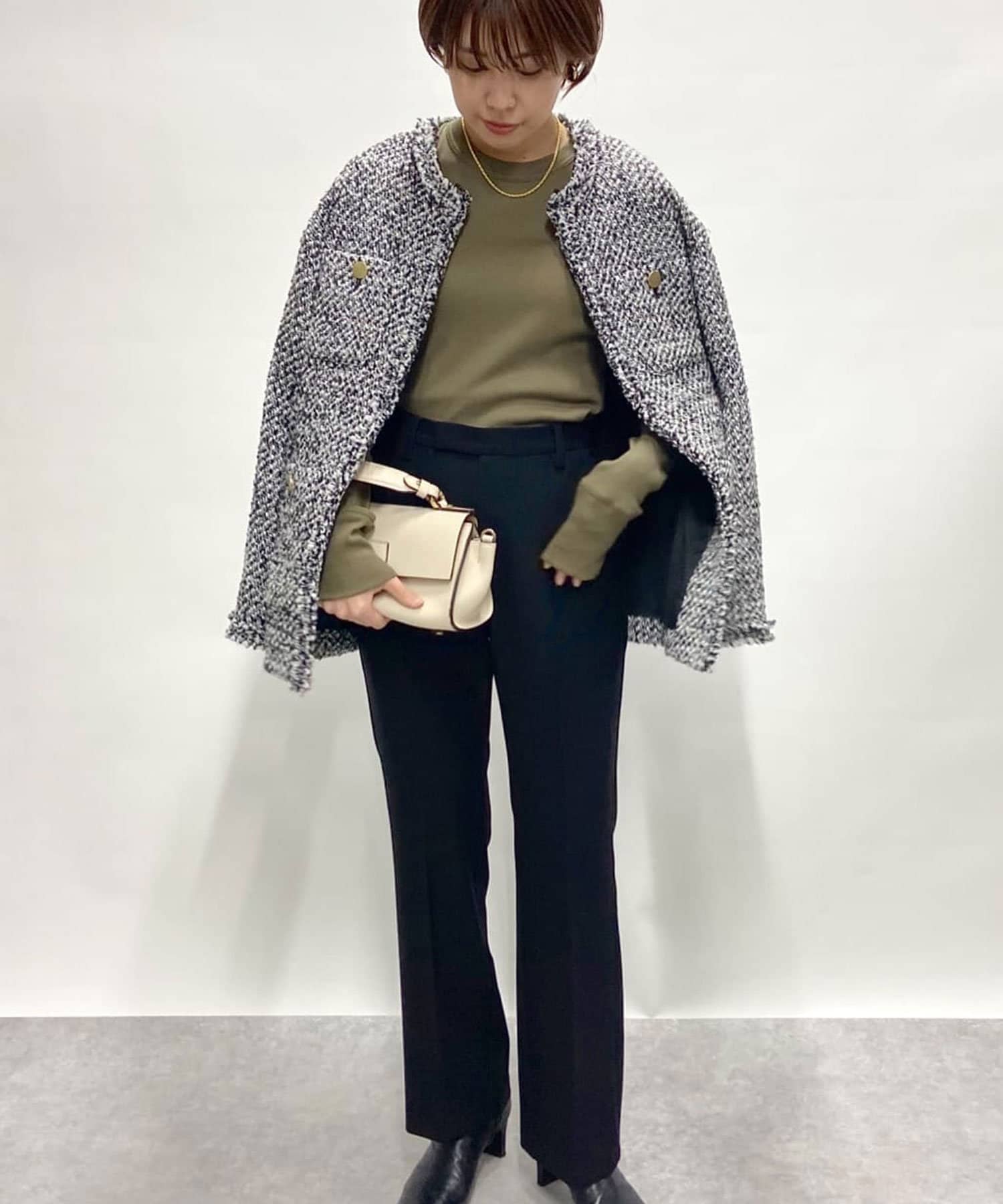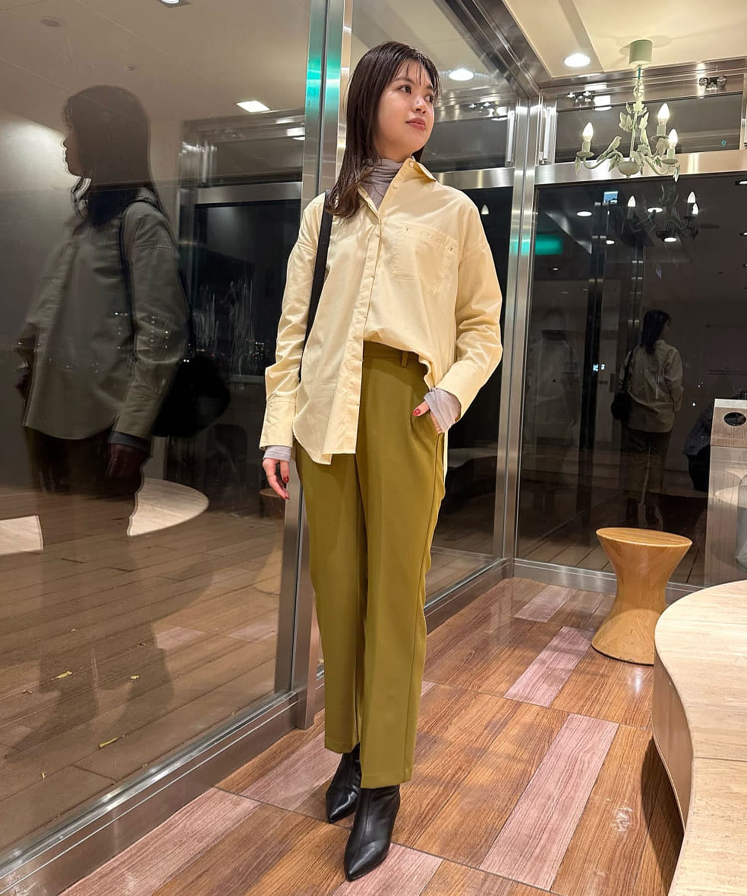カジュアルスタイルには今季らしいざっくりとしたシルエットのニットを合わせ、カラーをアクセントにして頂くとよりトレンドライクな着こなしを楽しめます。