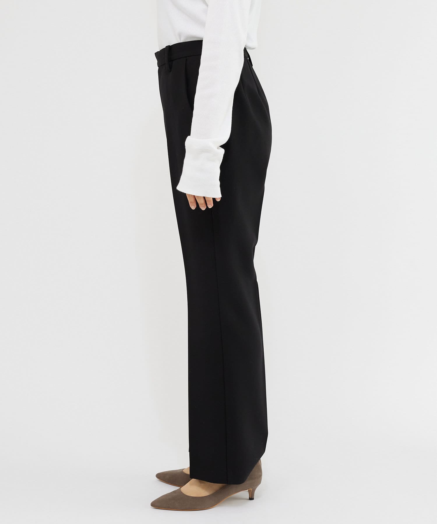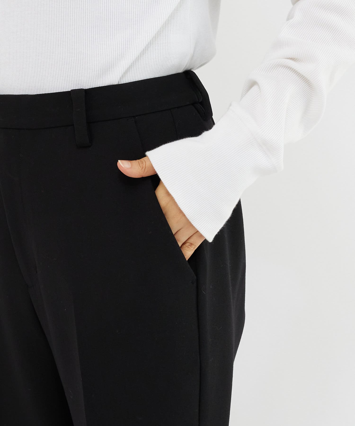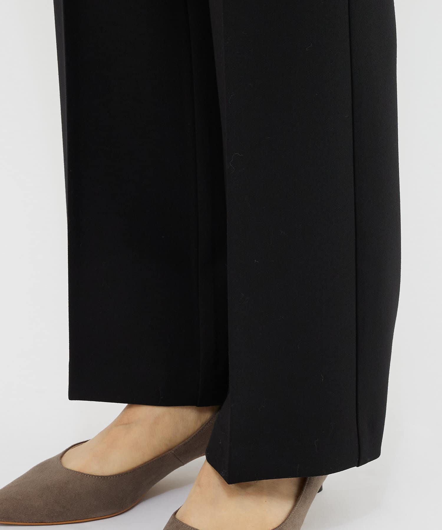 裾に向けて自然に広がるスッキリしたシルエットにセンタープレスを施し縦長シルエットを強調。