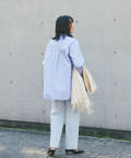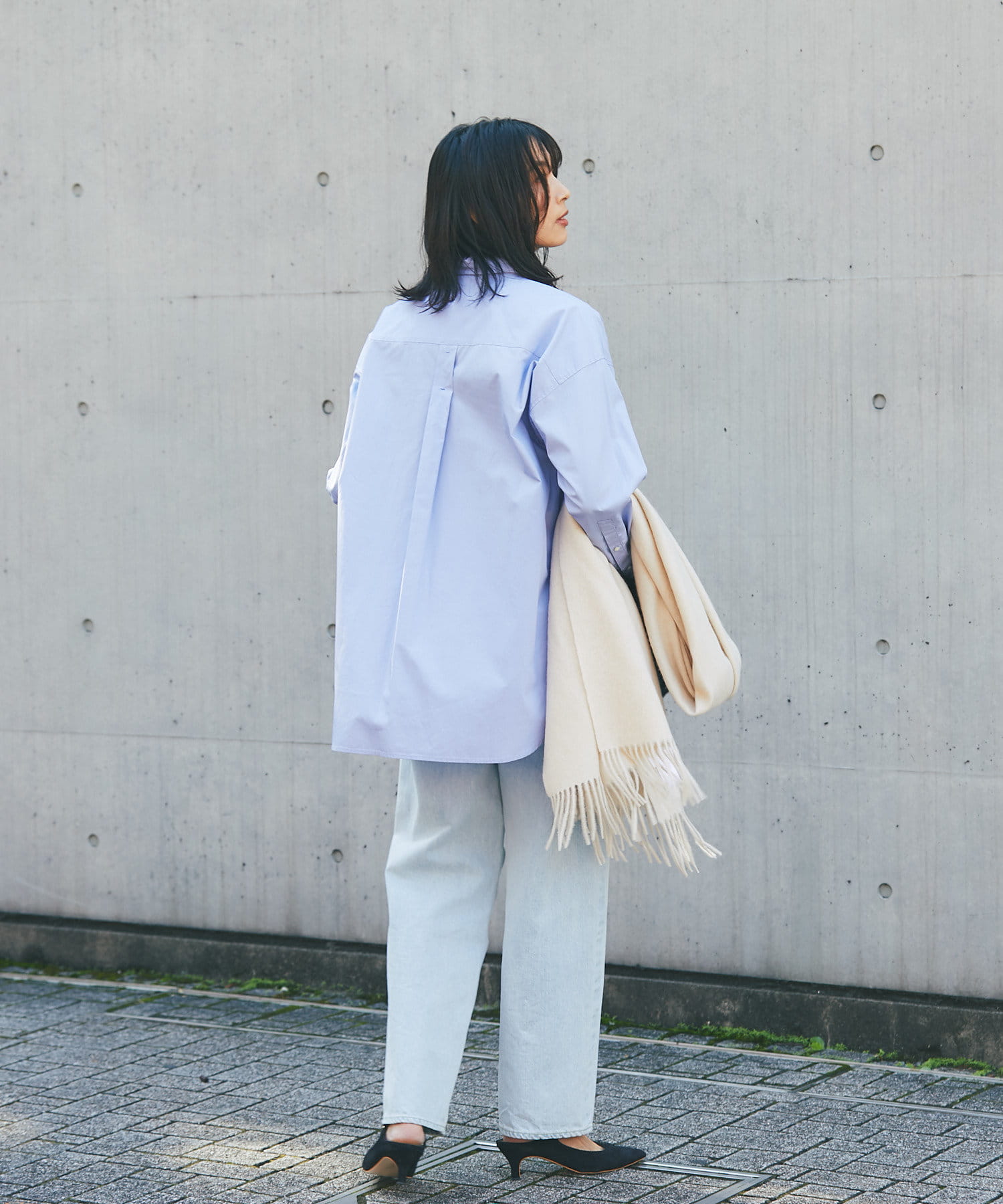 綺麗なブルーに合わせた淡いカラーのシャツやニットなどでカジュアルにコーディネートして頂くと大人のこなれ感を演出できます。