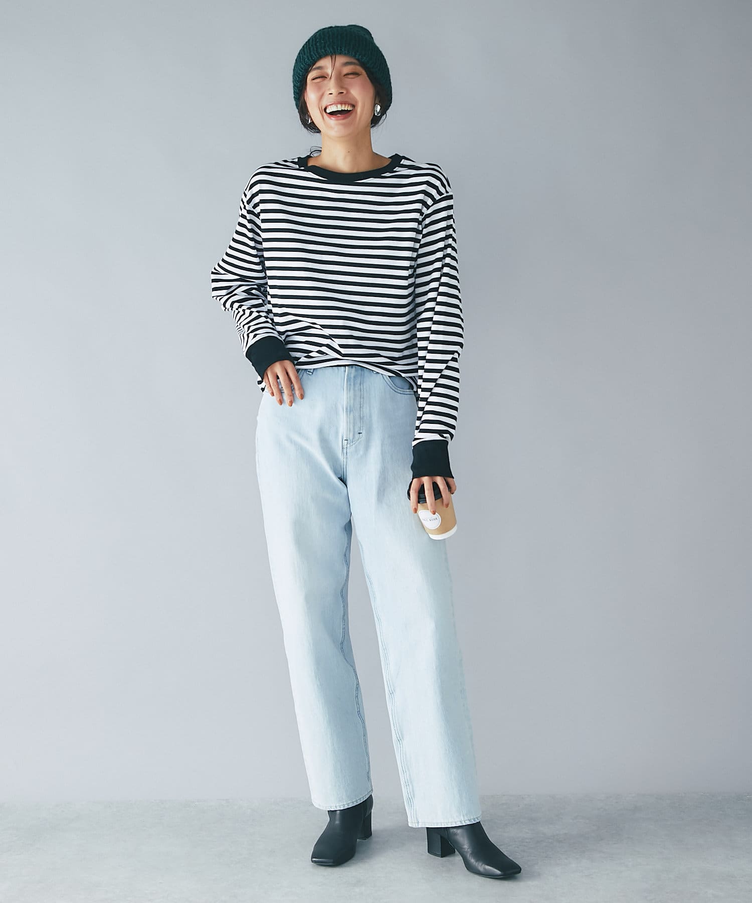 ゆとりのあるストレートは野暮ったくなりがちですが、LEAはパターンにこだわることで美脚に、そして脚長に見せてくれるYANUKらしいゆるストレートデニムです。