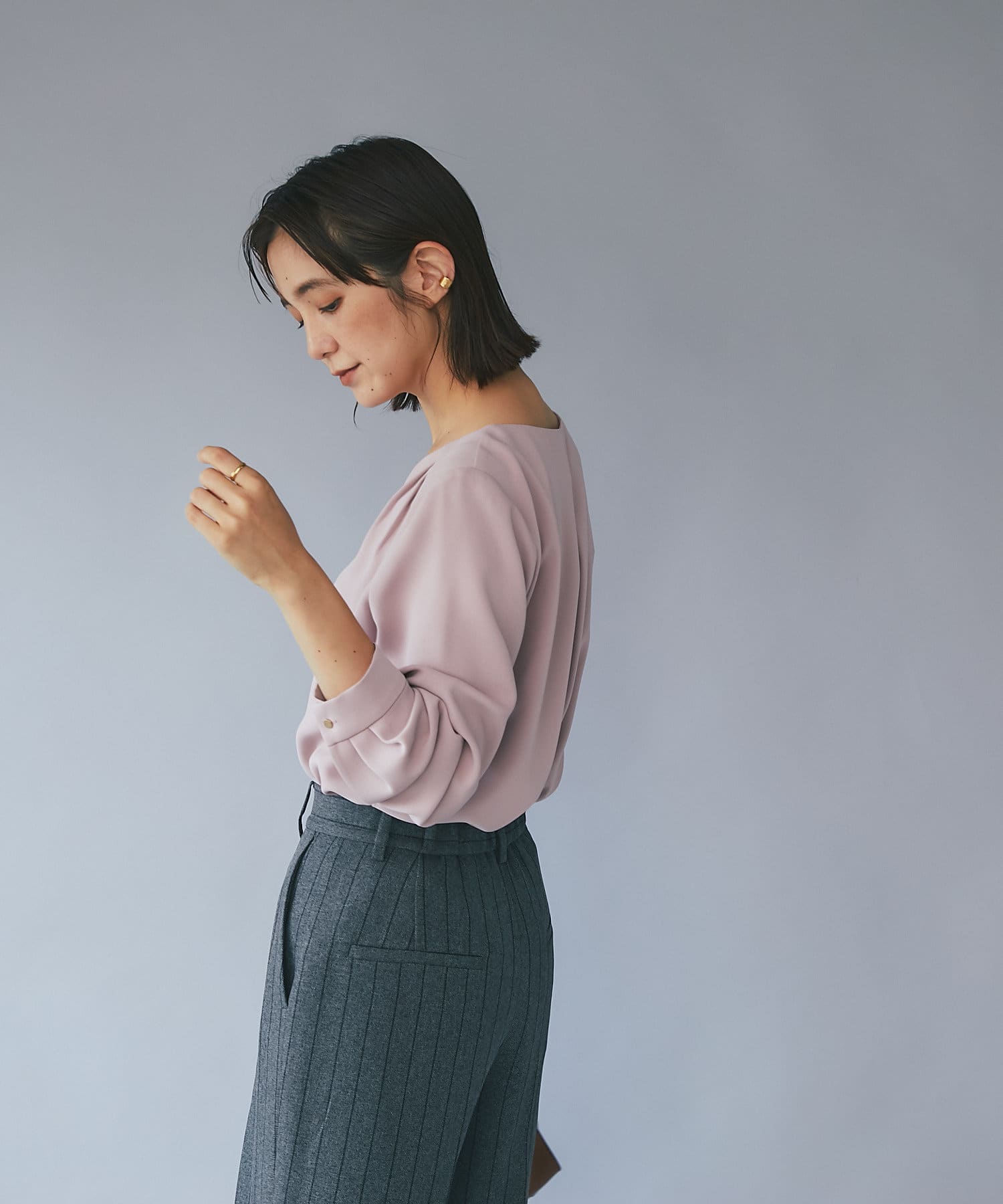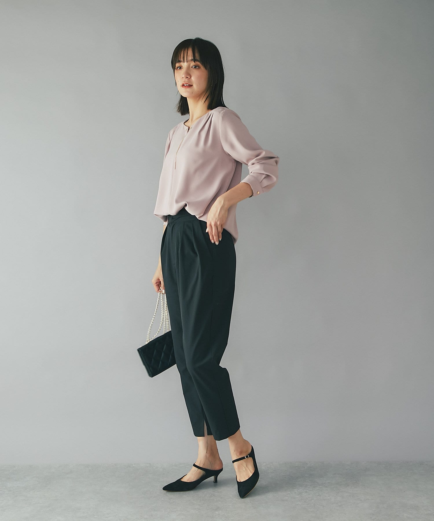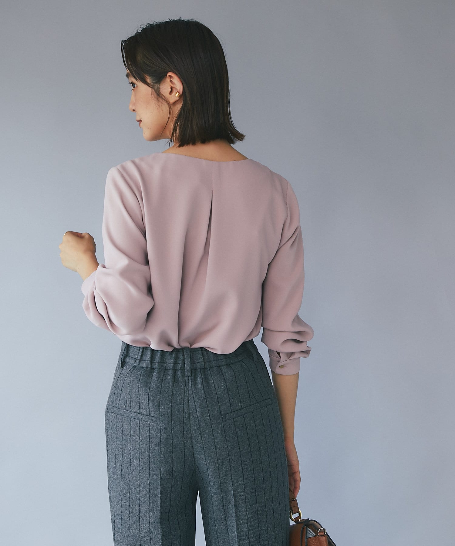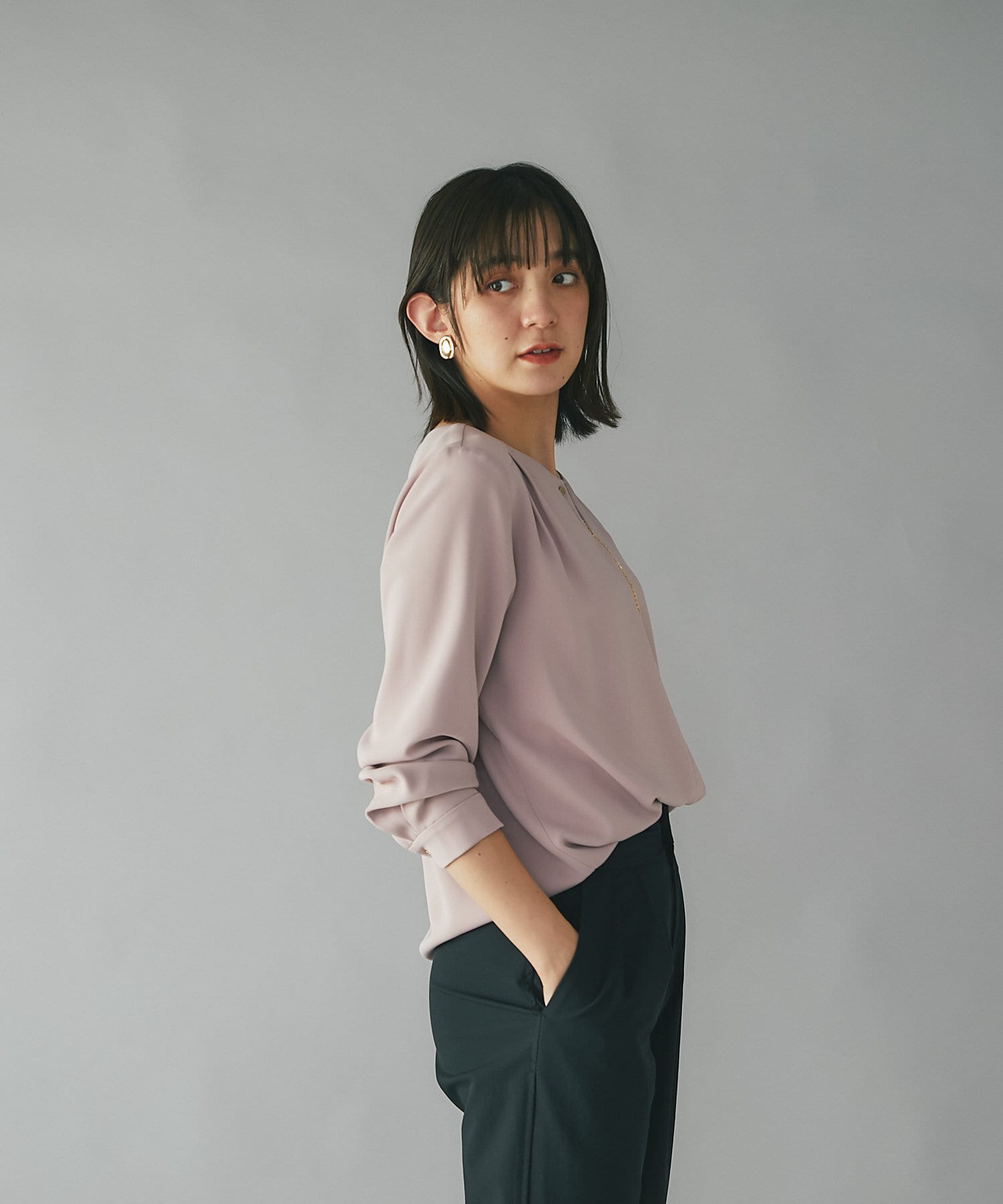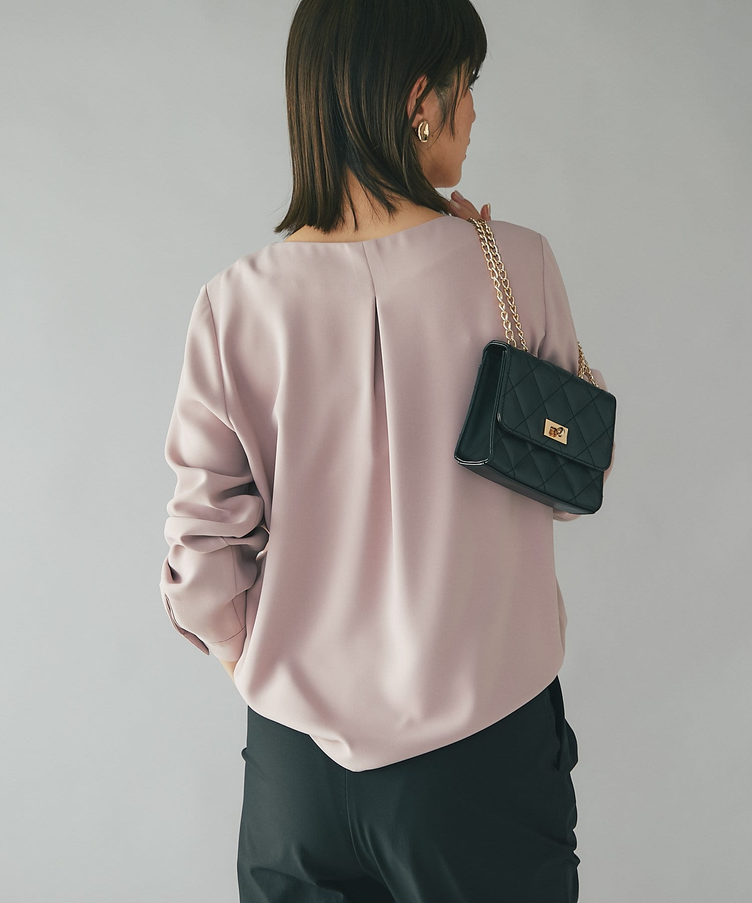 抜け感のあるスリットネックと揺れ感のあるY字パーツを胸元にあしらった綺麗めブラウス。
