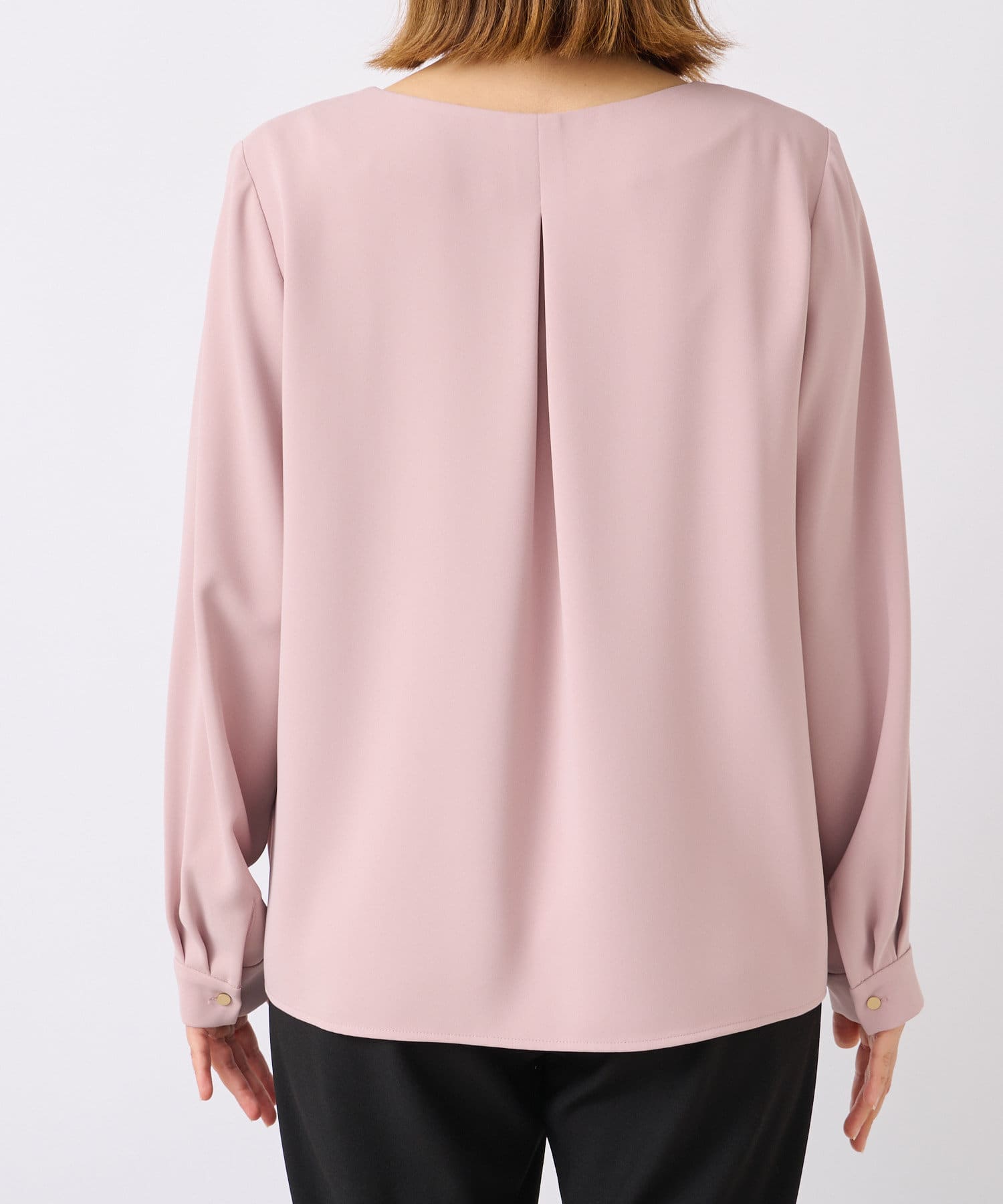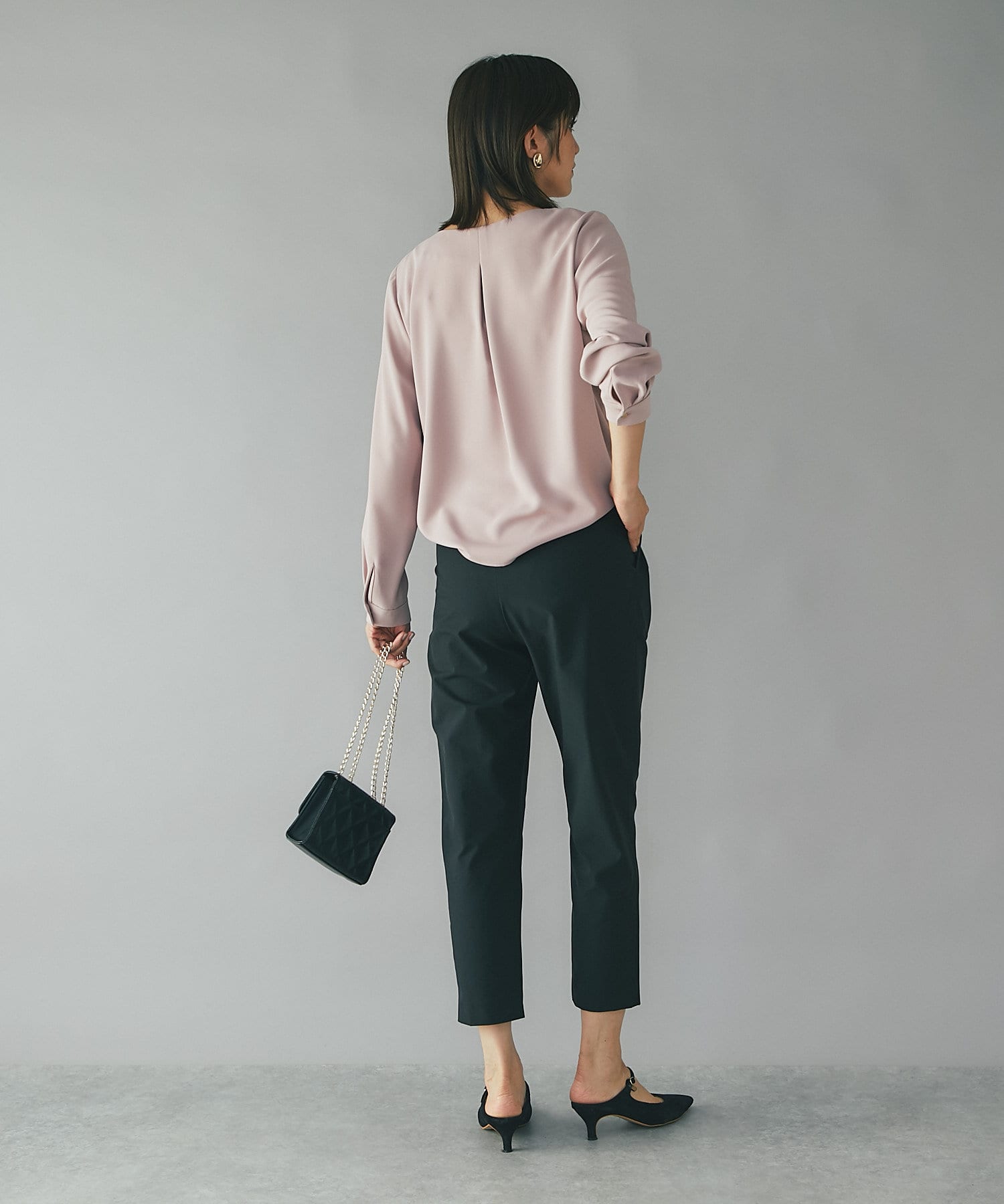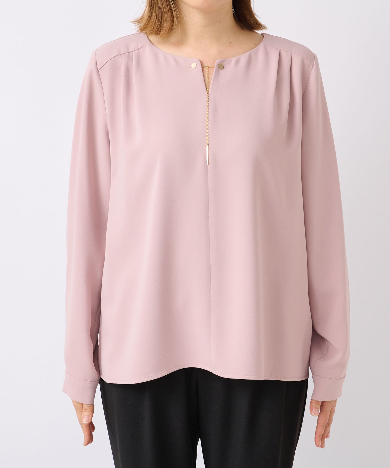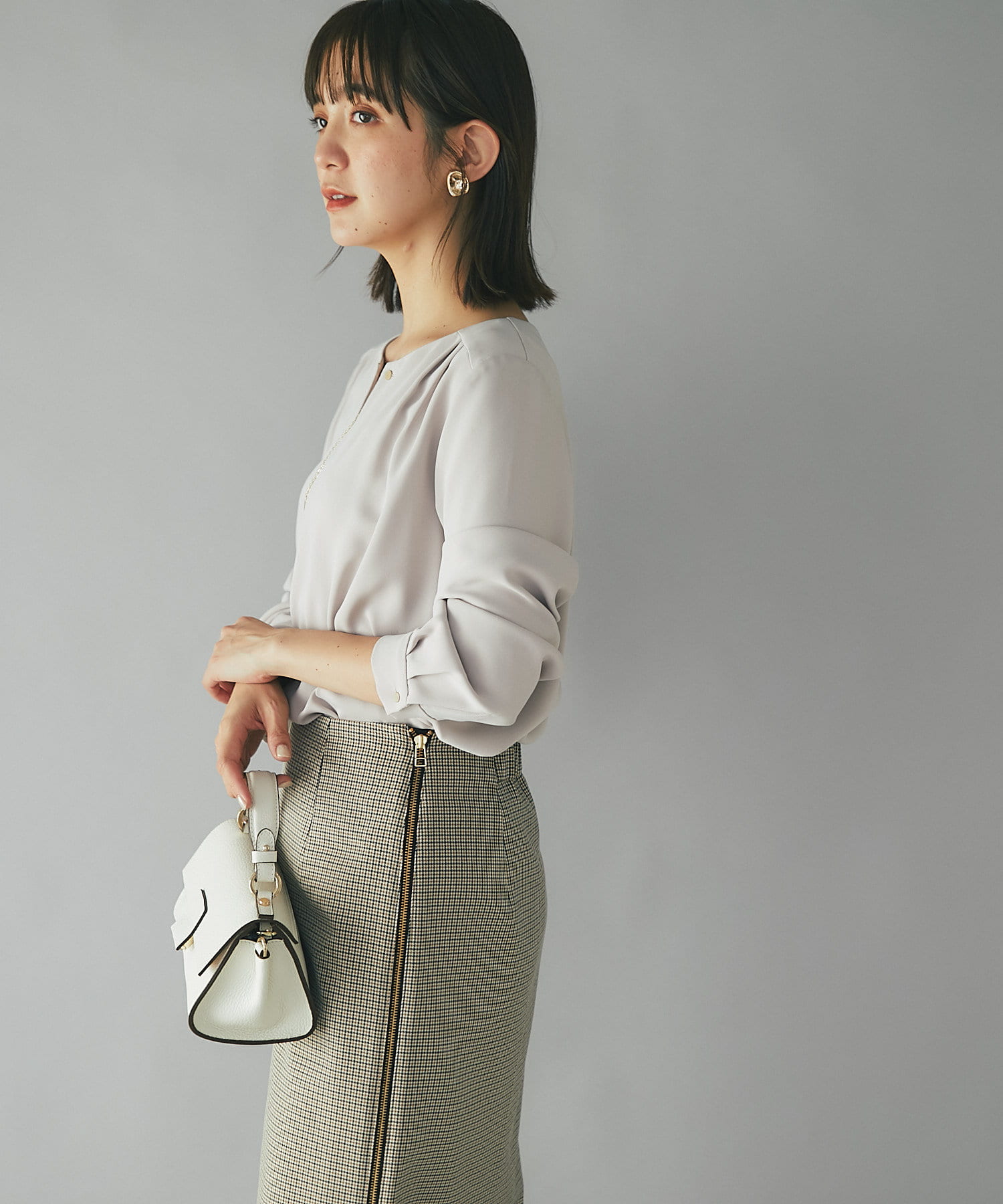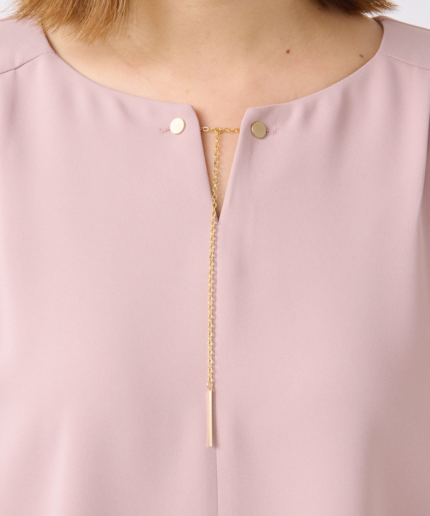 抜け感のあるスリットネックと揺れ感のあるY字パーツを胸元にあしらった綺麗めブラウス。