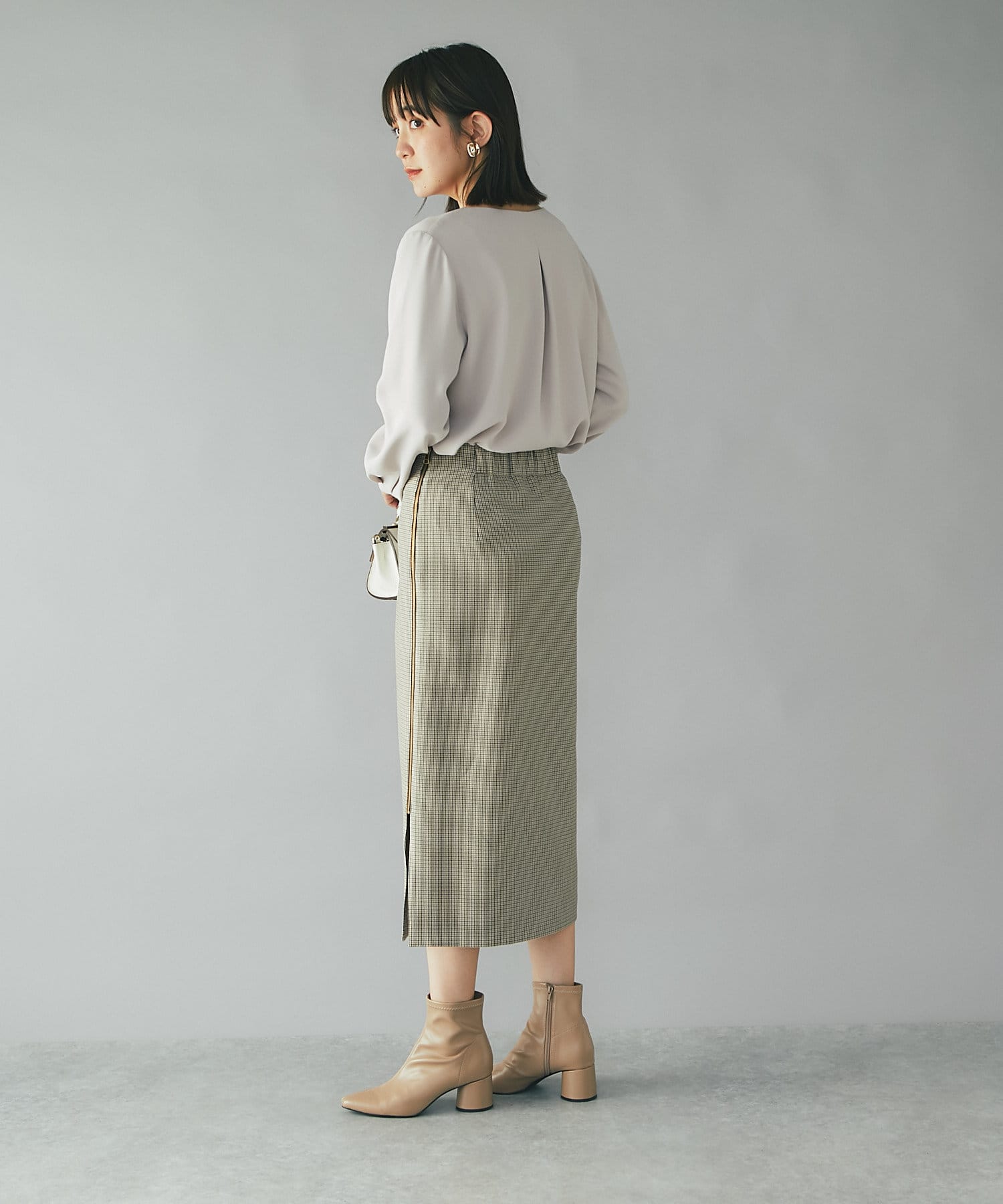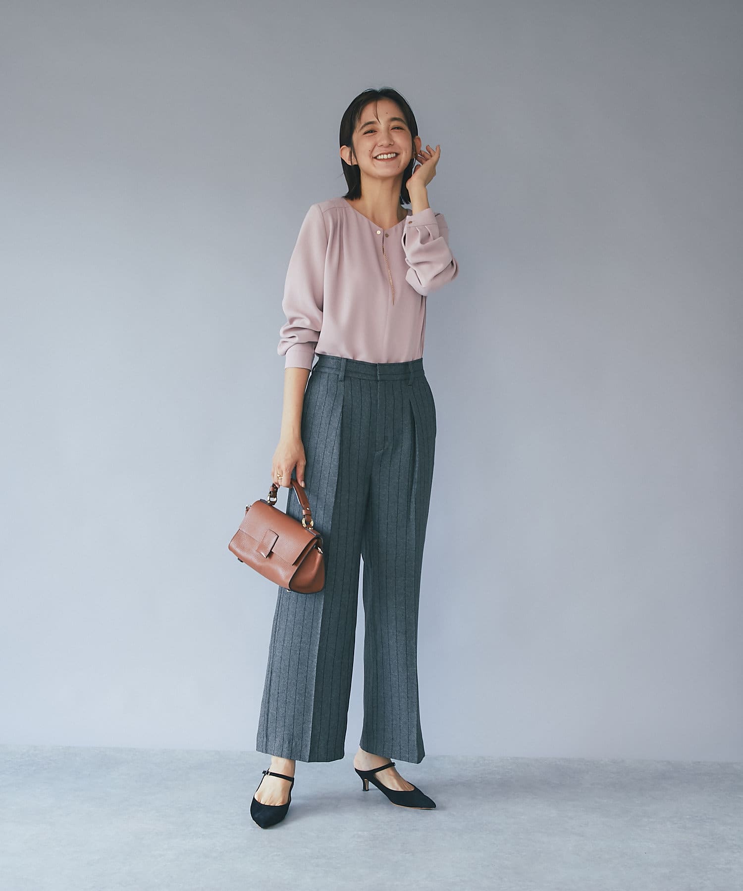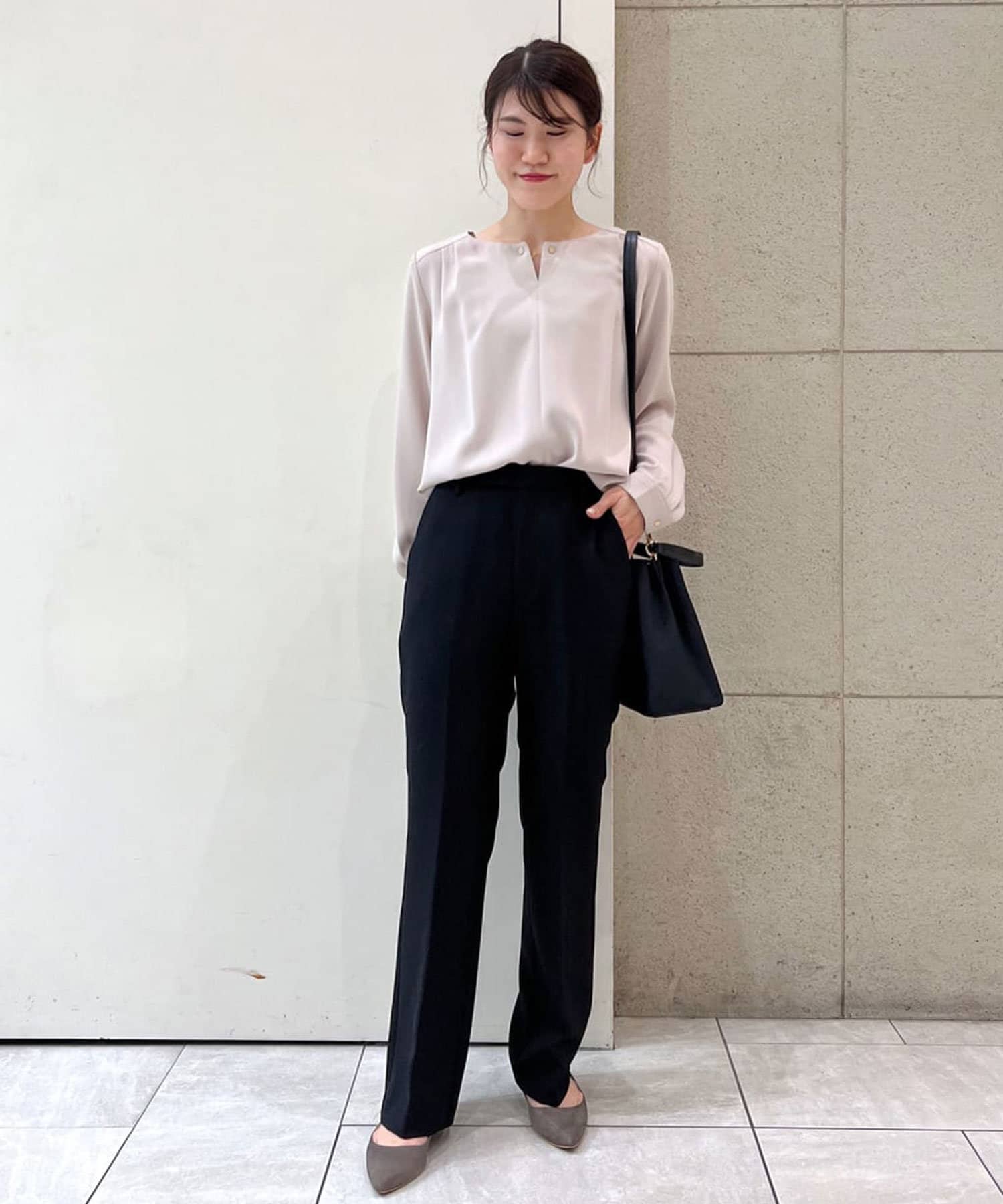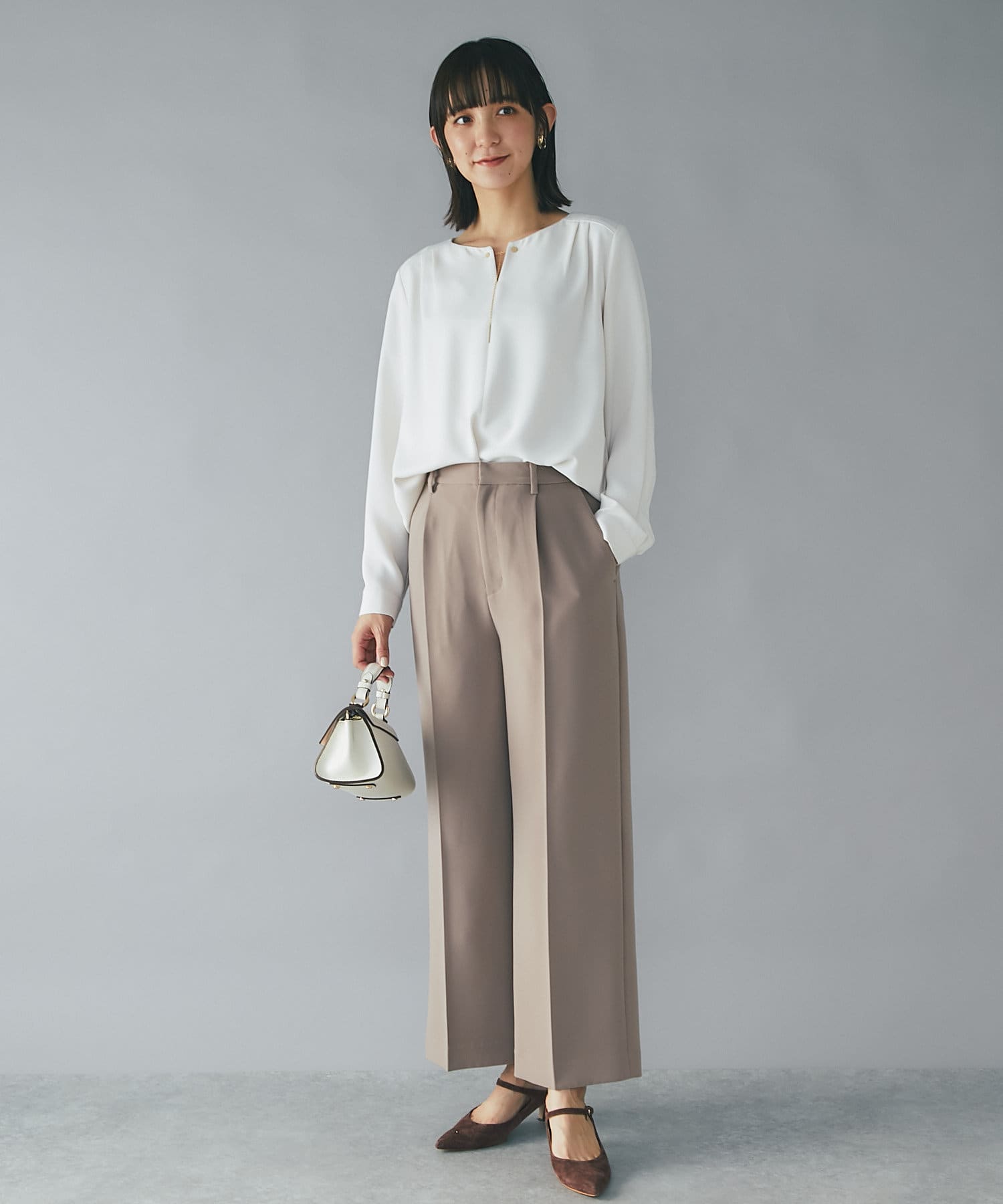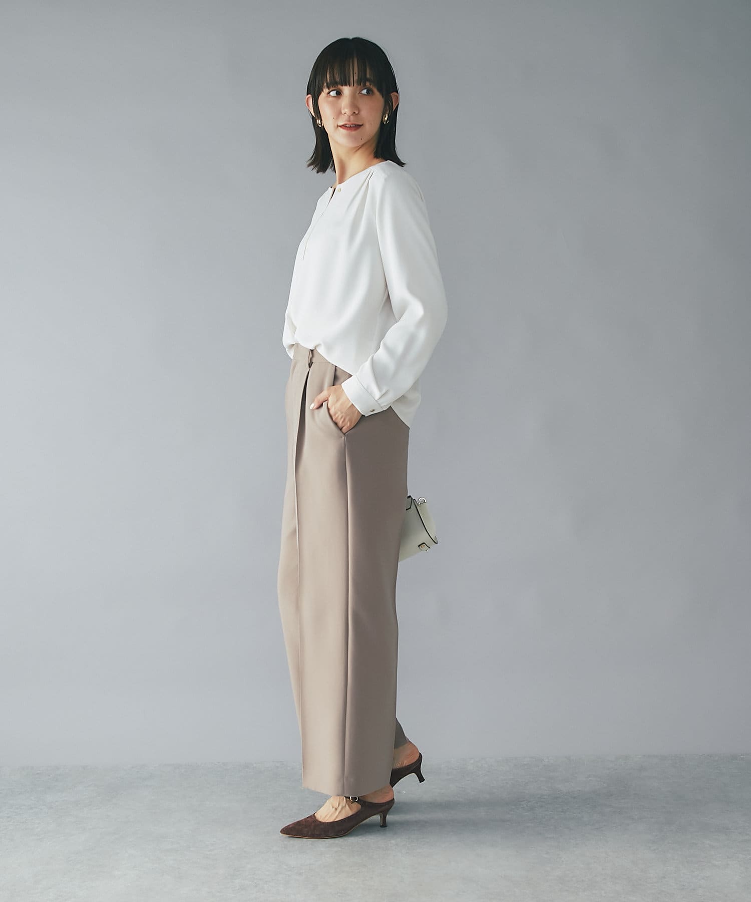 抜け感のあるスリットネックと揺れ感のあるY字パーツを胸元にあしらった綺麗めブラウス。