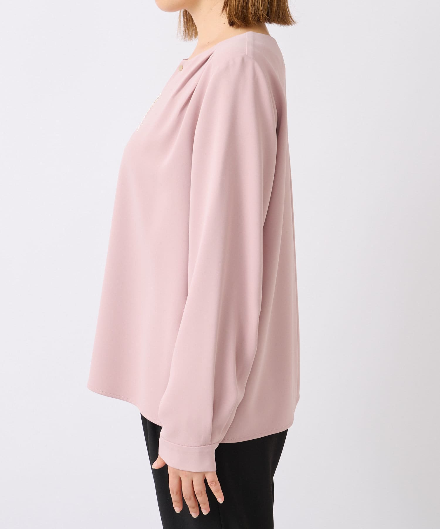 【ネックレスなしで華やかに着れる】キーネックYパーツブラウス