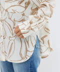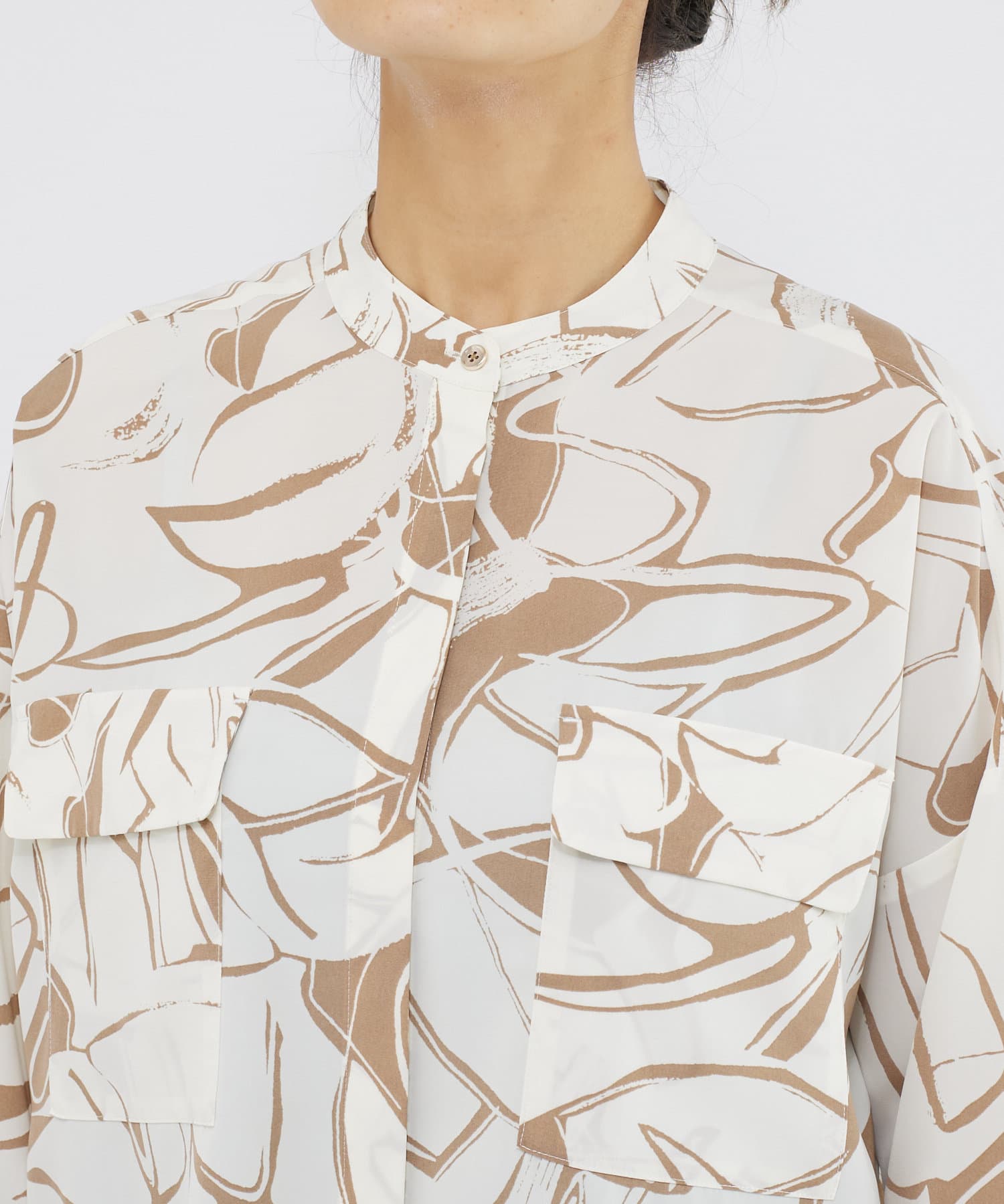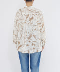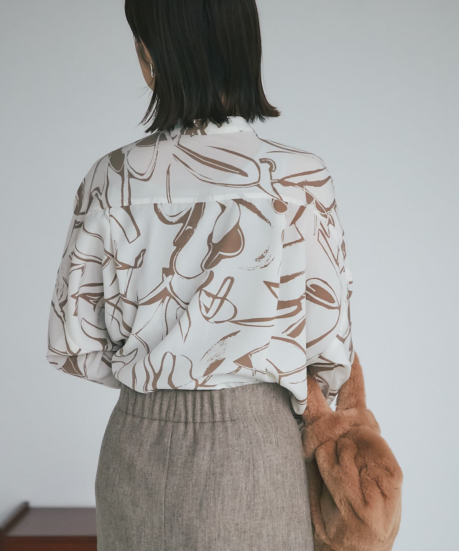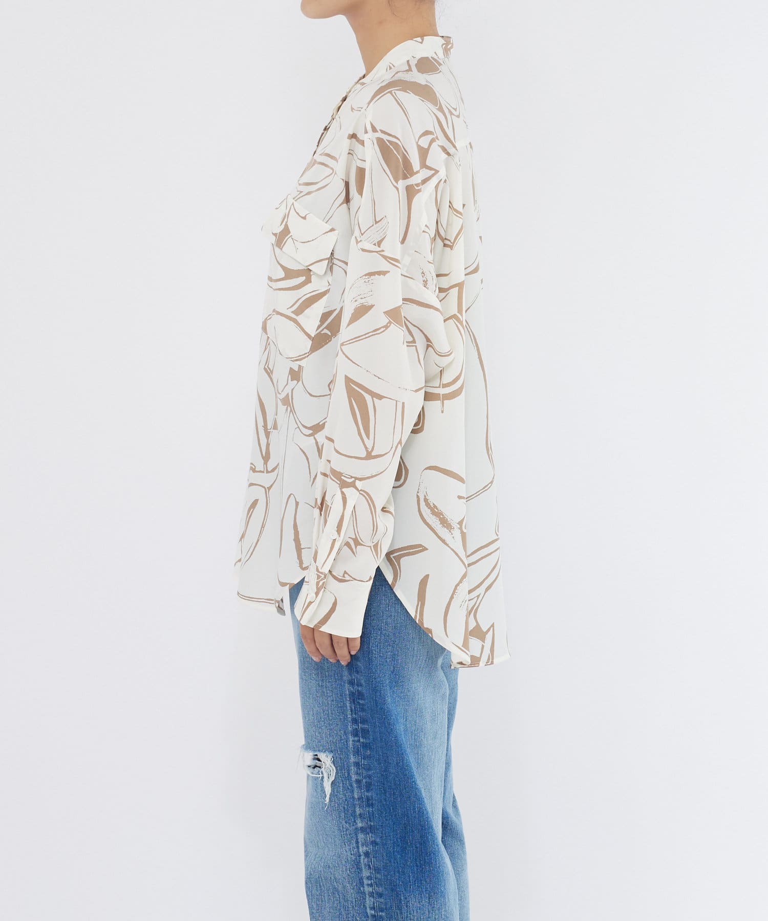 大胆に施されたデシンプリントがスタイリングを華やかにするデザインシャツ。