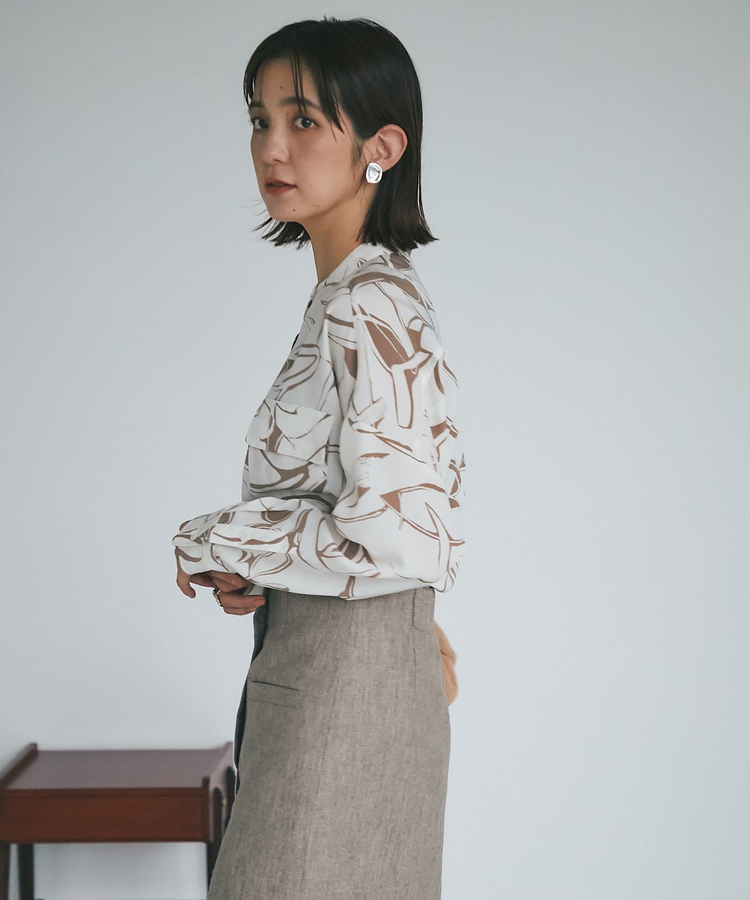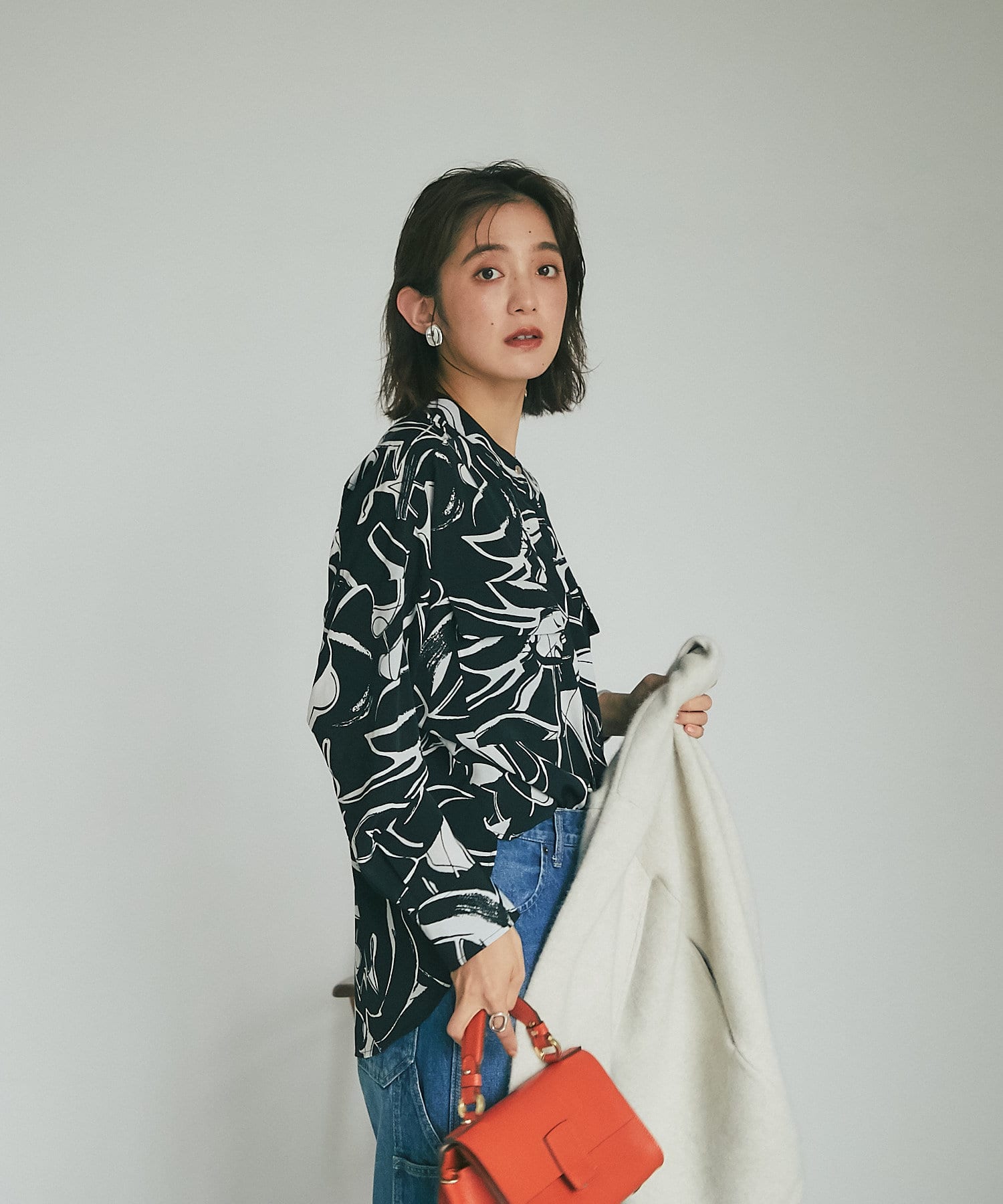 総柄ですが、モノトーンと優し気なベージュの2色展開でプリントアイテムを持っていない方にもチャレンジしやすくなっております。