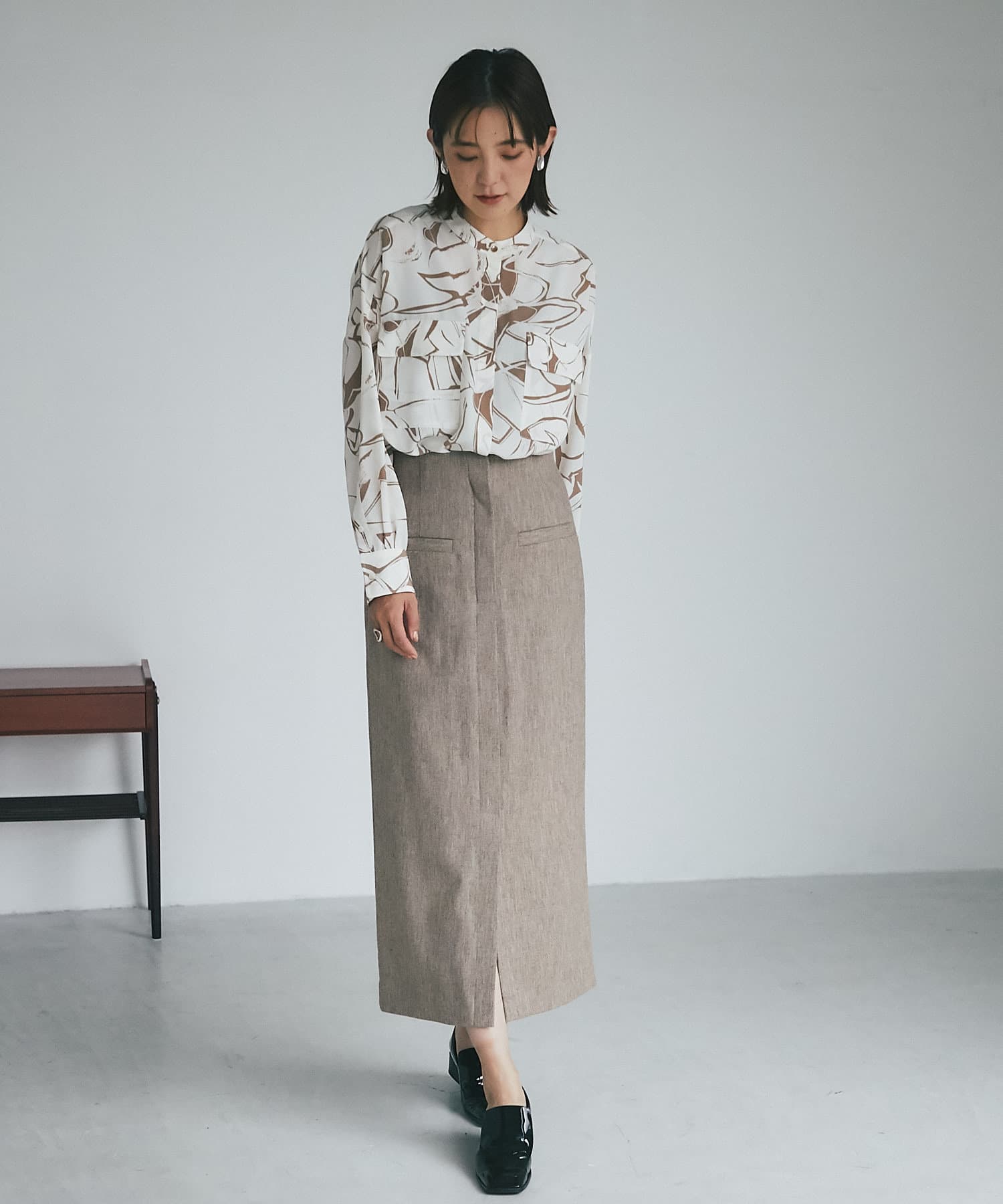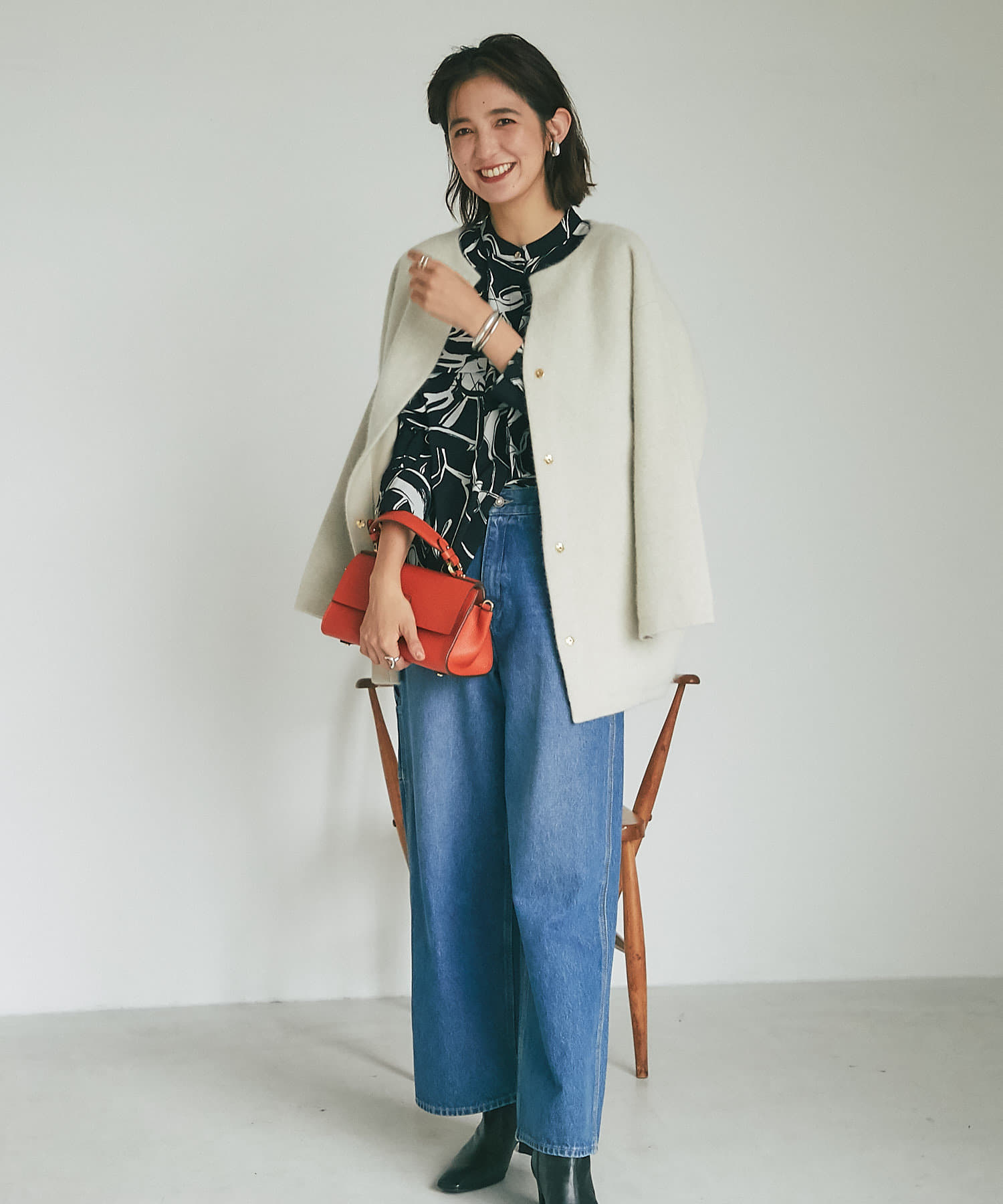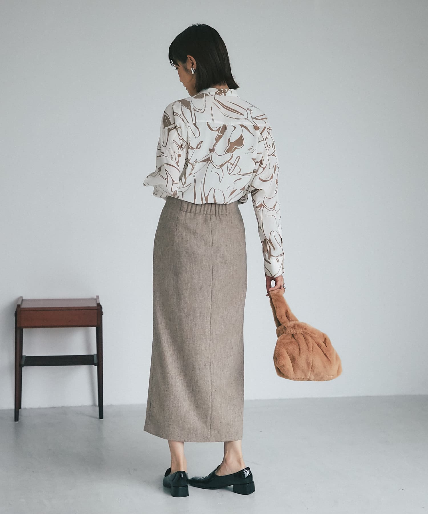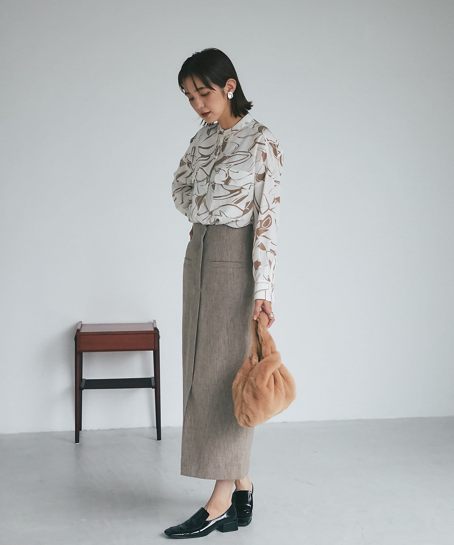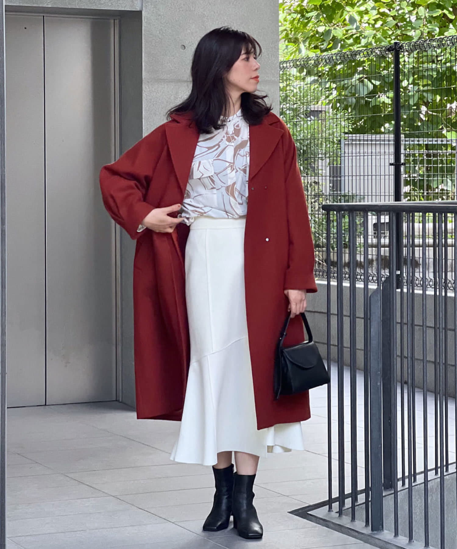 また女性らしいIラインシルエットのスカートで組み合わせて頂くと、程よく抜け感が出て、これから増えてくるお出かけやお呼ばれなどにも素敵に着用して頂けます。
