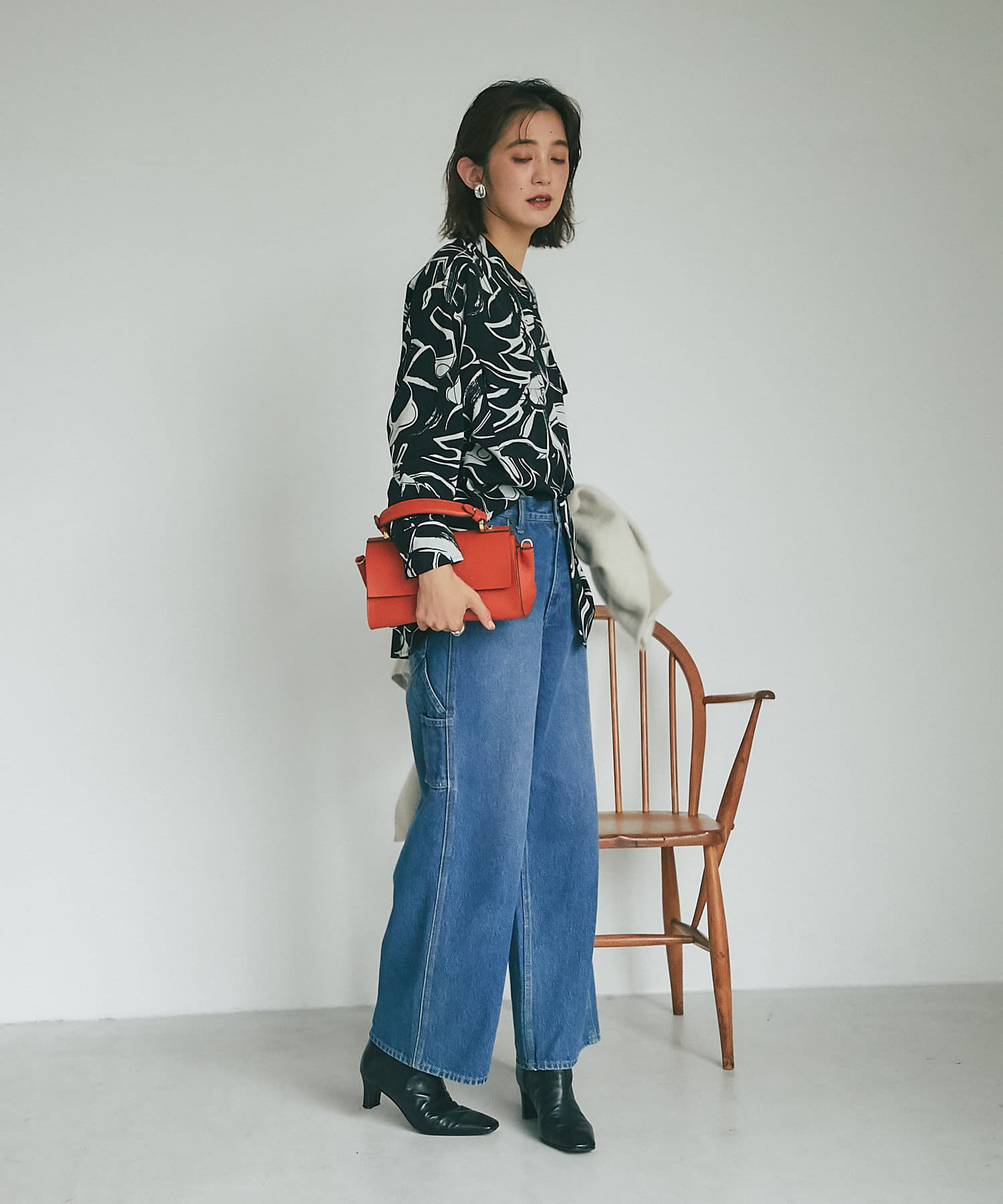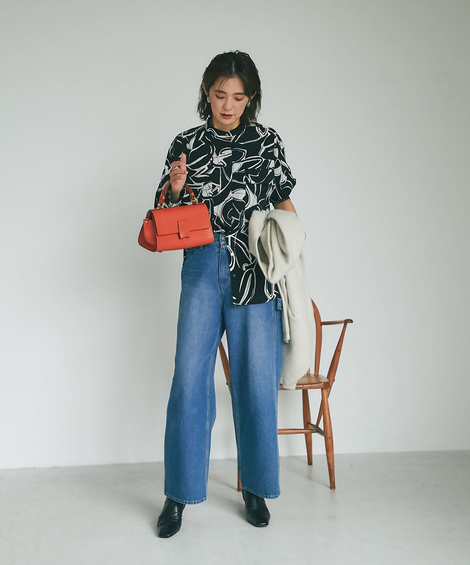ブラウスを主役にして、シンプルなデニムパンツなどを組み合わせればモードでスタイリッシュなコーディネートに仕上がります。