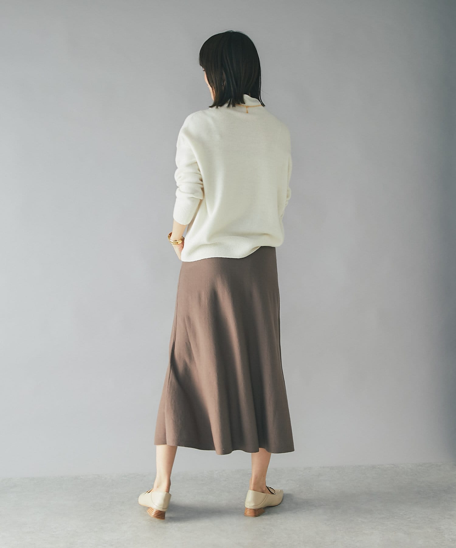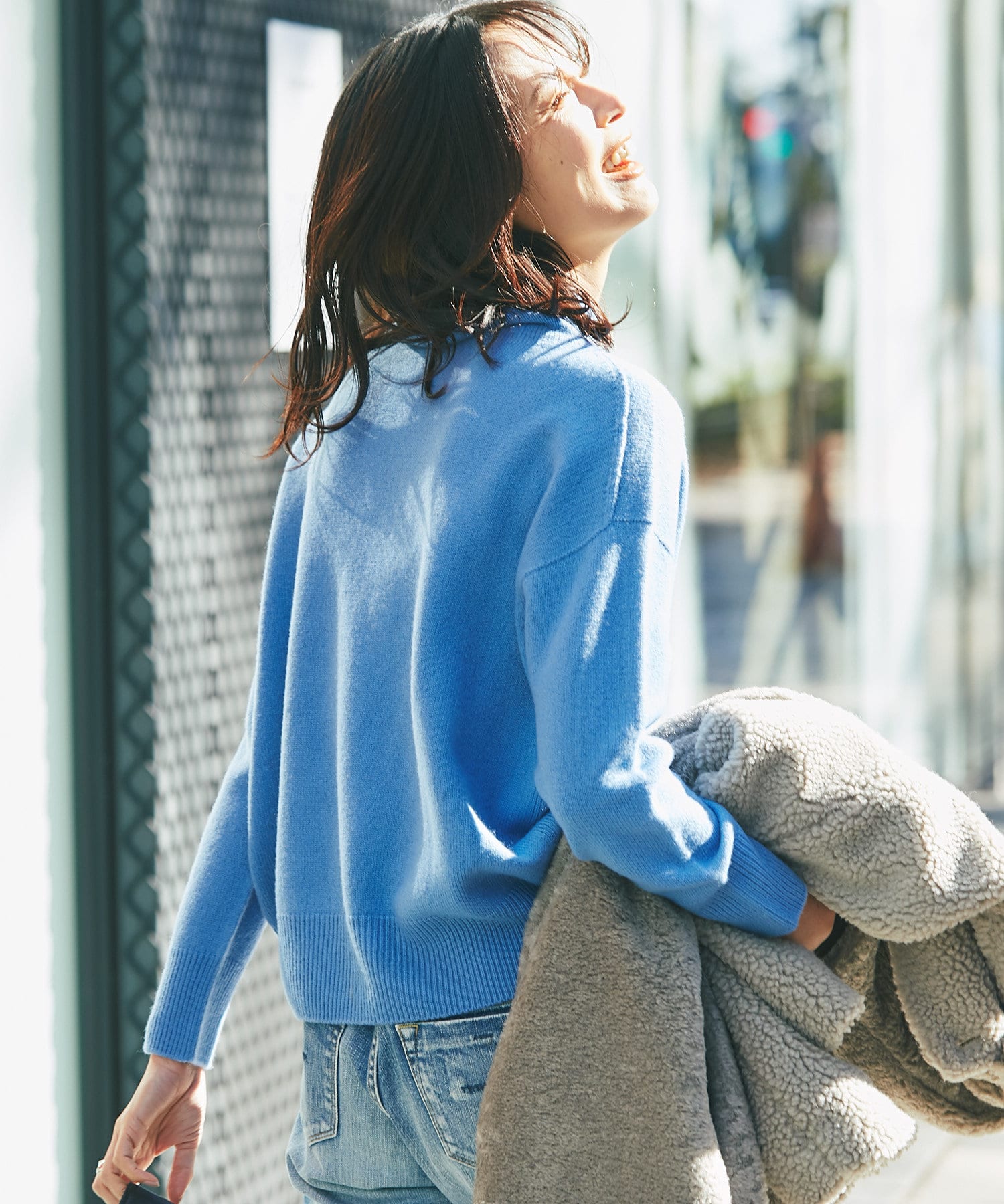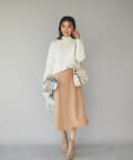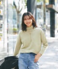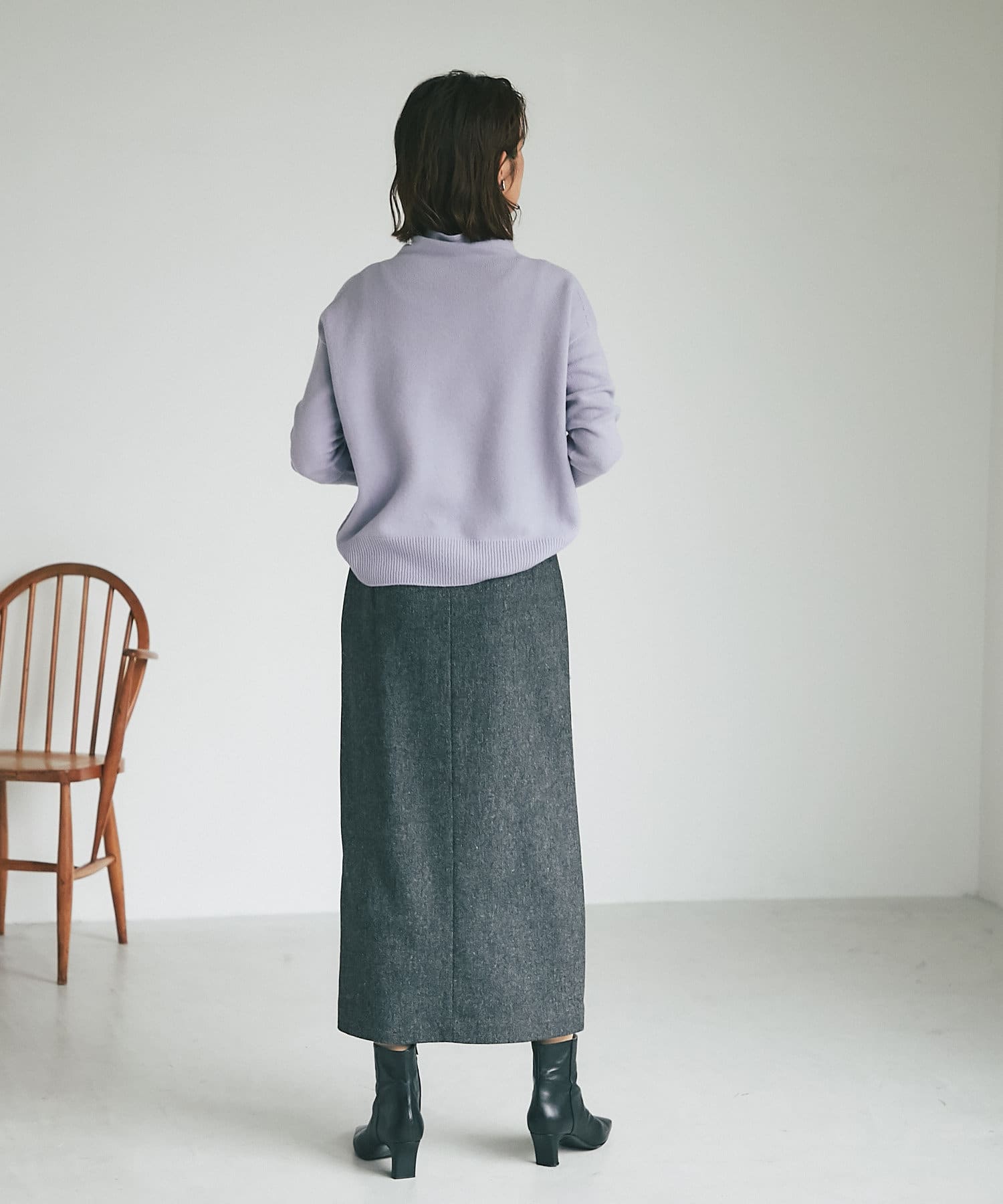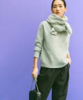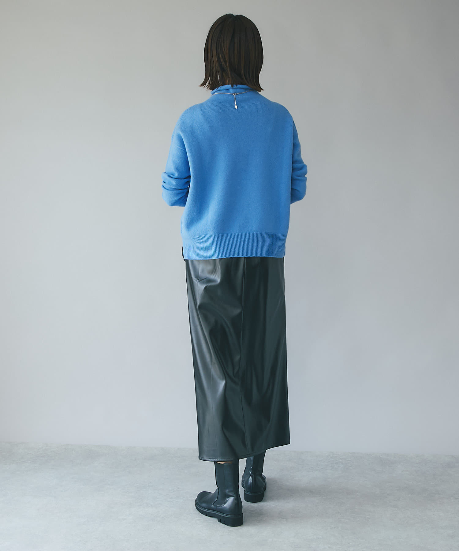 包まれるような柔らかなウールの素材感と定番のボトルネックは一枚着でもコートのインナーにしても顔周りを華やかに着用して頂けます。