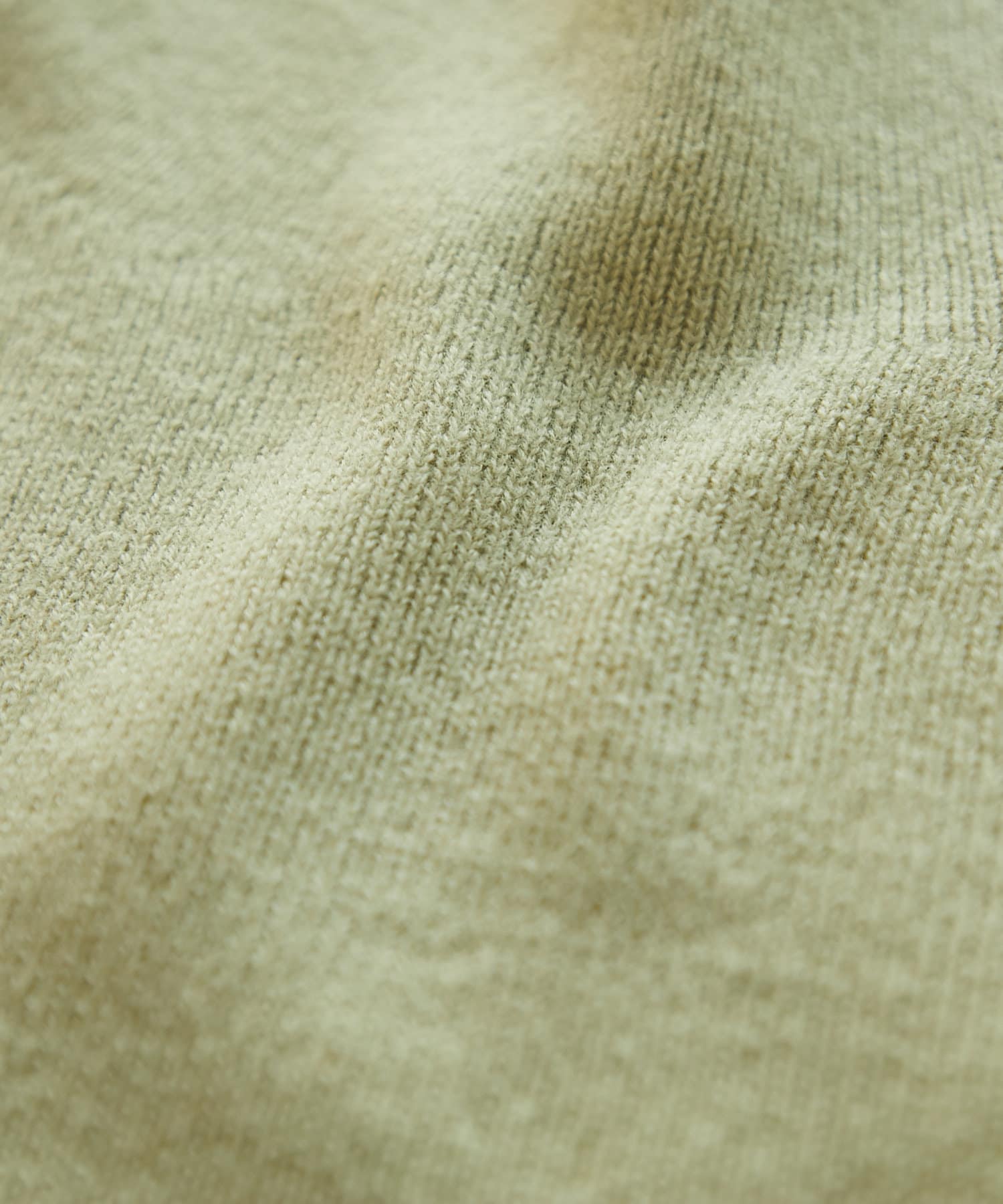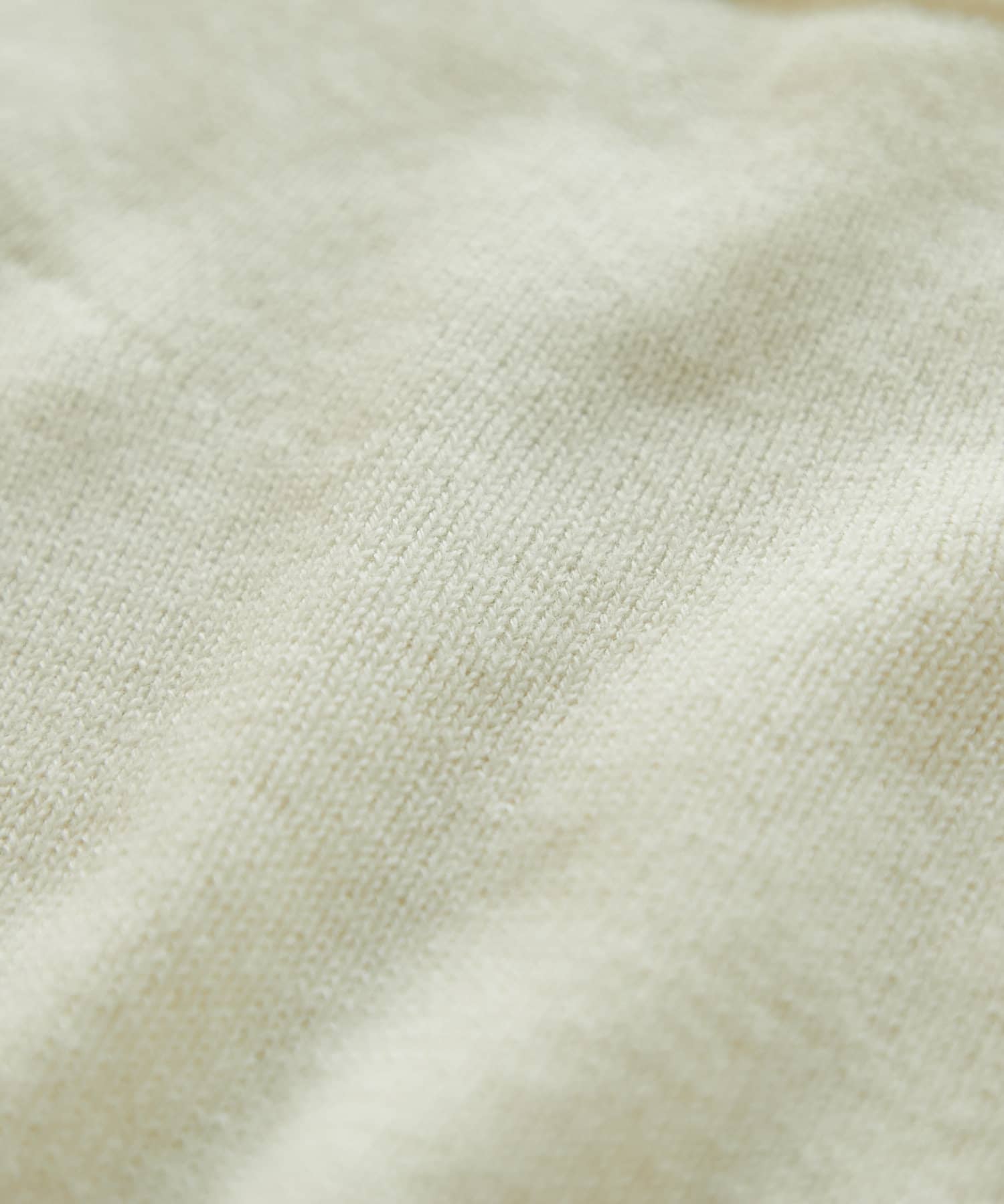 保温性の高いメリノウールを使用し、空気を多く含む立体構造となり、軽く暖かな風合いと柔らかな着心地が魅力です。