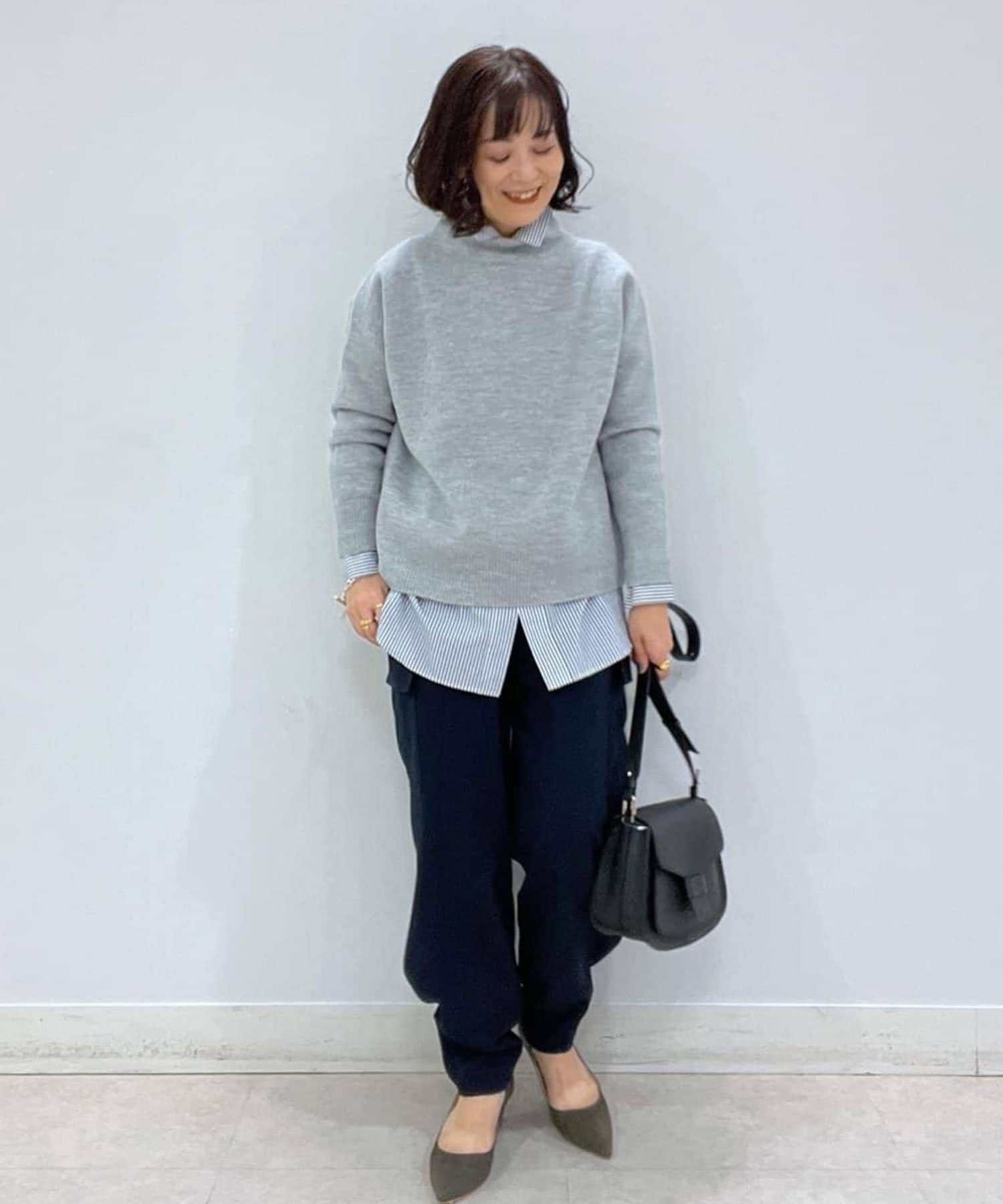 ⇒ニット素材になりますので全くできない素材ではありませんが、柔らかな風合いで比較的気になりづらい素材感です。