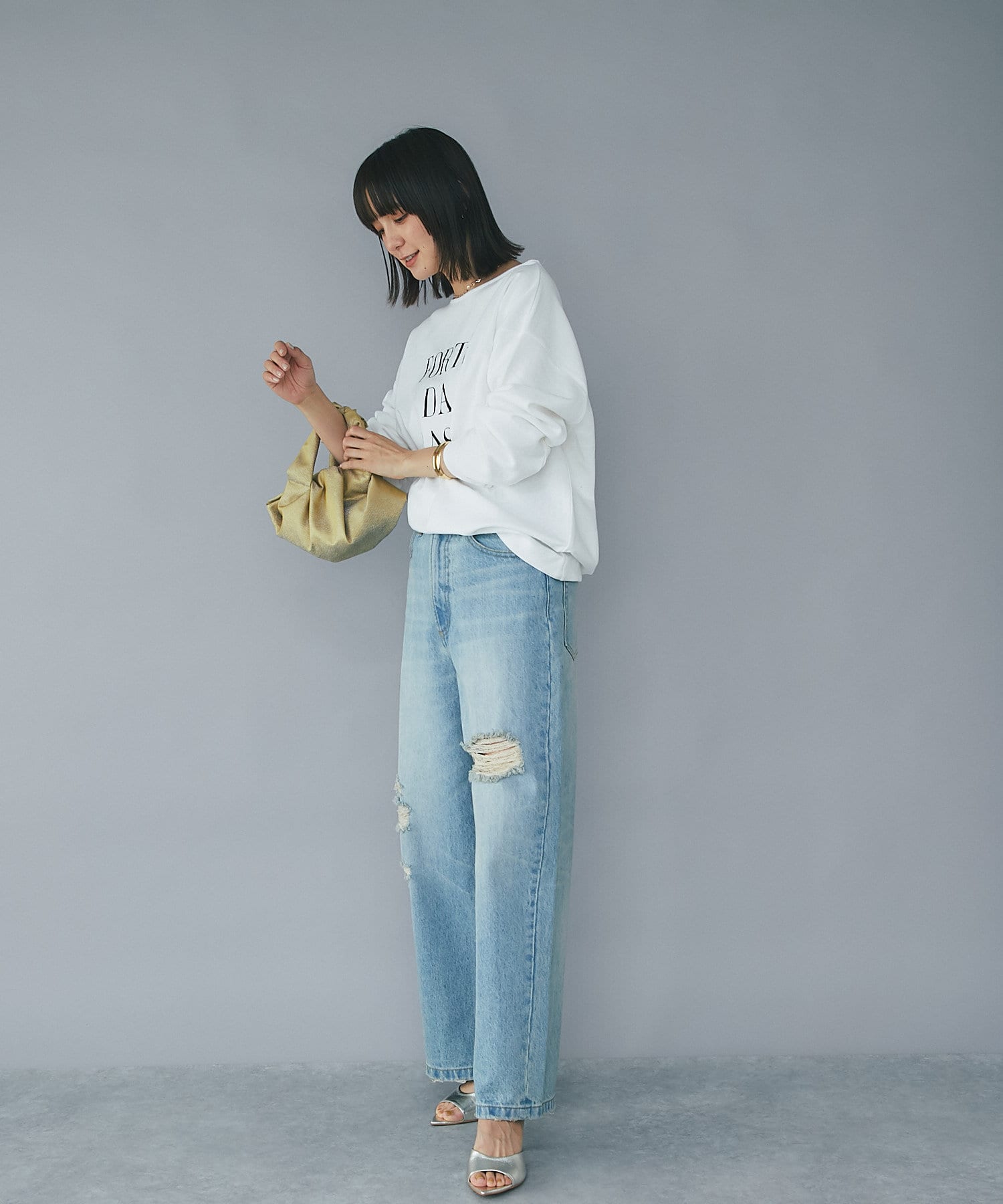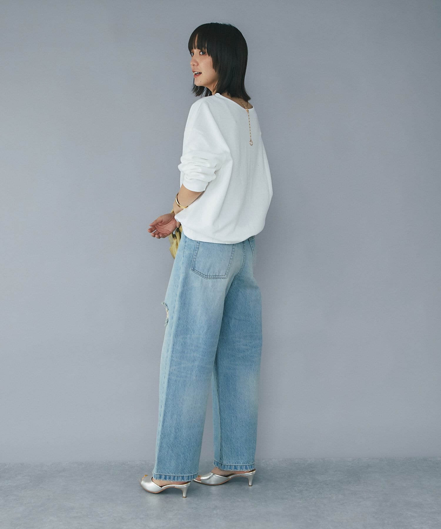 一枚でも透け感やインナーが気になりづらいアイテムとなっており、ゆったりとした程よいサイズ感が大人の抜け感を演出。