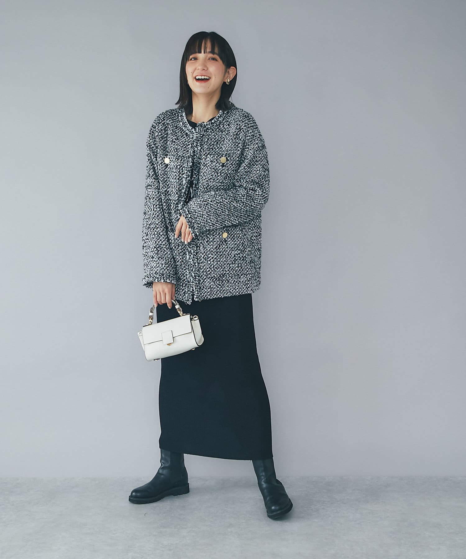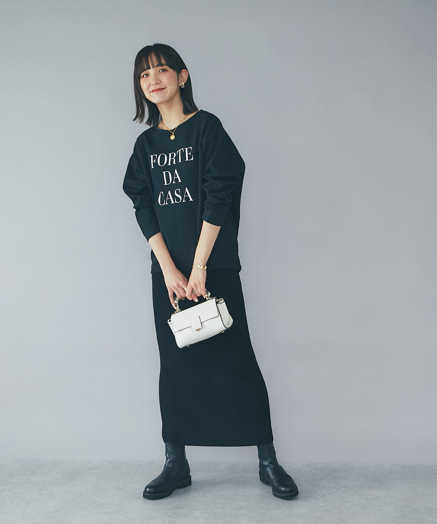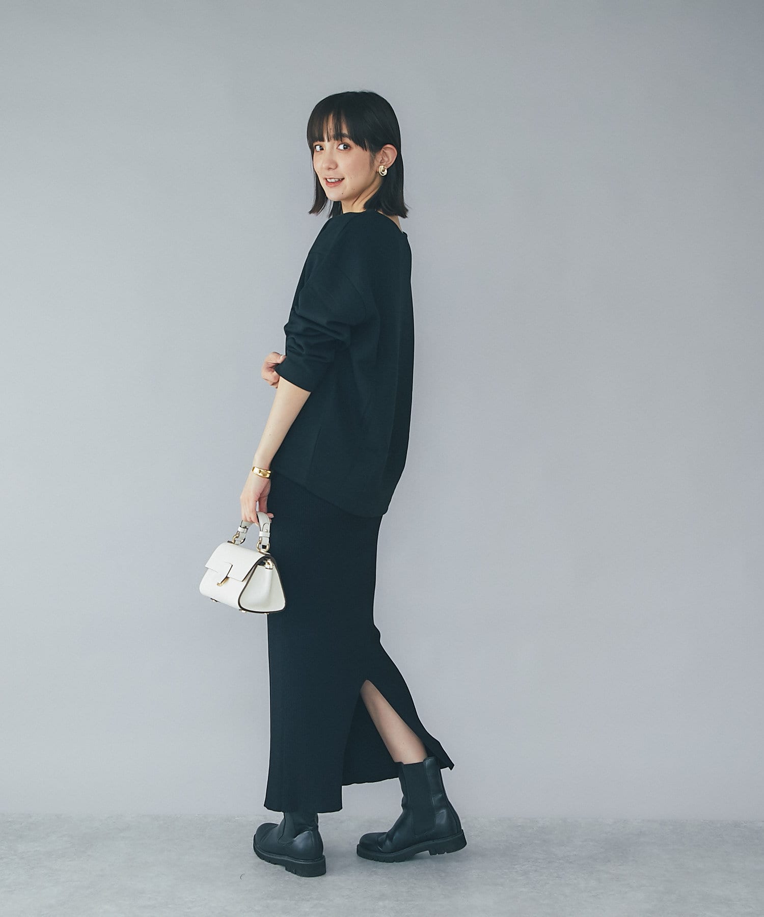 ボトムを選ばずに使えるプレーンなシルエットでスカートパンツどちらの相性も◎!