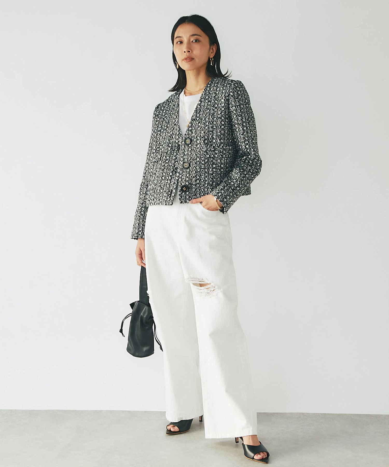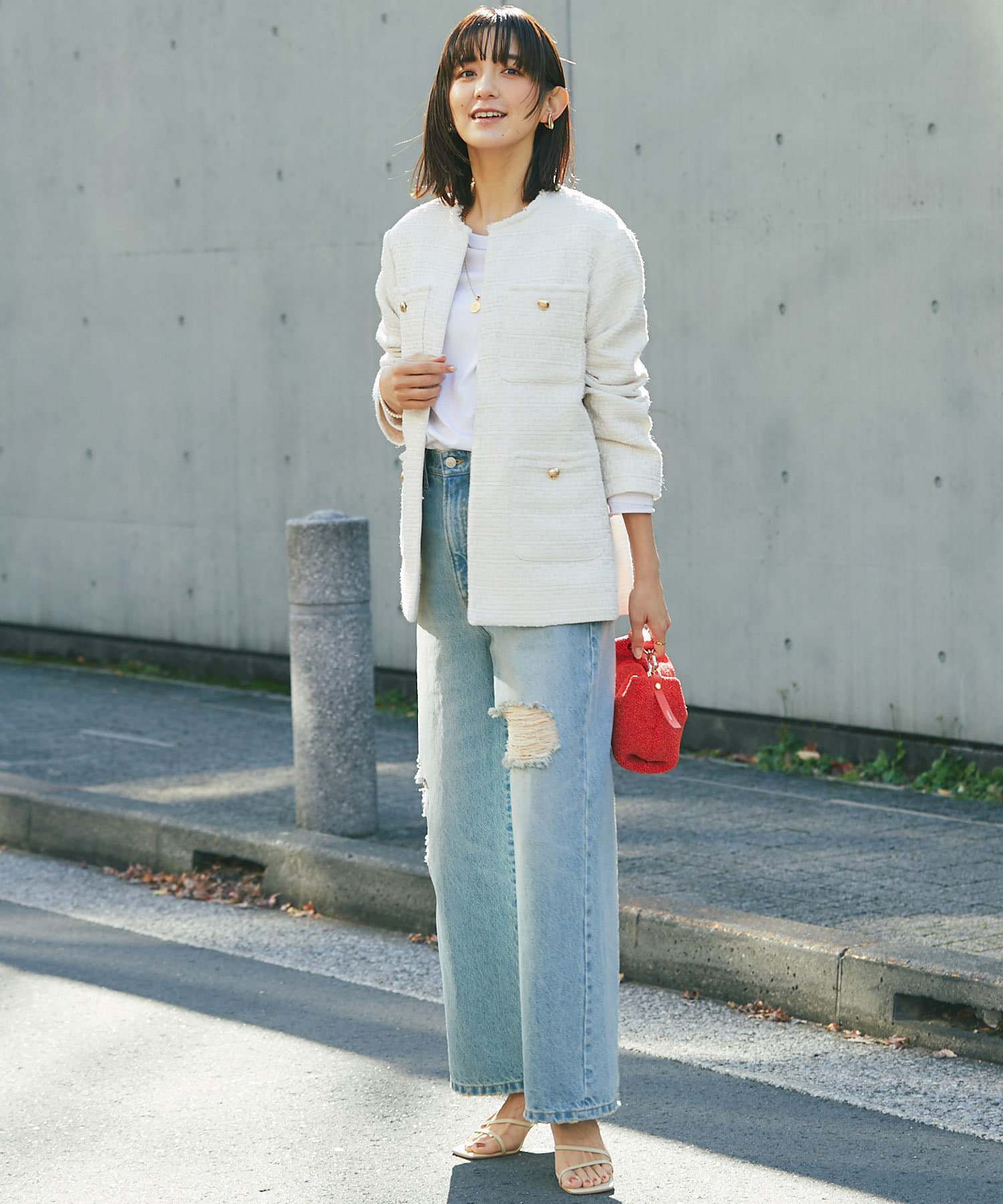 今季らしく、ニットなどからチラリと覗かせるカジュアルスタイルがオススメ!