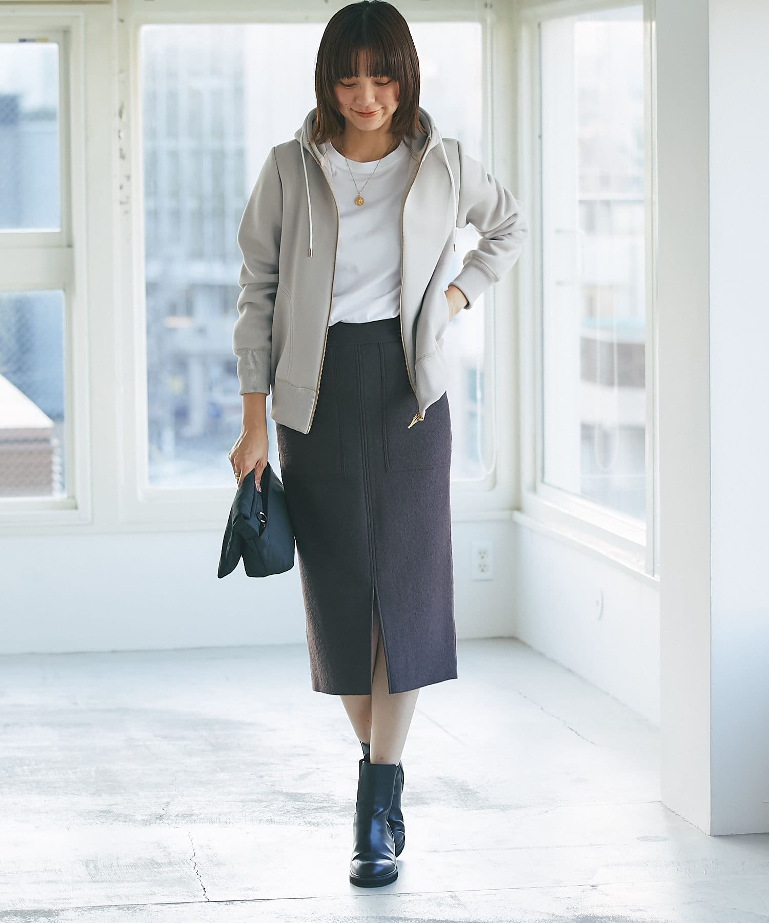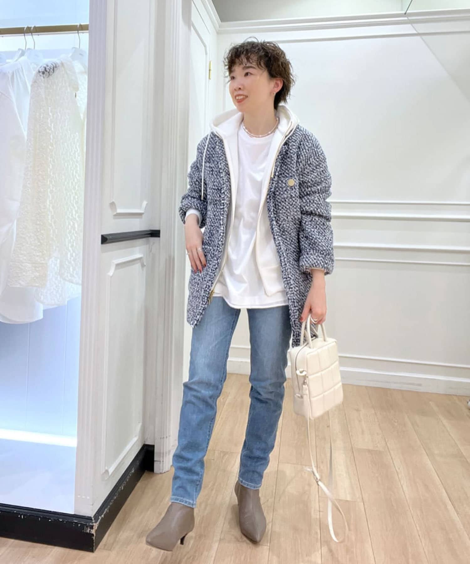 ⇒ニットやスウェットなどの重ね着がオススメ。