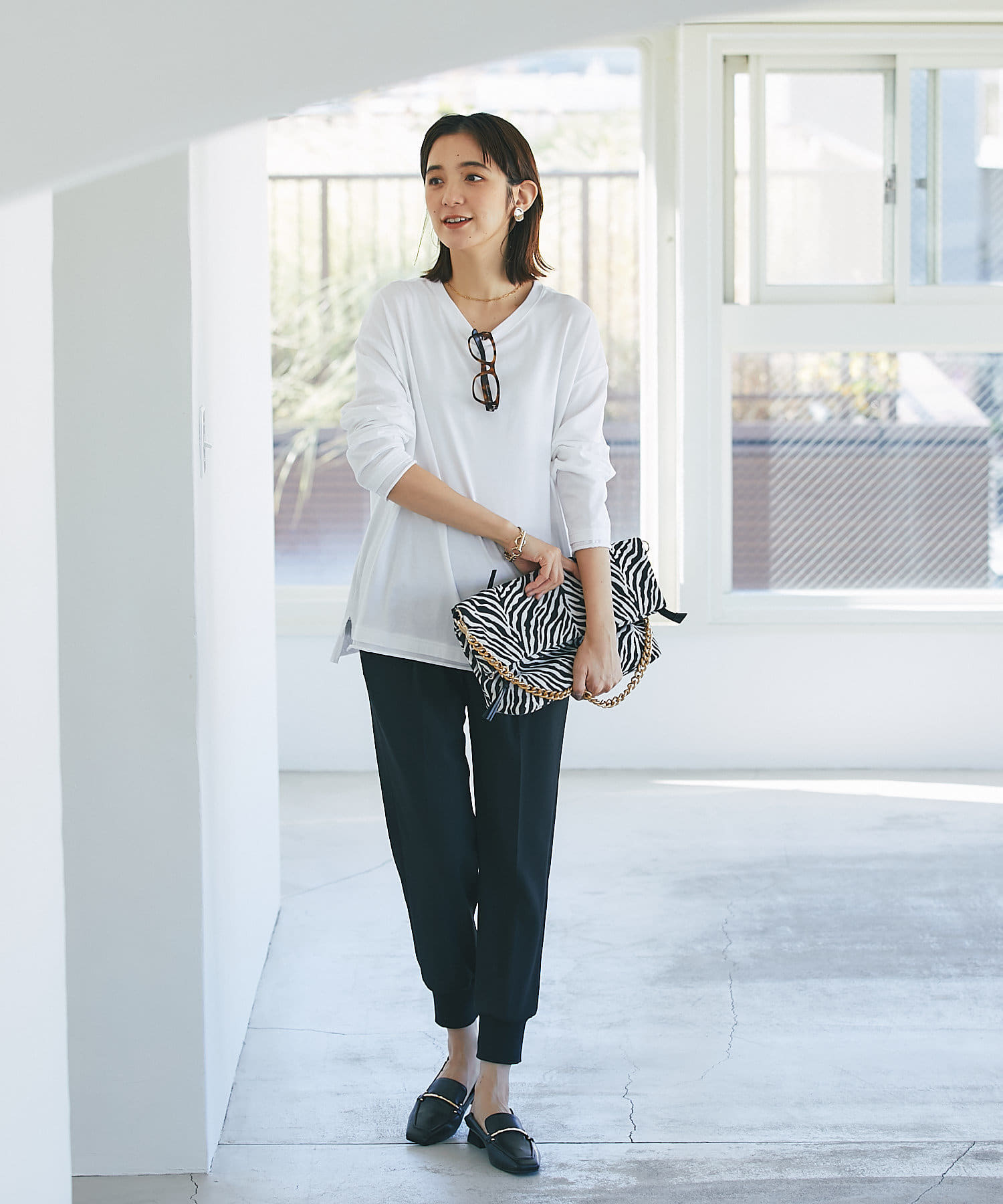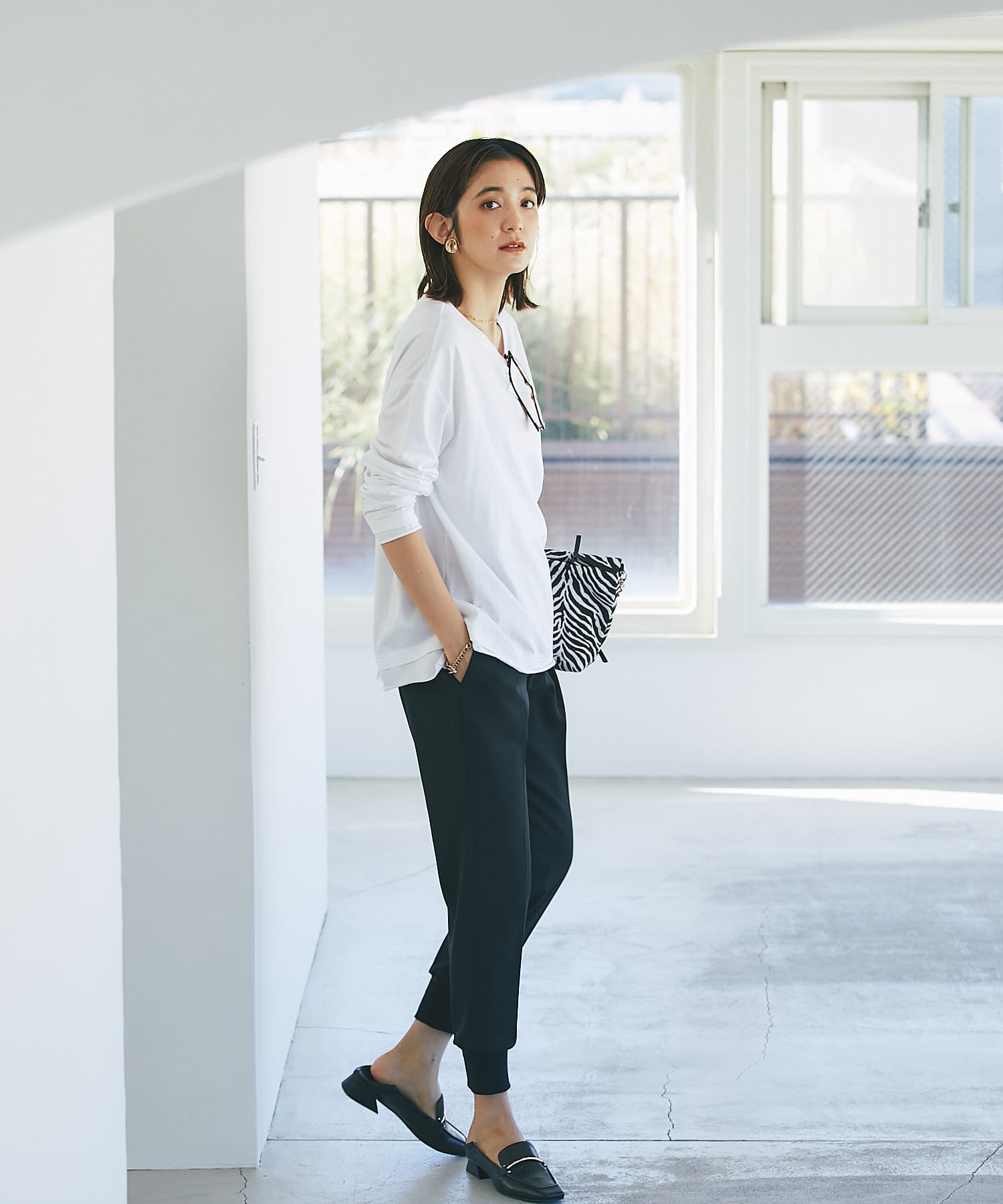 綿素材のやわらかな質感が、お肌を優しくカバーし、ニットやスウェットからちらりと覗いてもおしゃれに決まる使い勝手の良さが重宝するアイテムです。