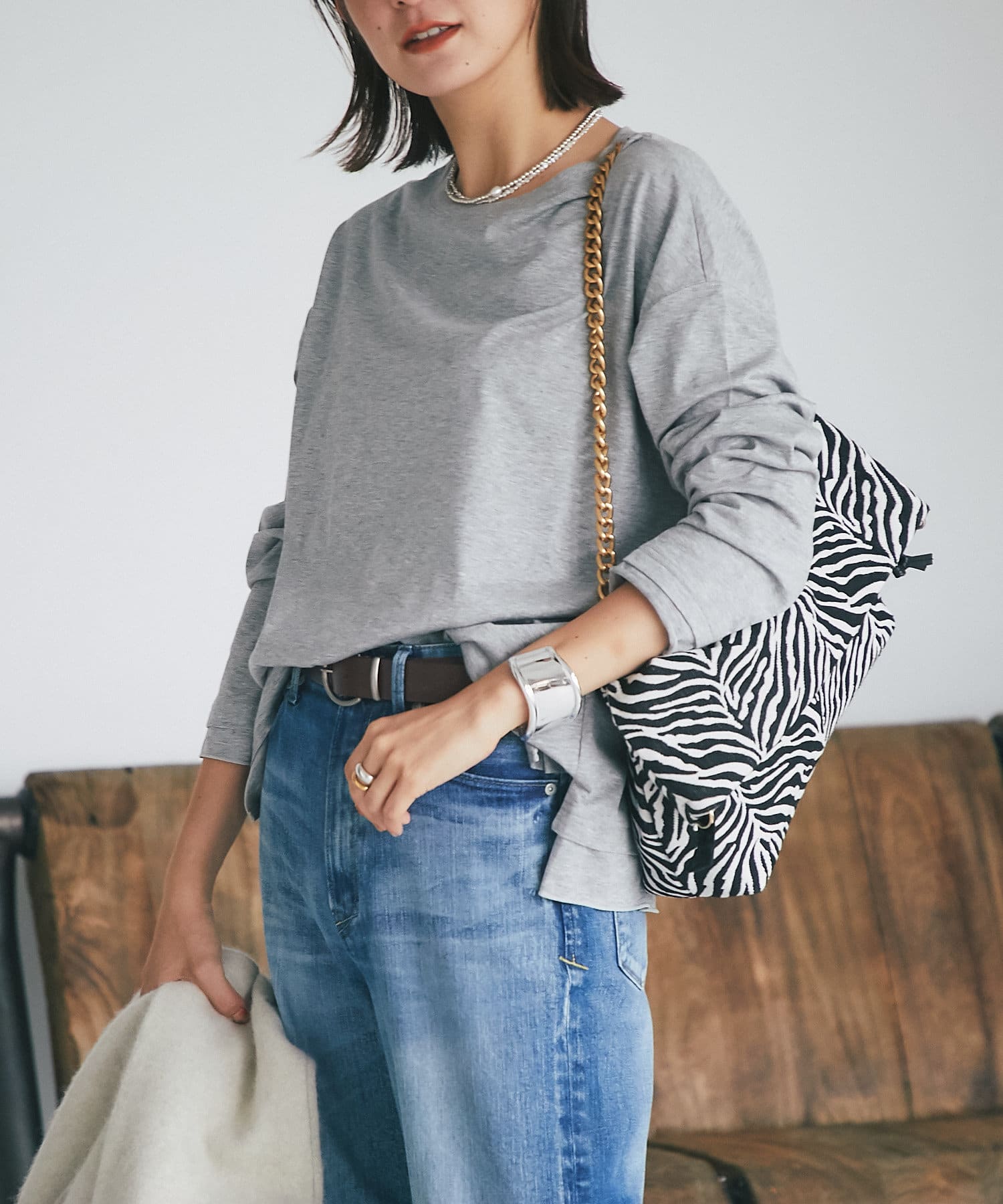 また、ベーシックなロンTとしてお使い頂けますので、ジャケットやダウンのインナーなどにも活躍します。