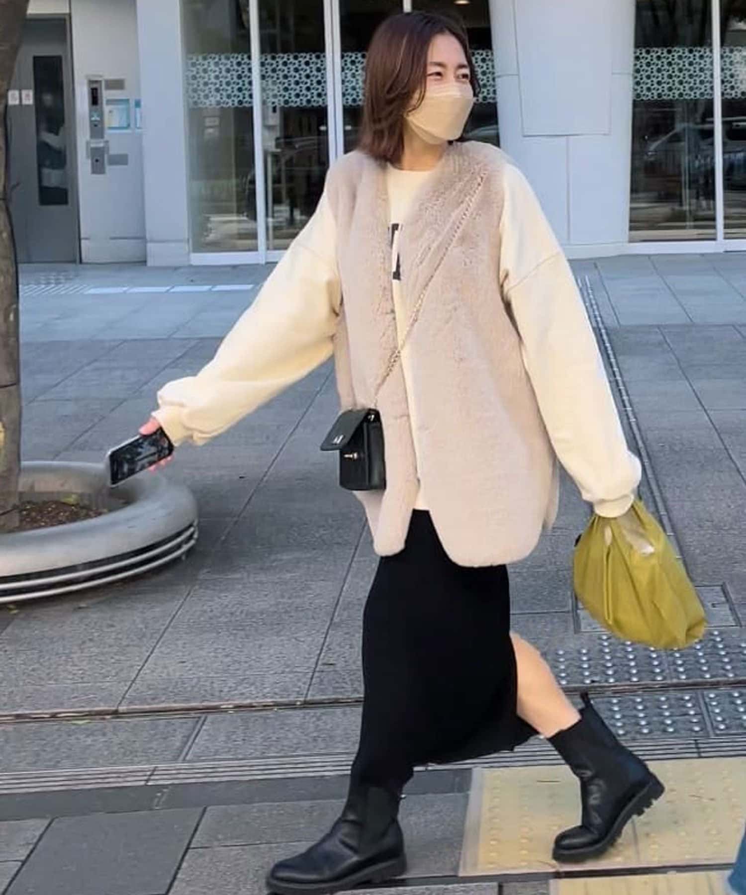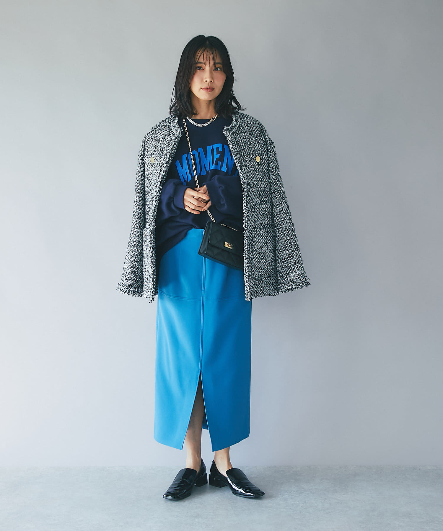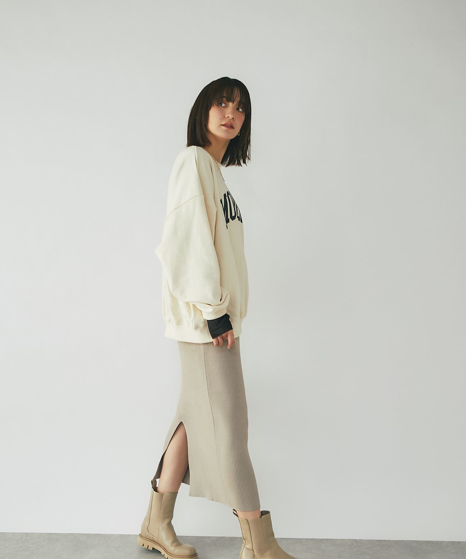 レディライクな着こなしがお好きな方は、人気のニットタイトスカートにブーツを合わせ、シルエットに女性らしさをプラスして頂くと素敵に着こなせます。