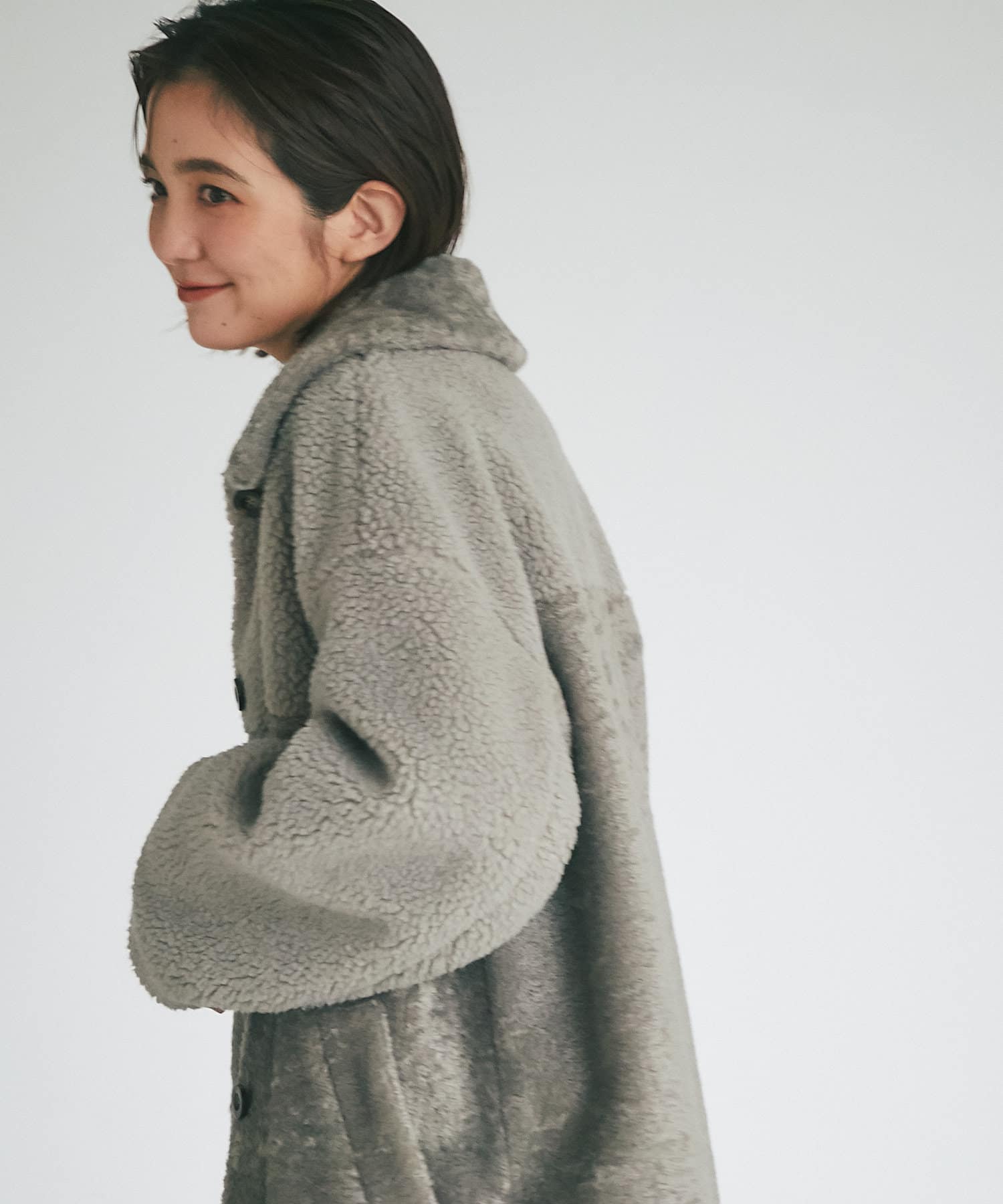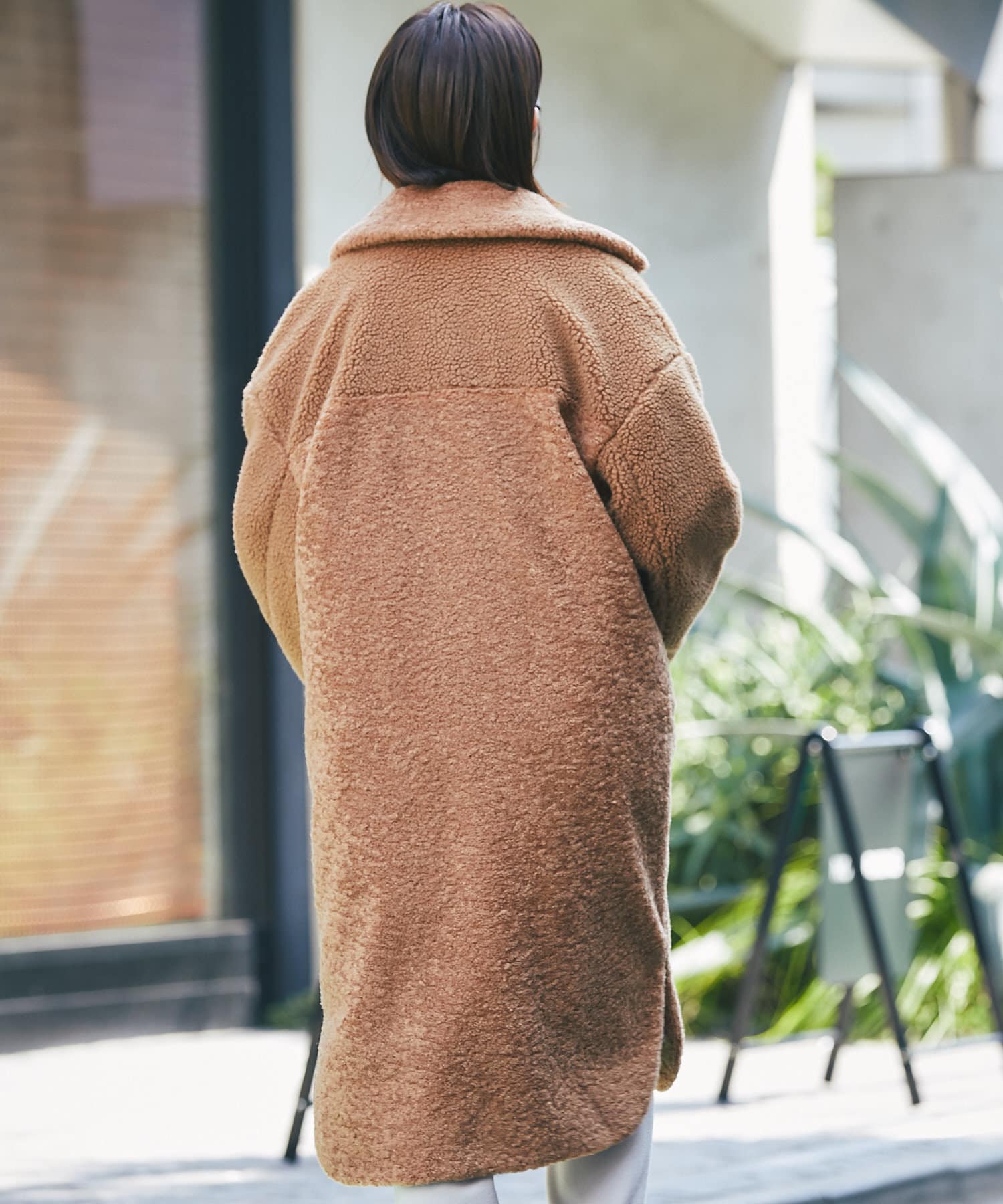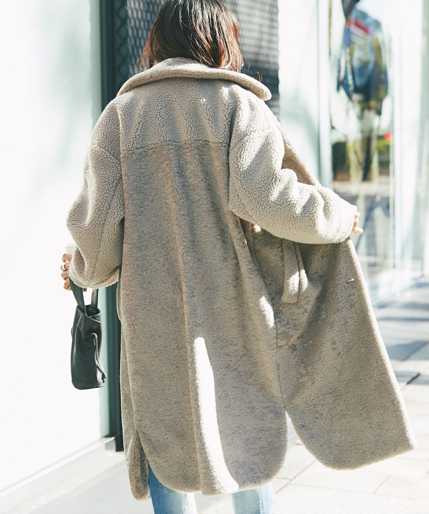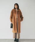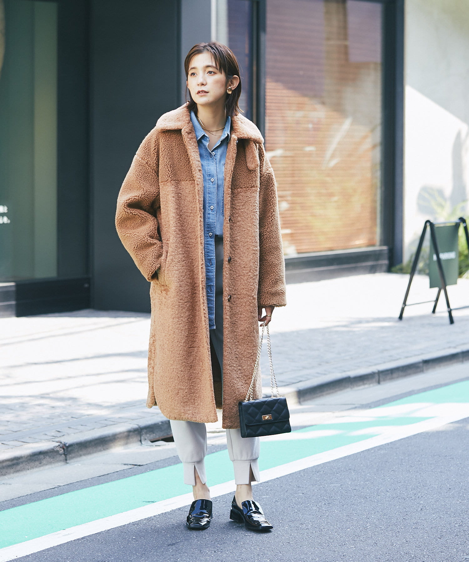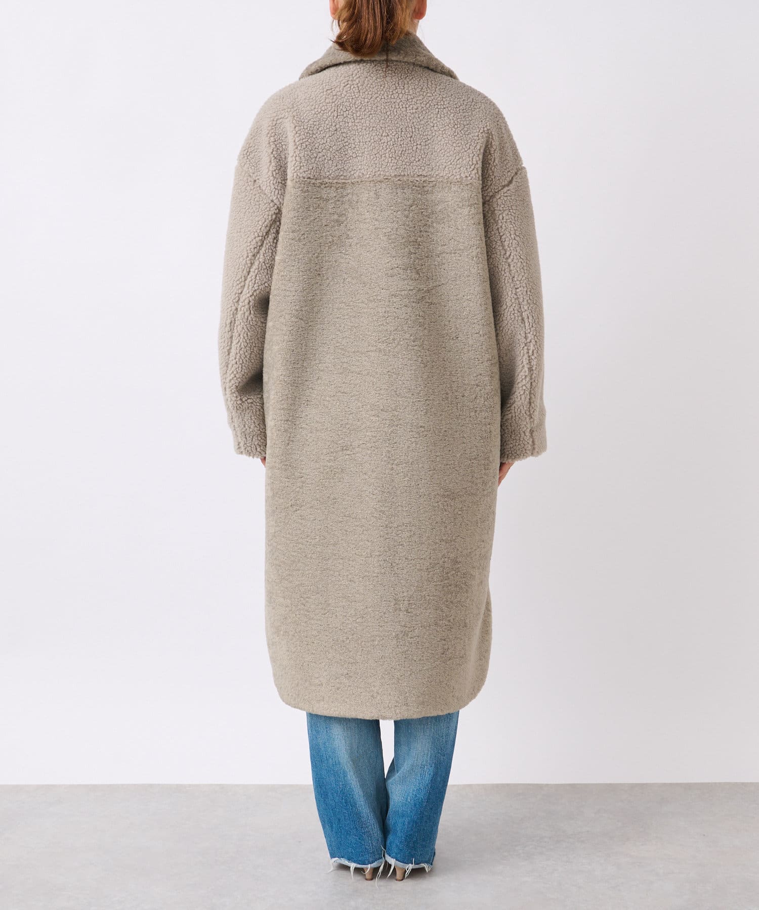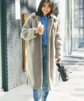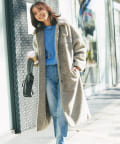 洗練された大人カジュアルを演出するボア素材のステンカラーコート。