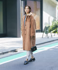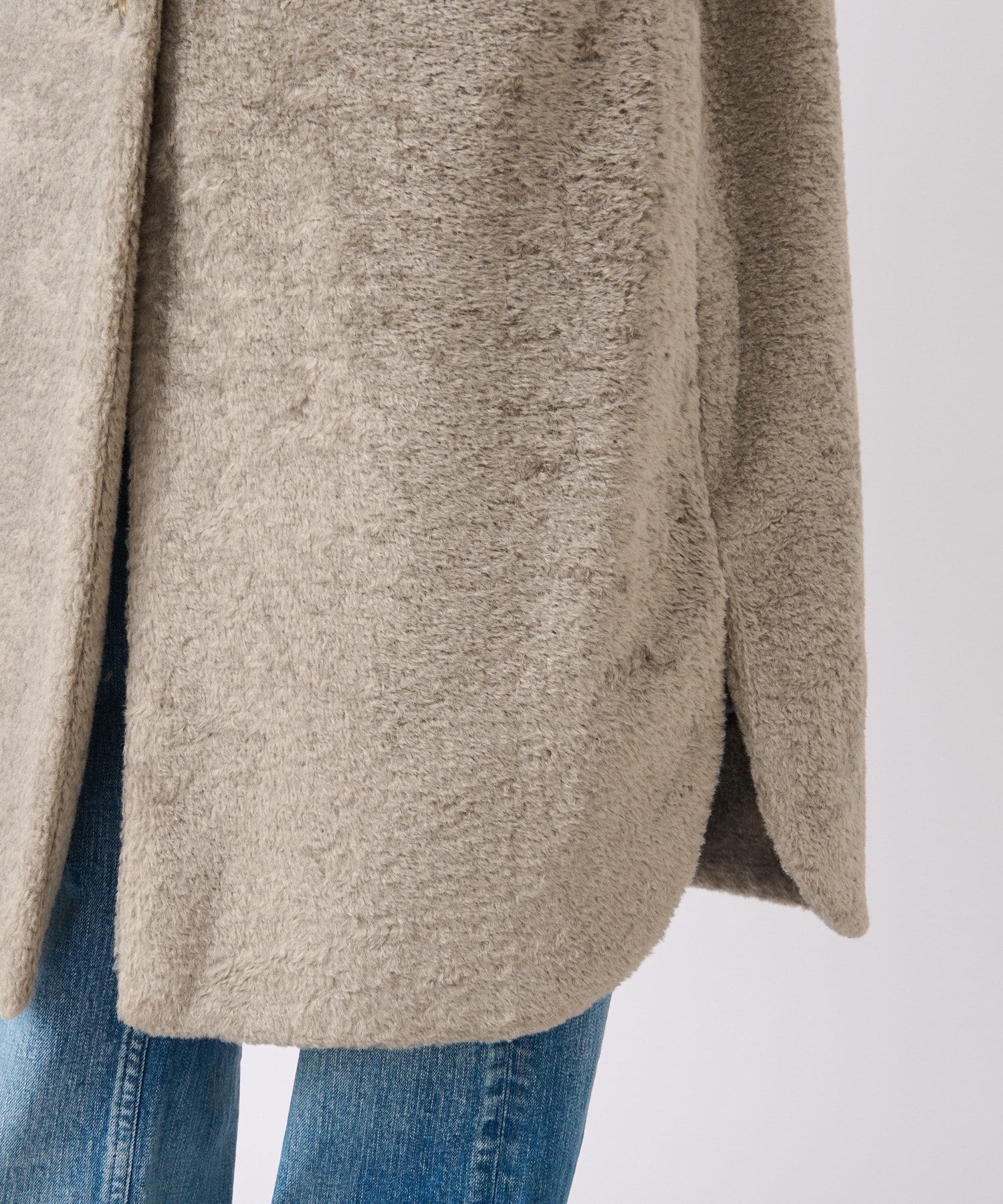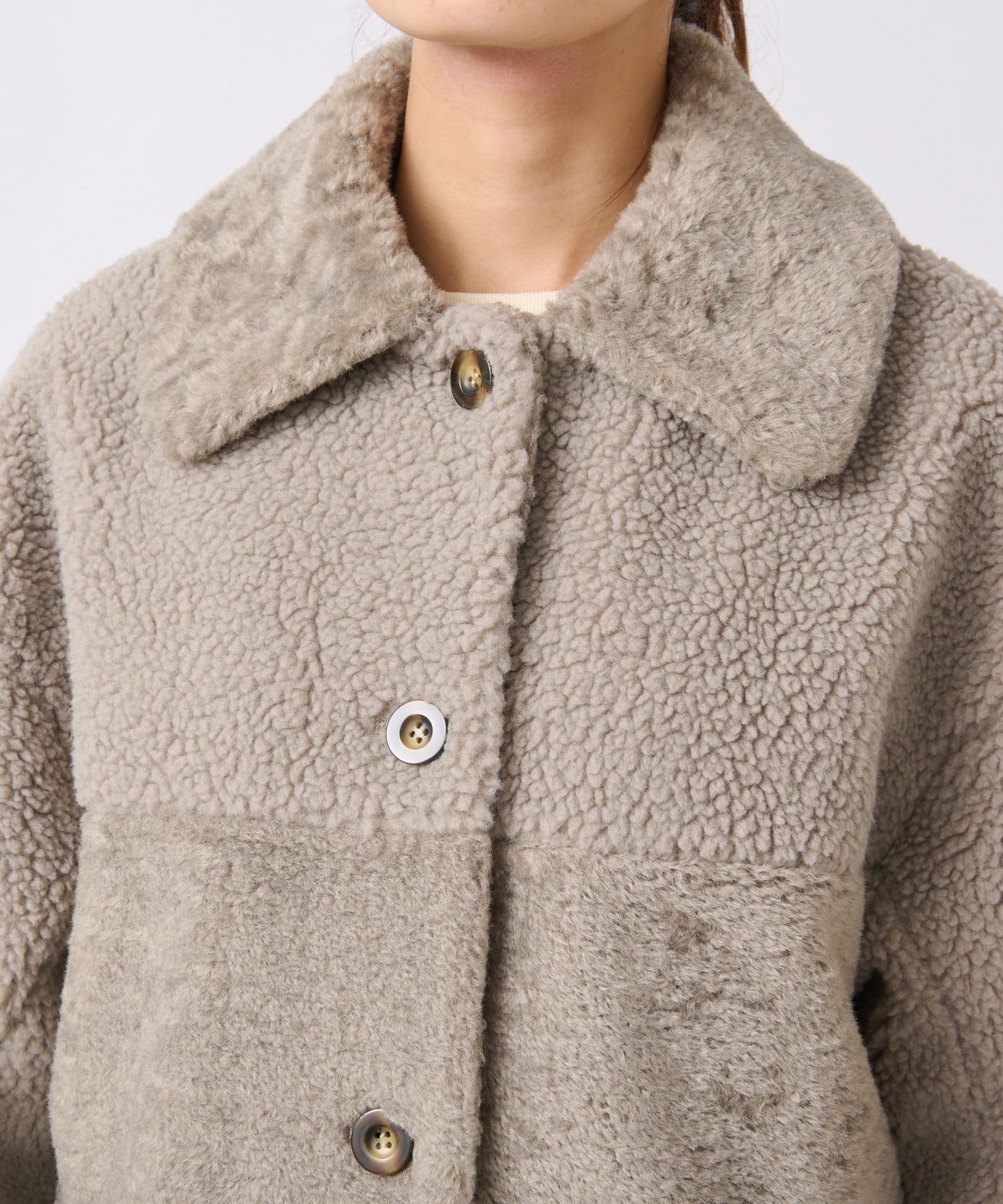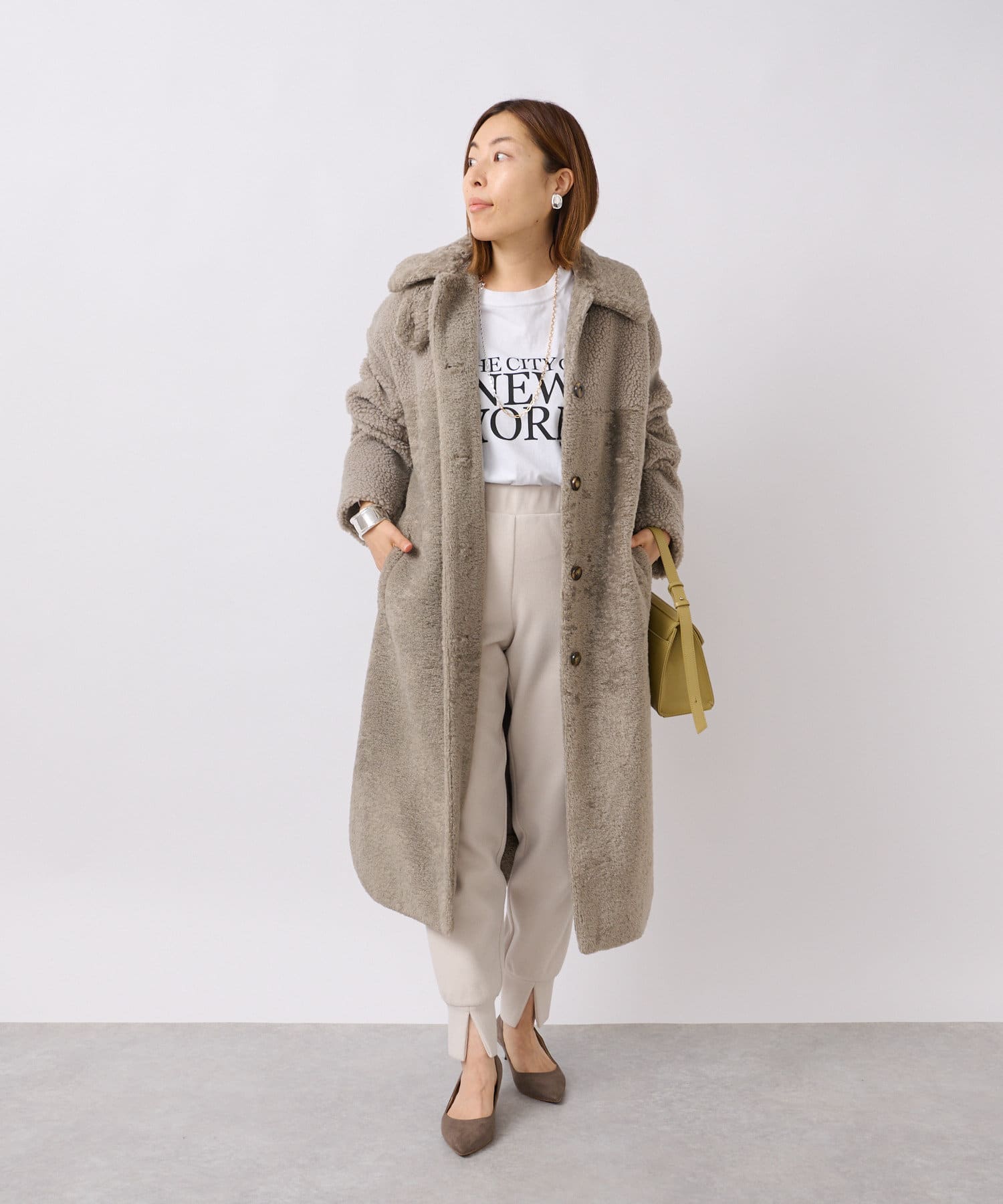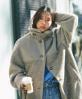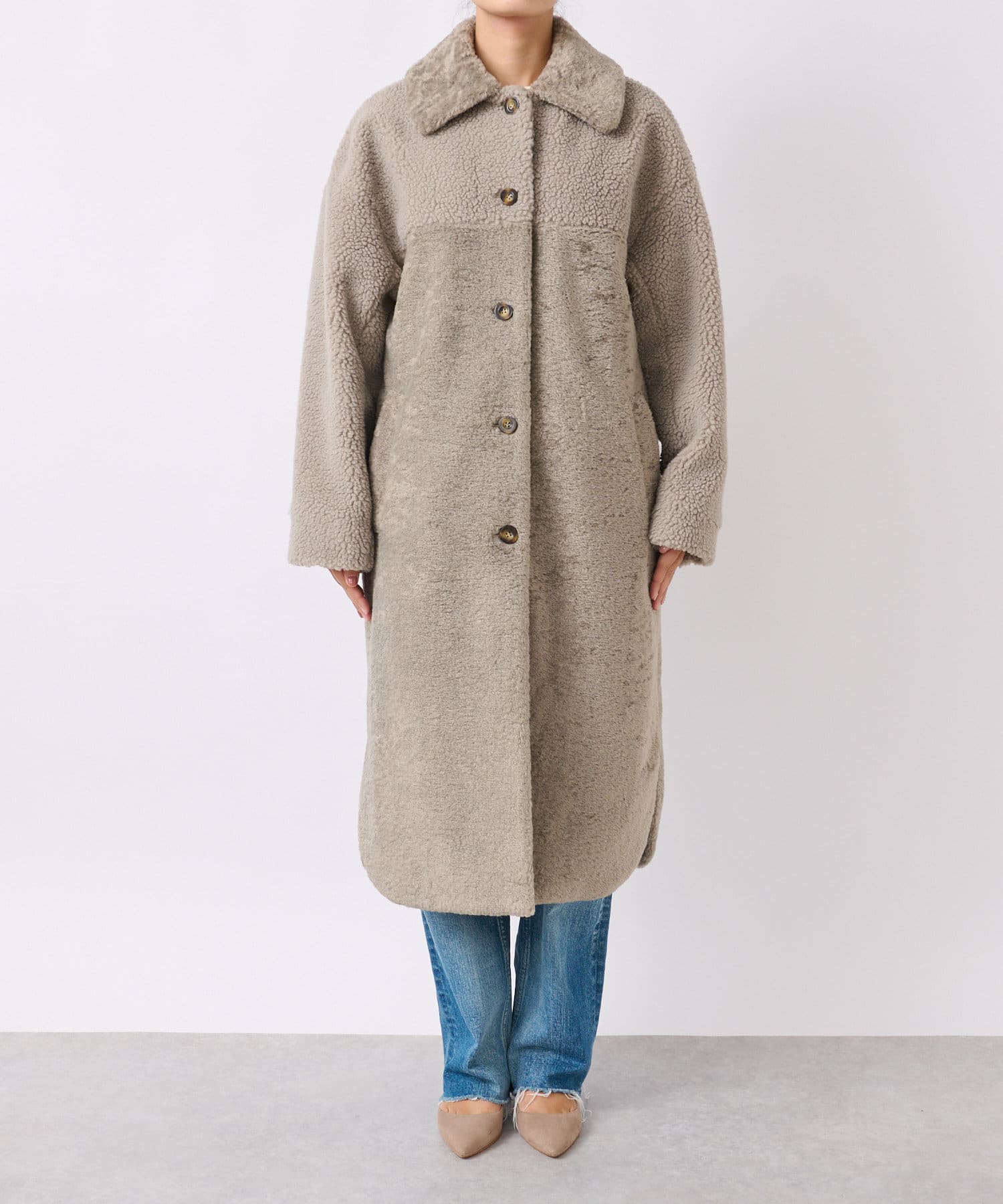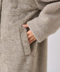 洗練された大人カジュアルを演出するボア素材のステンカラーコート。