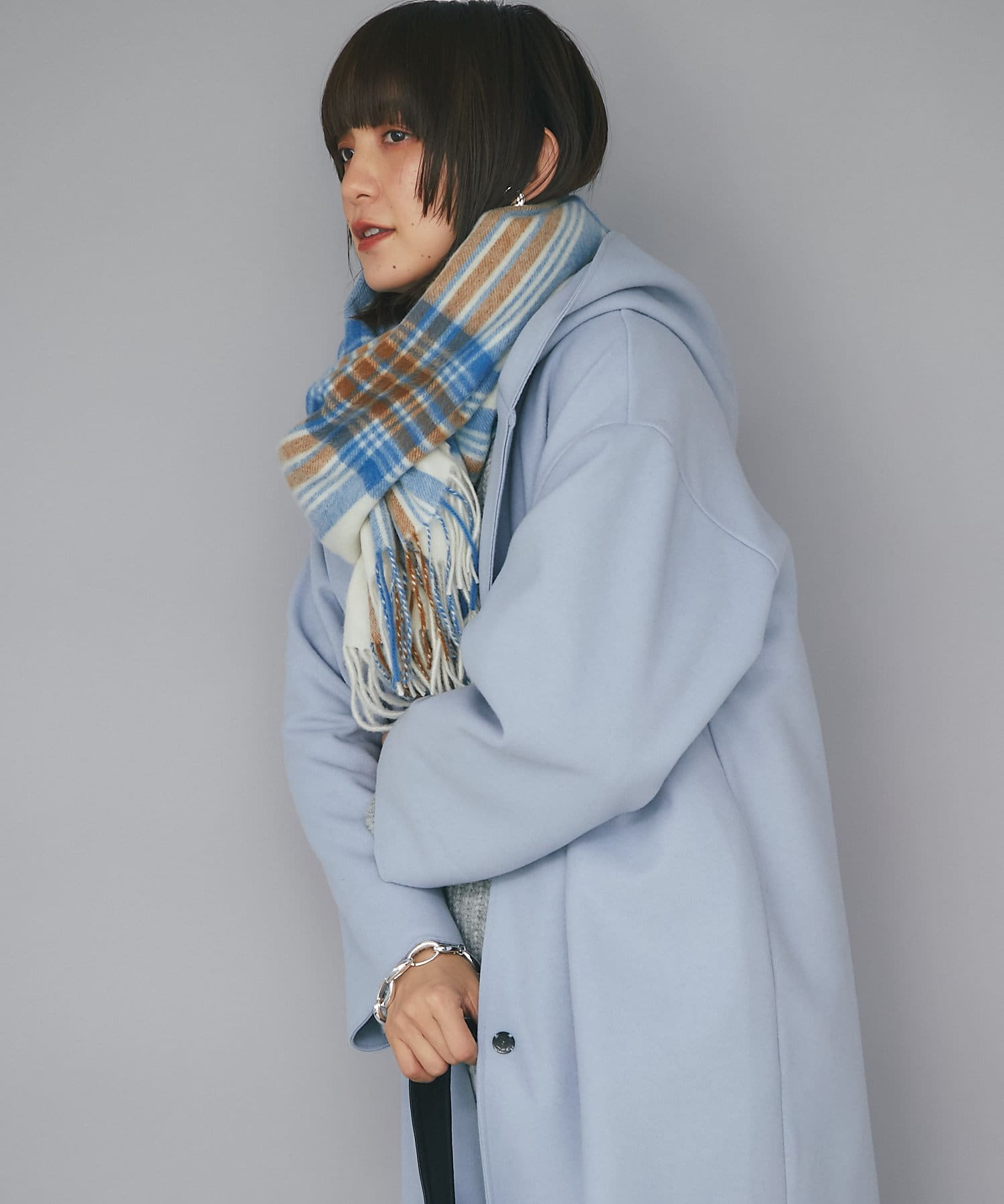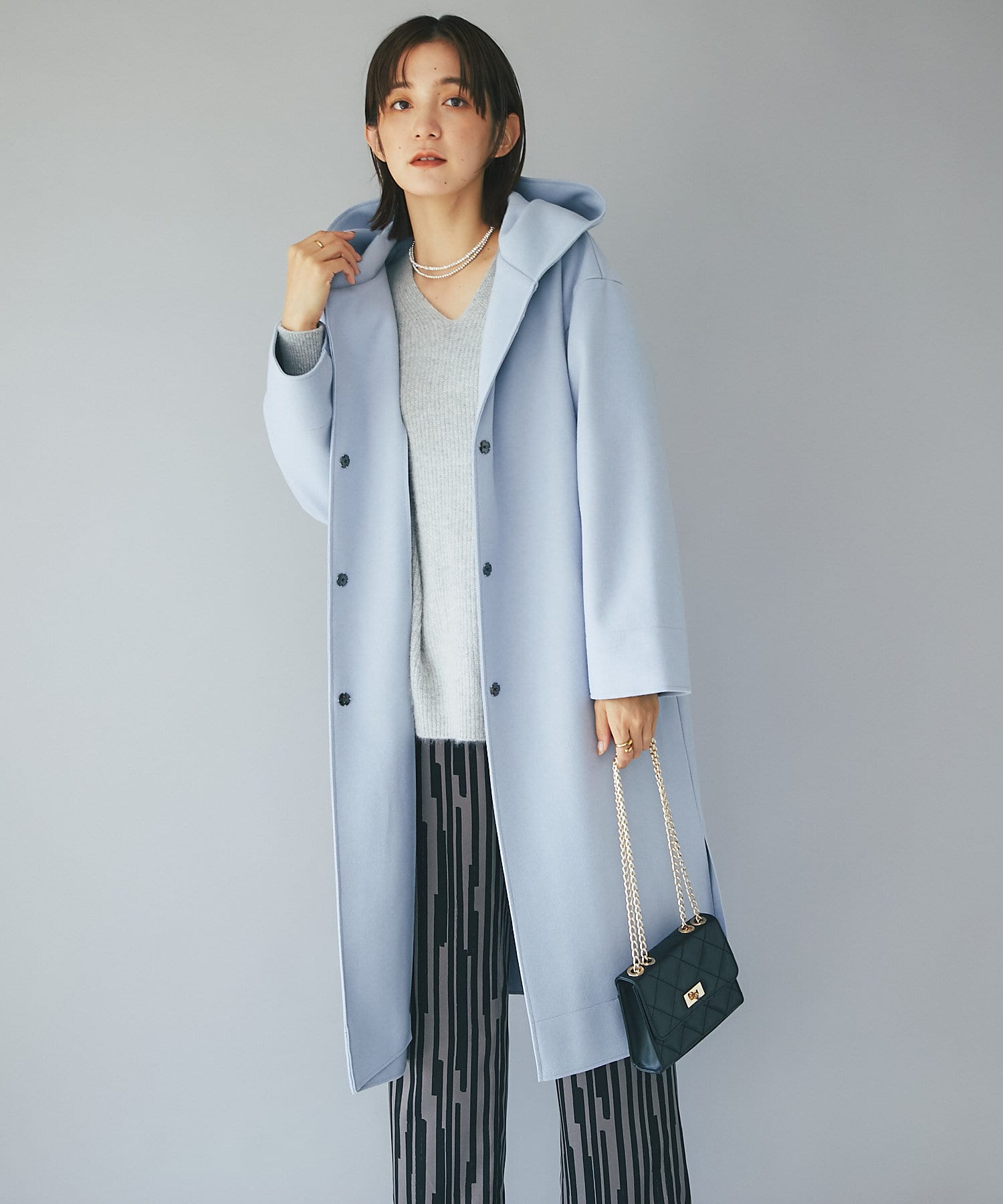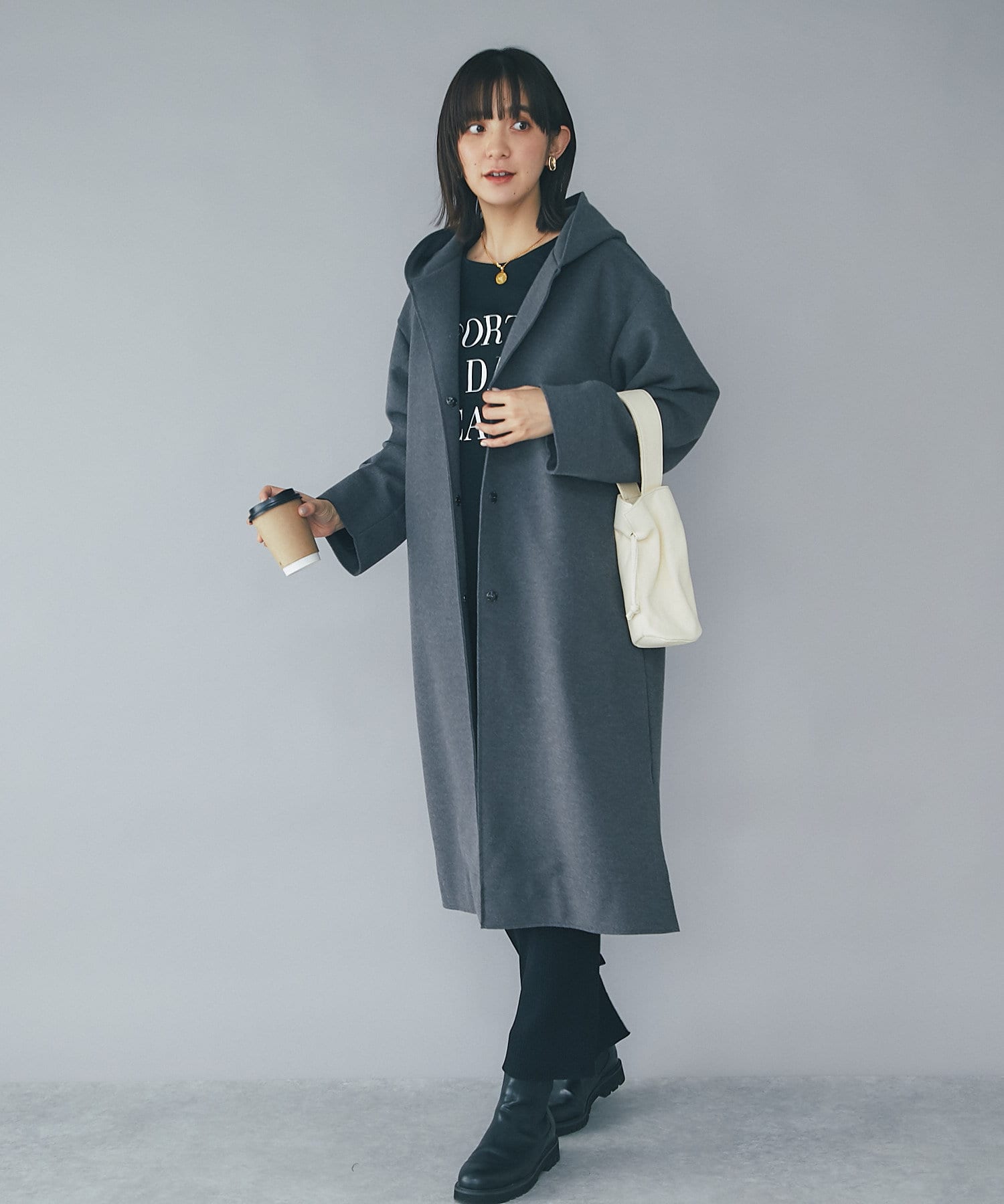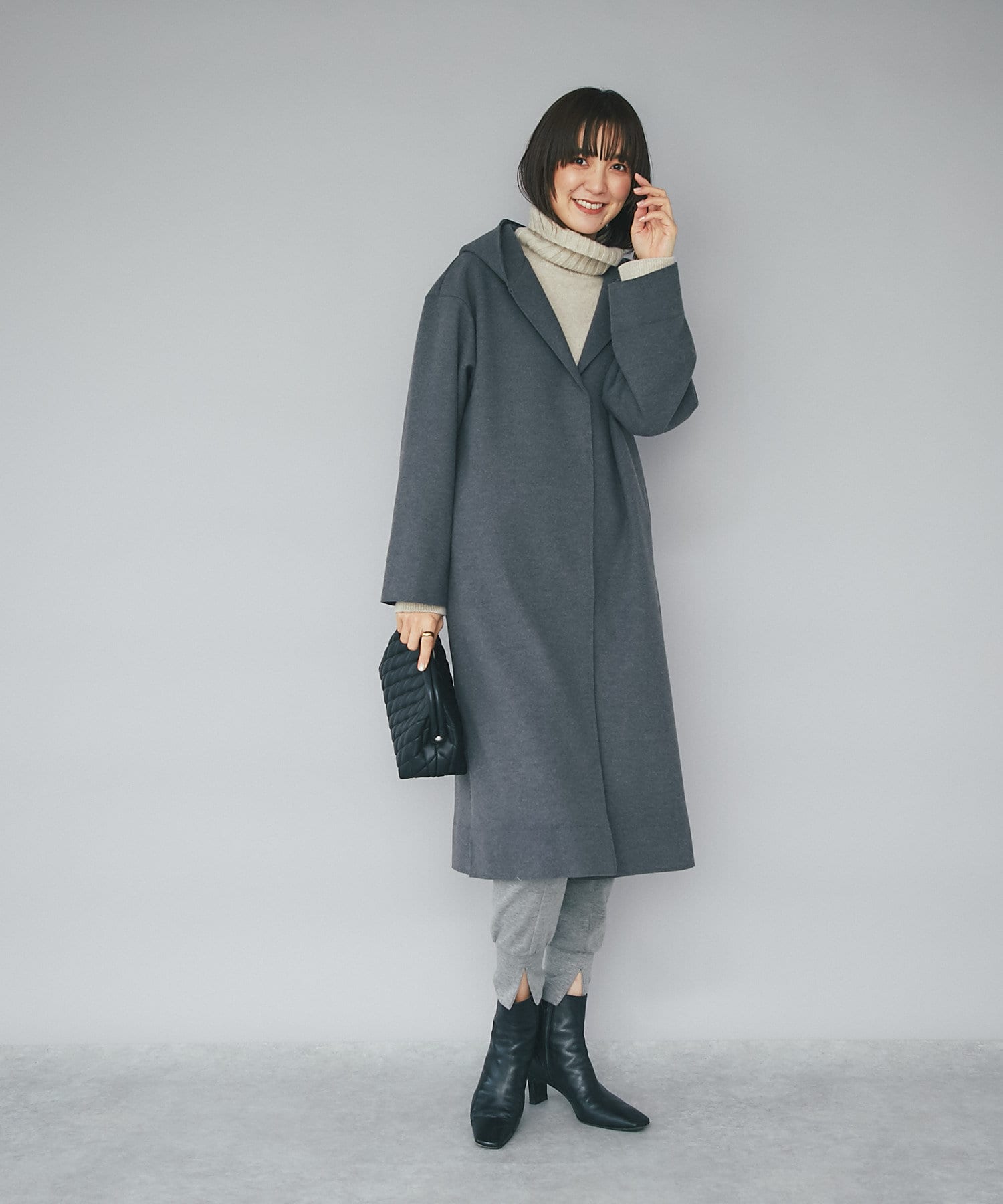 【フードデザインで顔周り華やか】ウールライクフードガウン