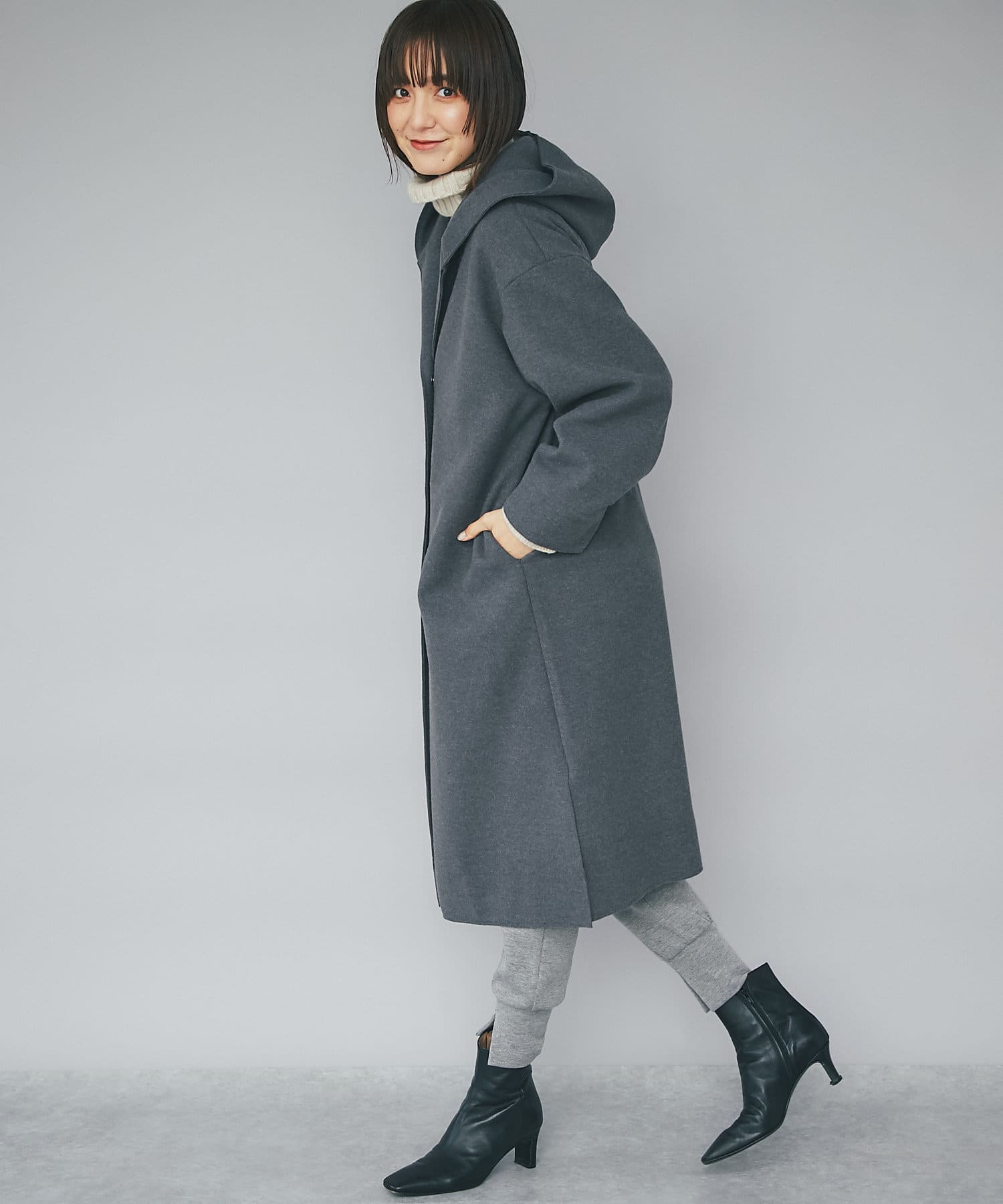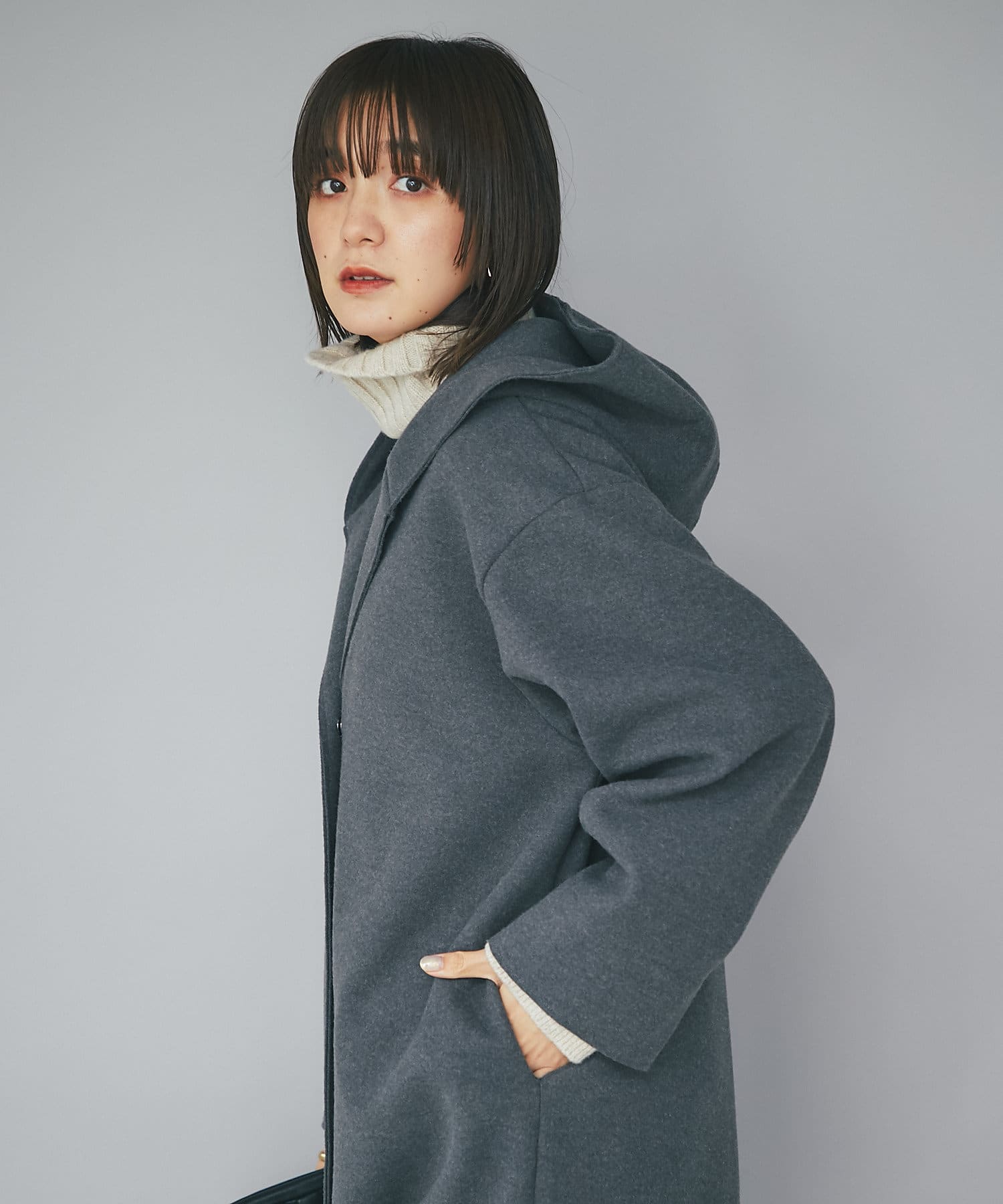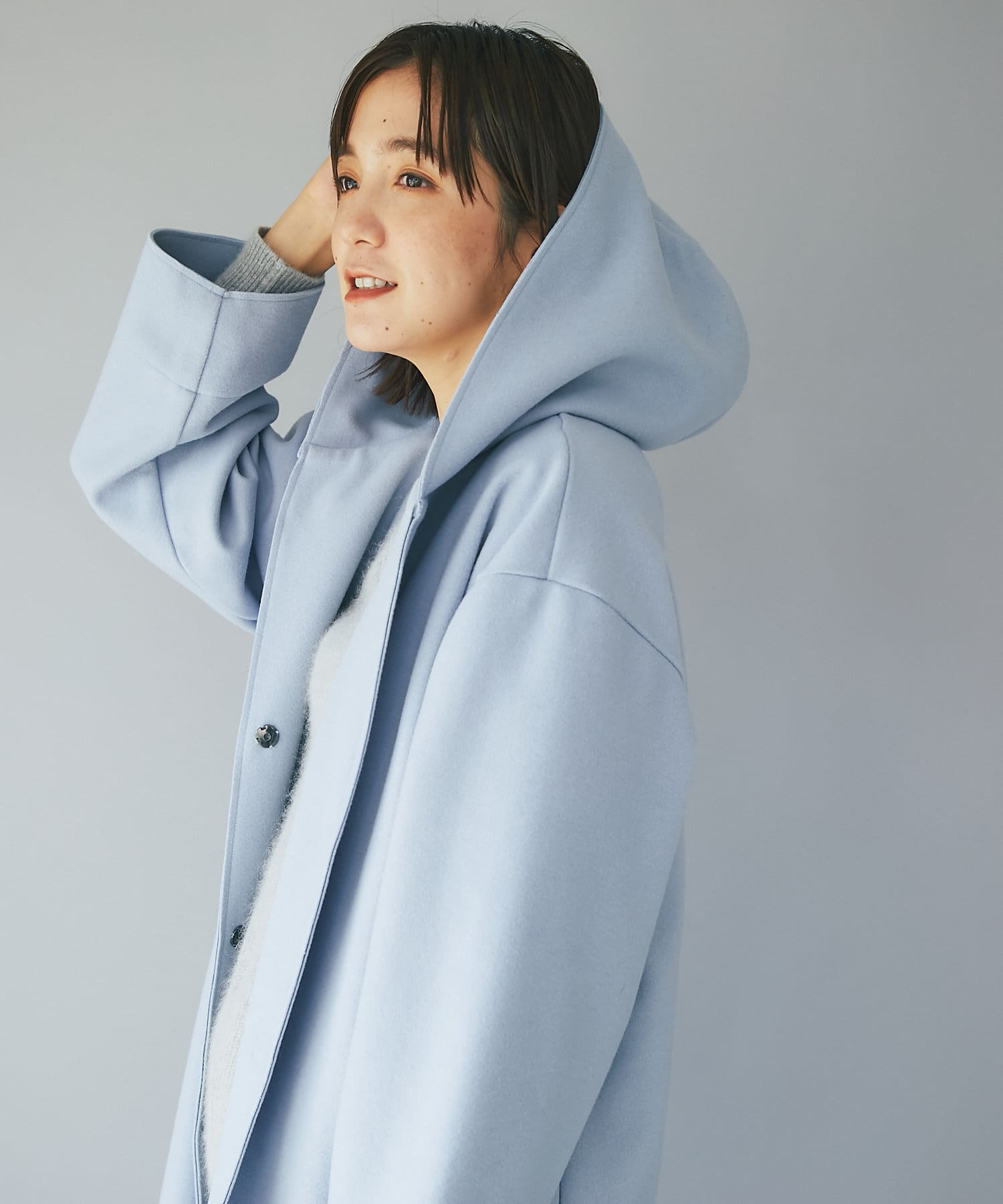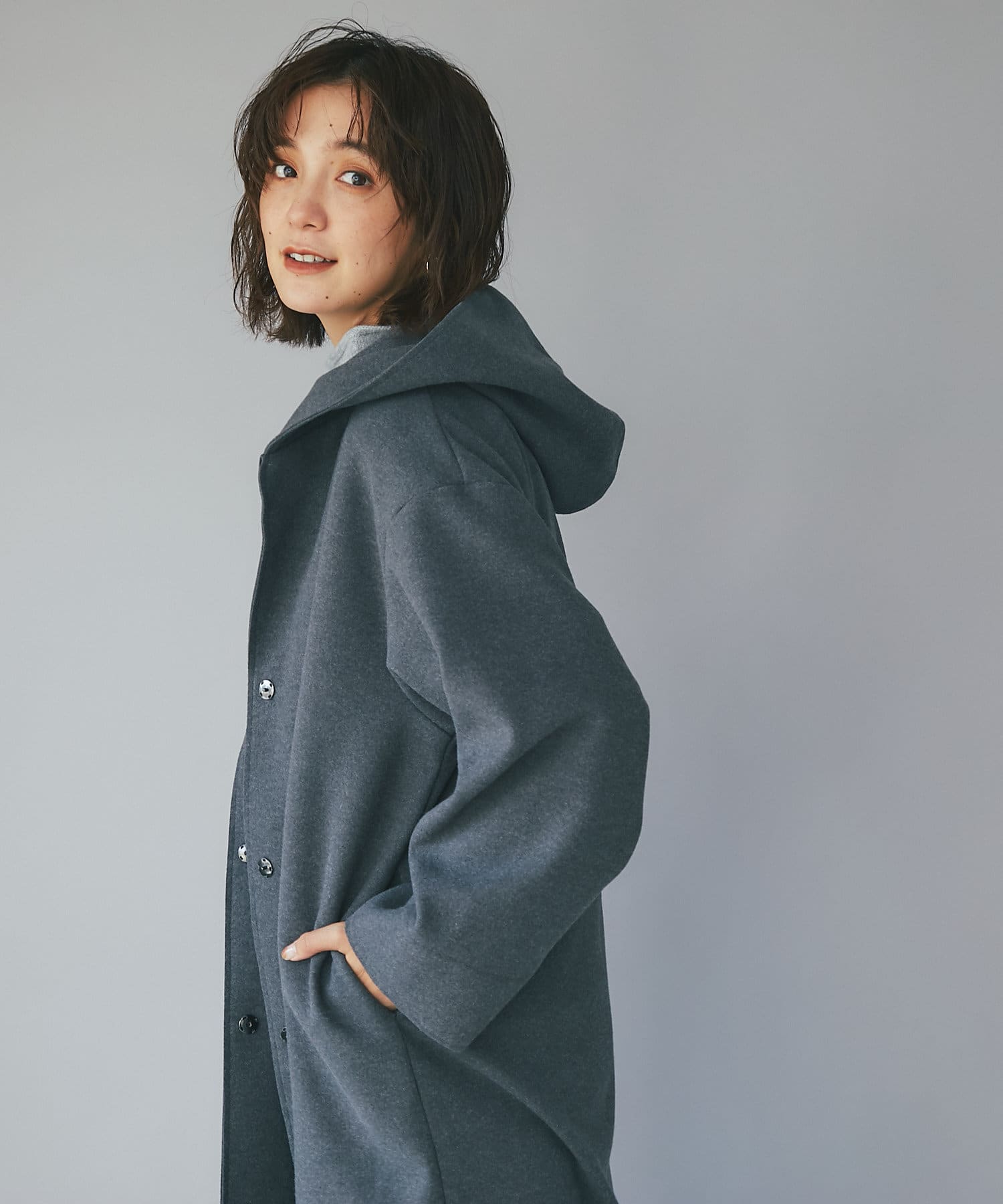 TOP > RIVE DROITE > レディース > ジャケット/アウター > その他コート > 【フードデザインで顔周り華やか】ウールライクフードガウン