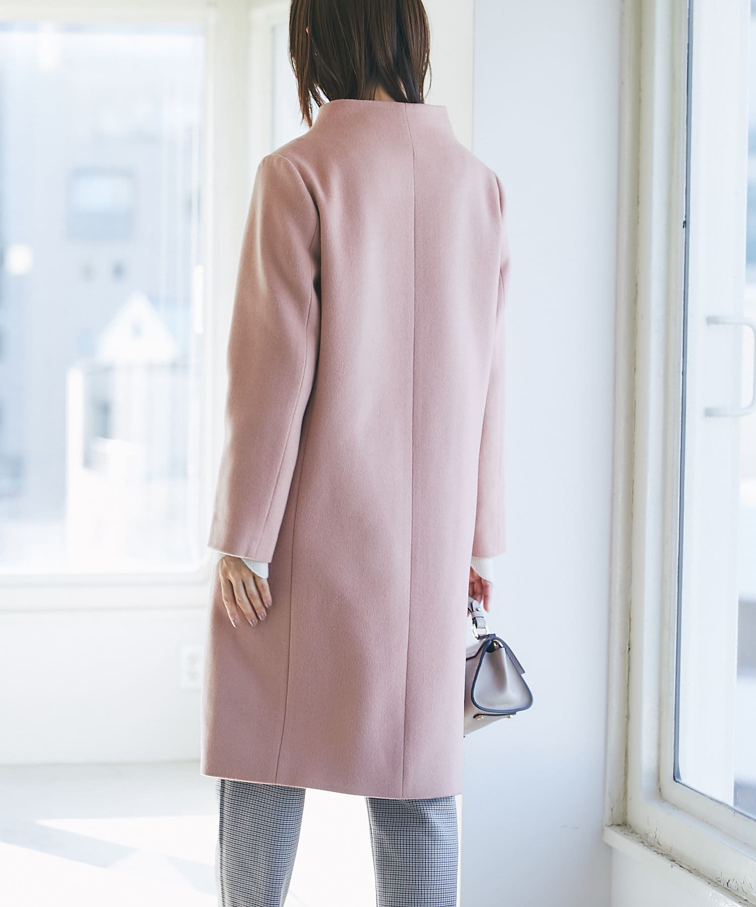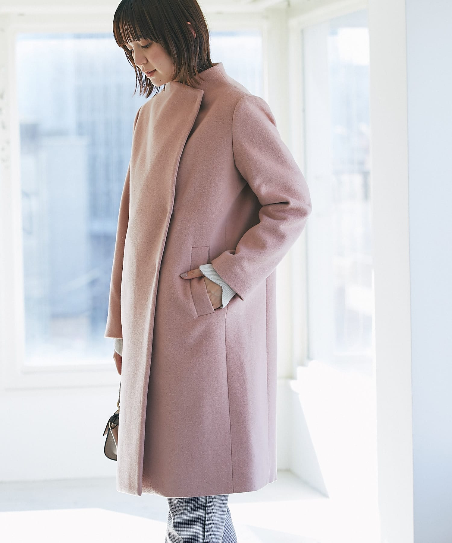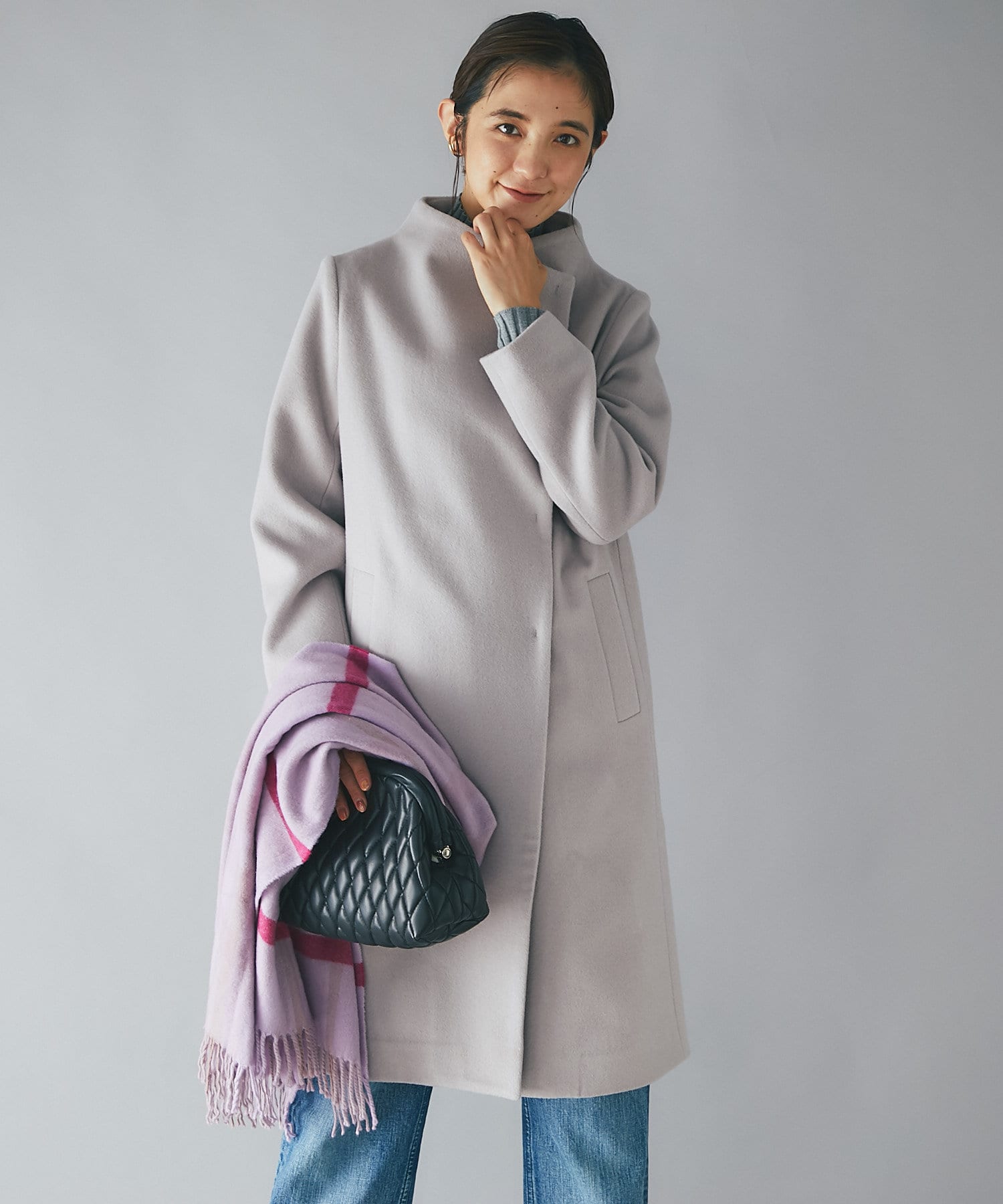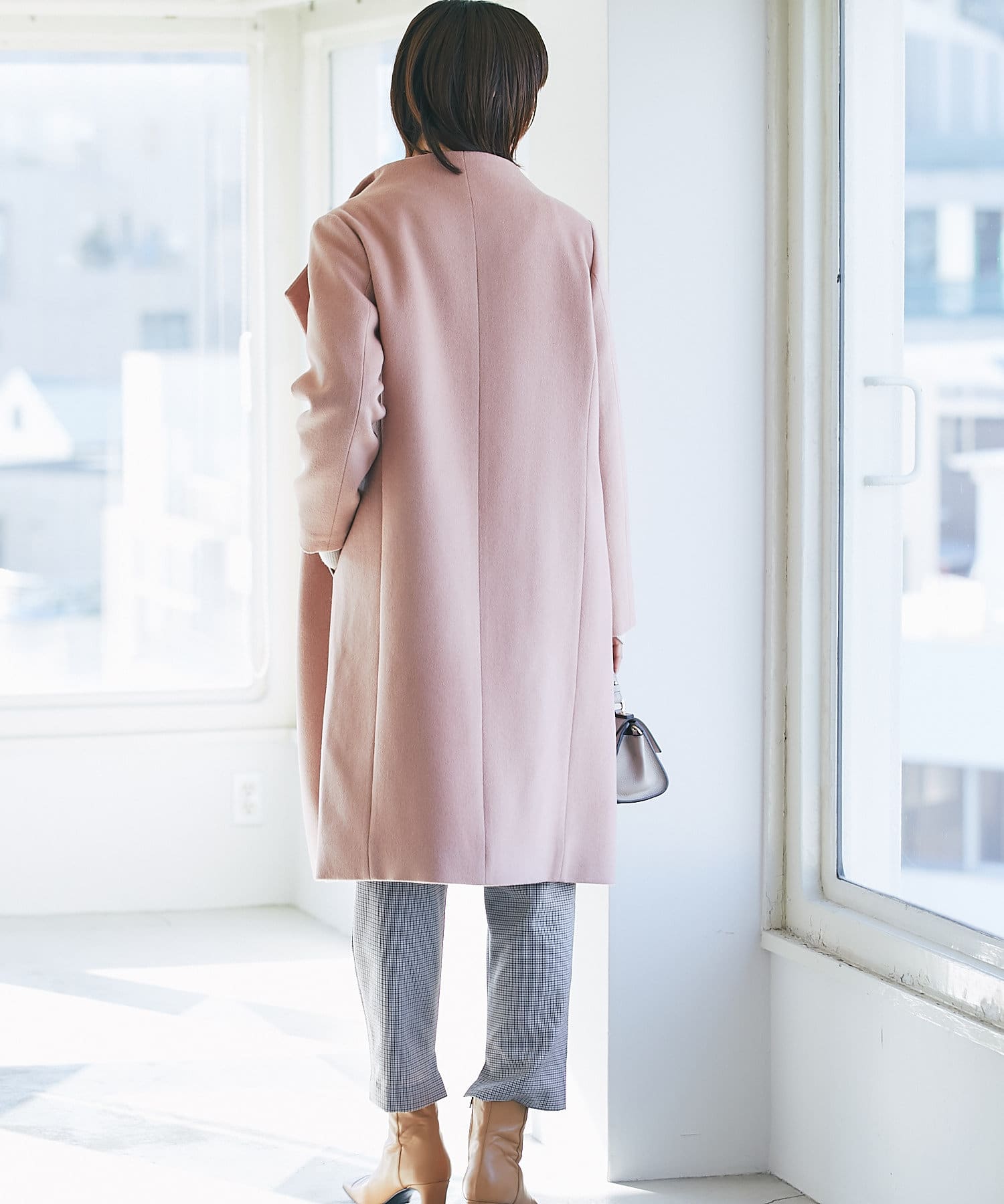 ノーカラーコートだと中はタートルネック一択のイメージですが、こちらはボトルネックなので首元を気にせず何でも着られそうです。