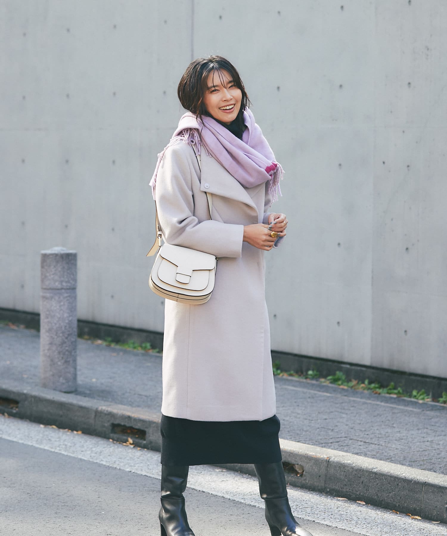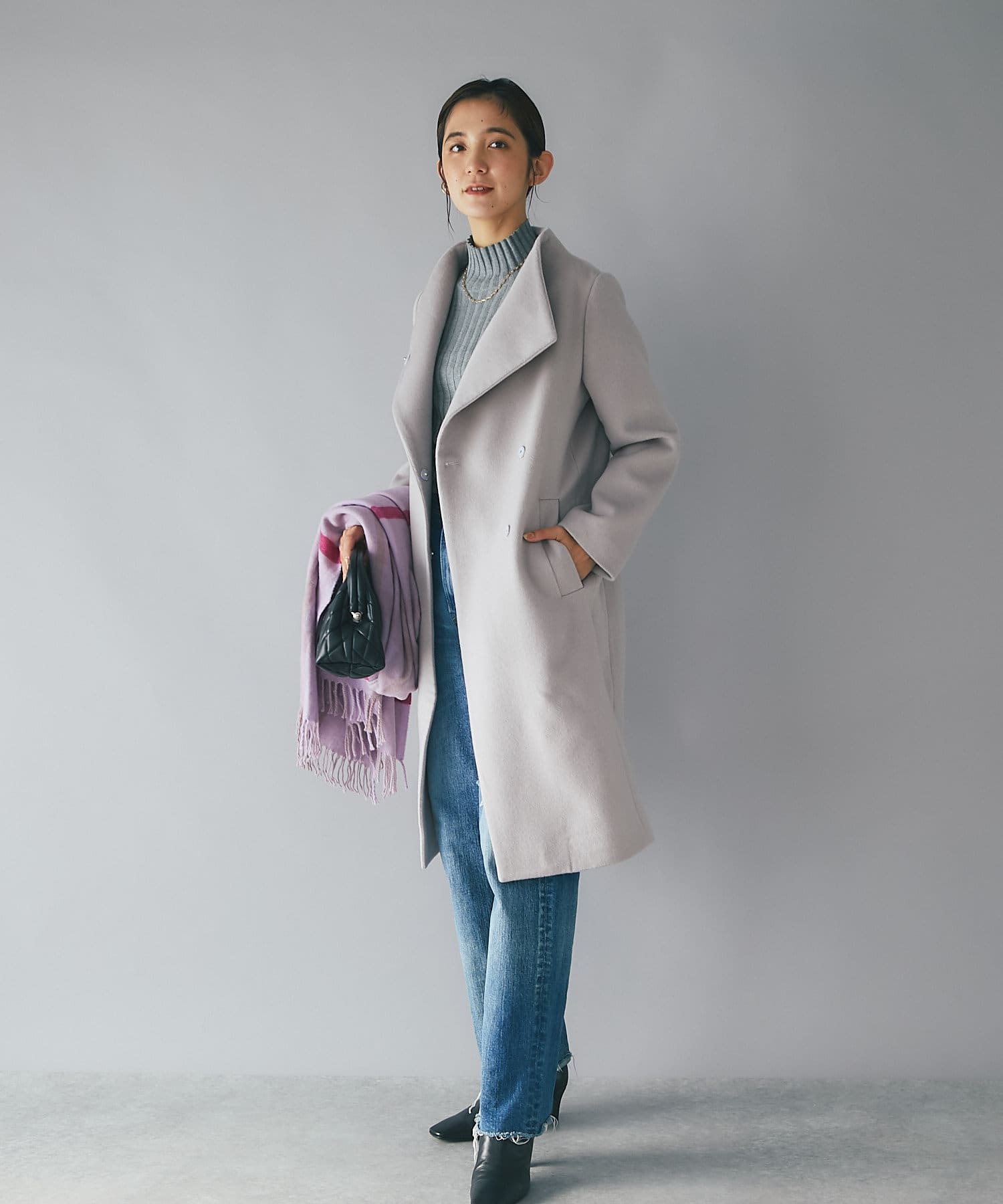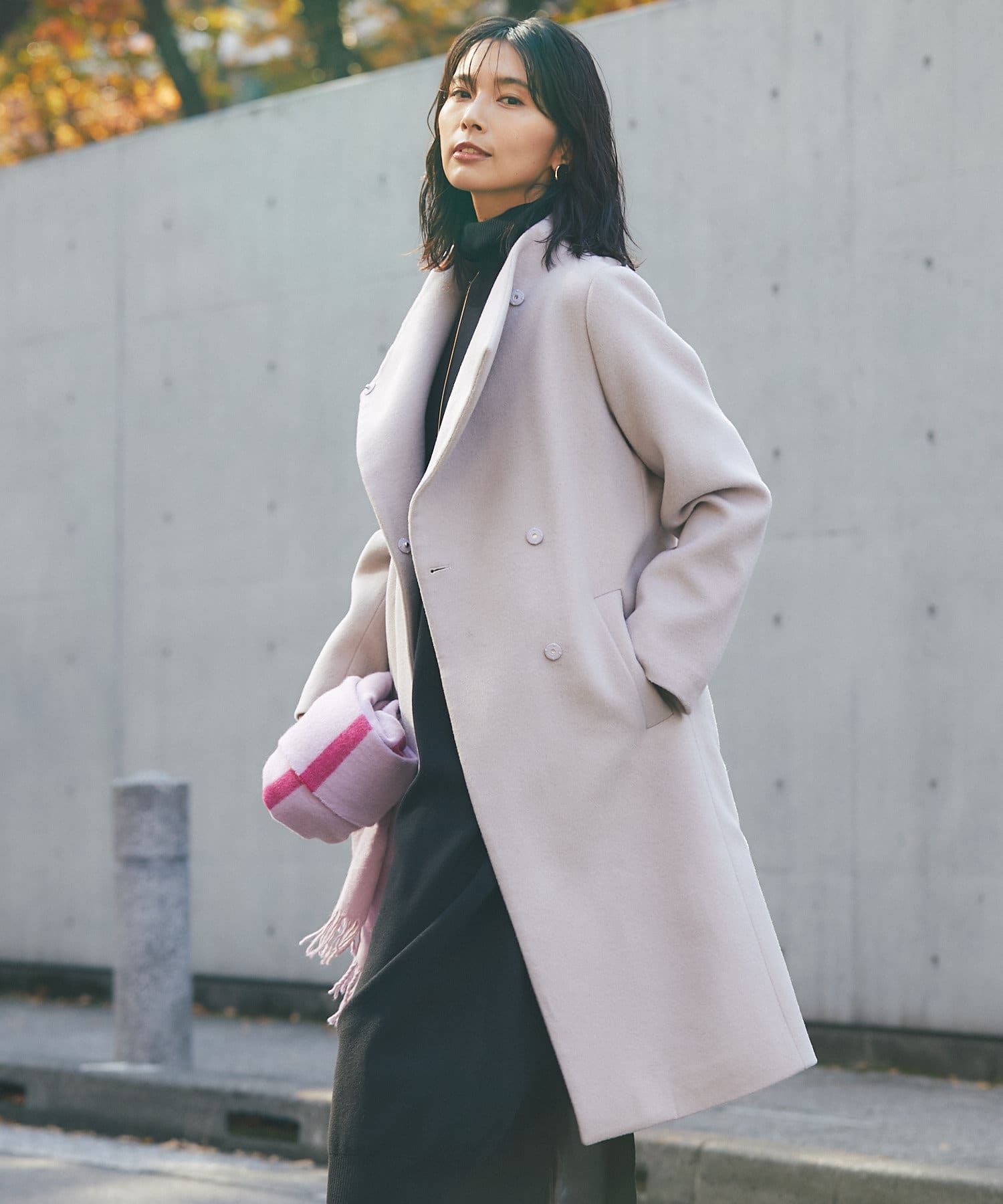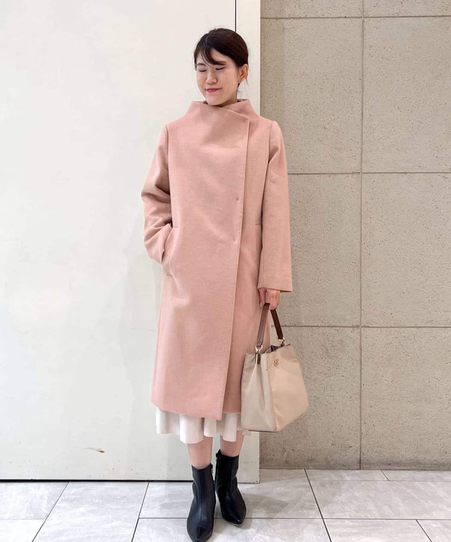 ⇒そんな方におすすめしたいのがこちらのコート。膝裏あたりの丈感で長すぎず、防寒もしっかりできる絶妙な長さが魅力。すっきりしたシルエットでオケージョンスタイルにも合わせられ、普段使いももちろんOK!小柄さんにもおすすめのアイテムです。