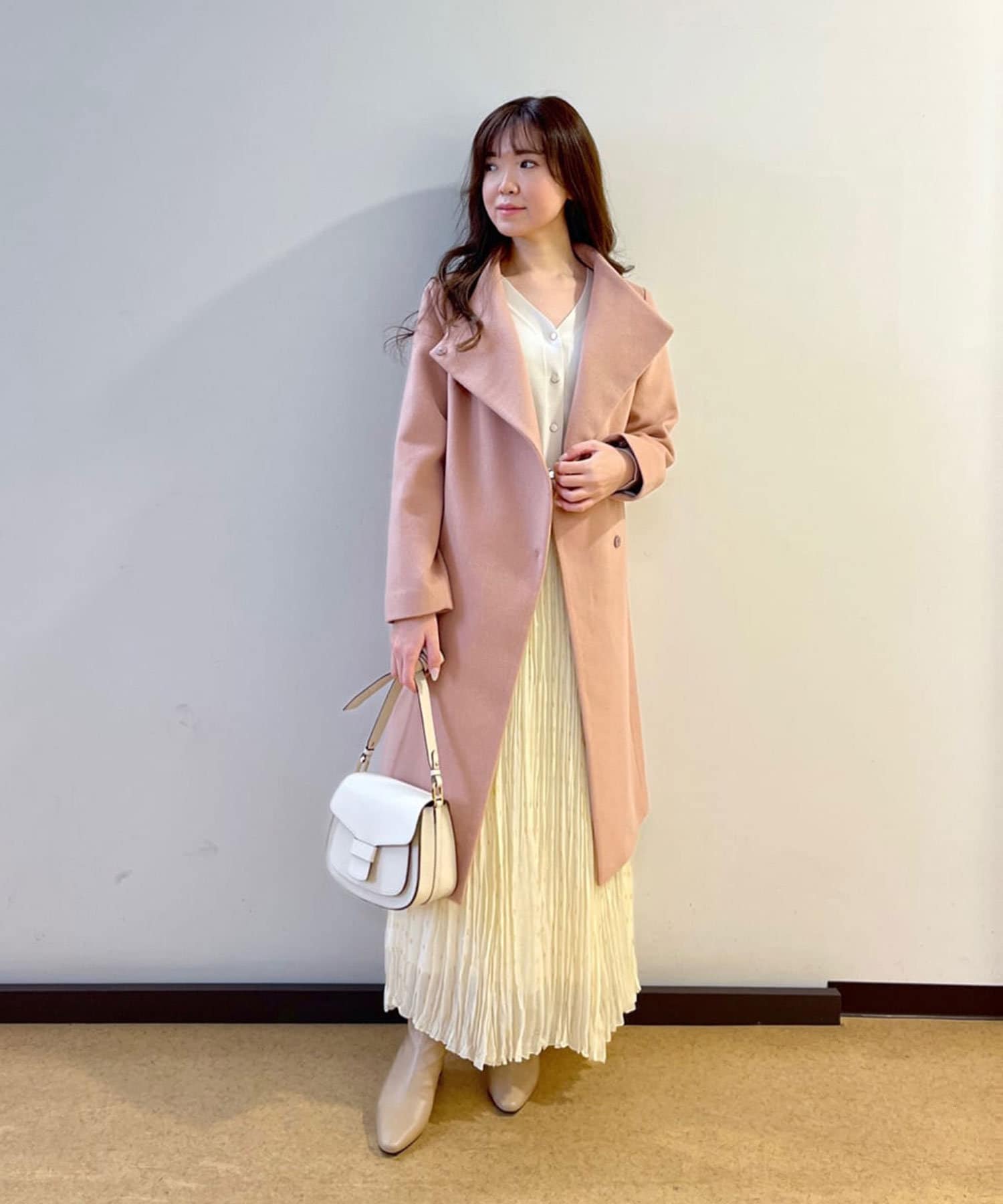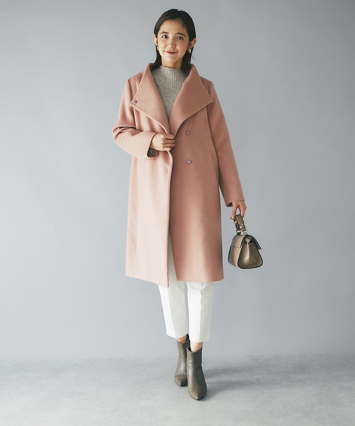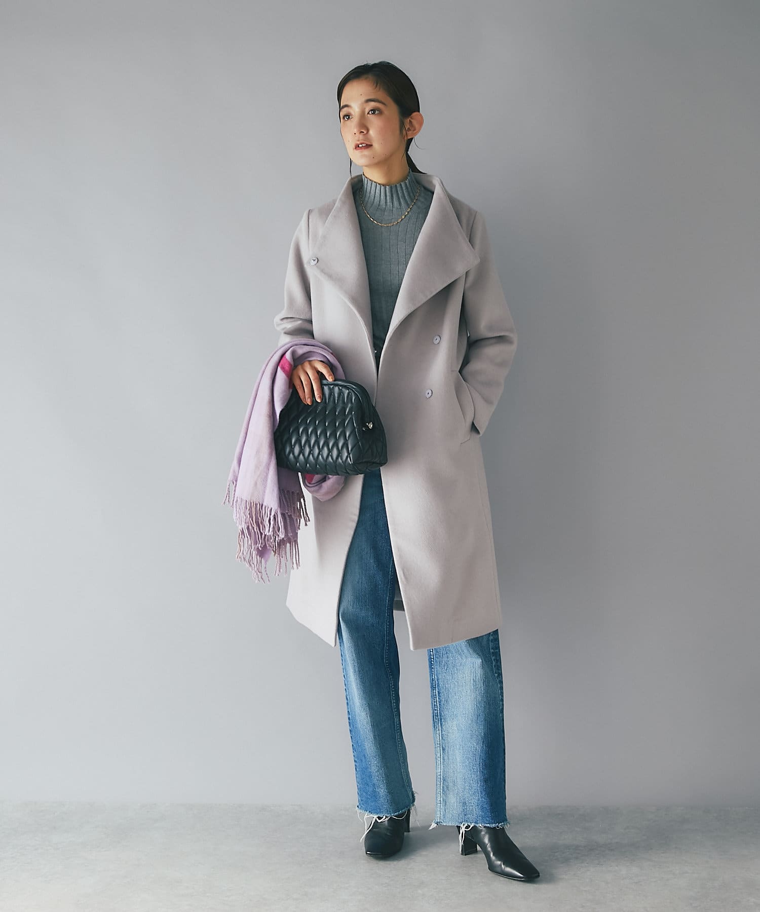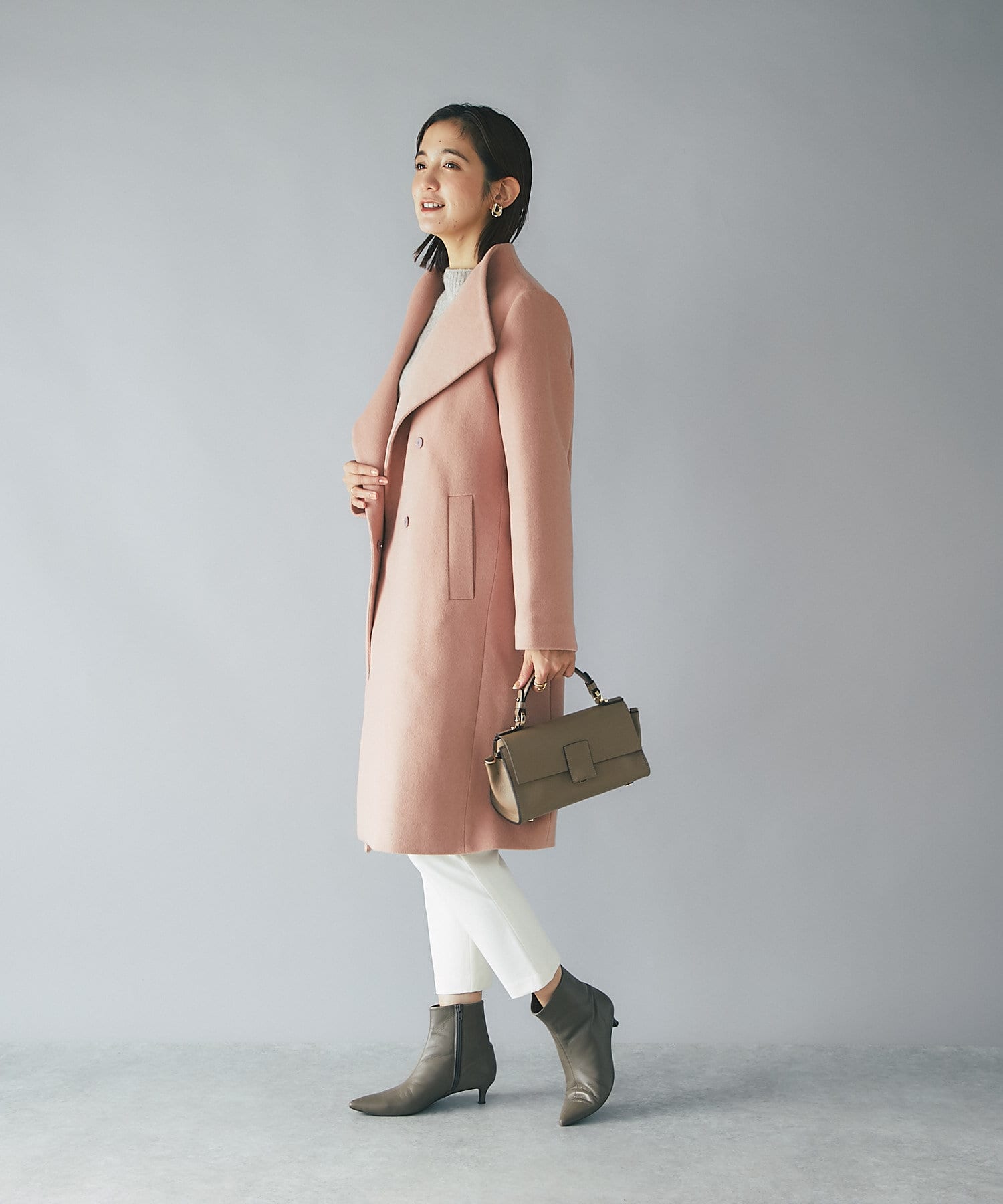 ⇒そんな方におすすめしたいのがこちらのコート。膝裏あたりの丈感で長すぎず、防寒もしっかりできる絶妙な長さが魅力。すっきりしたシルエットでオケージョンスタイルにも合わせられ、普段使いももちろんOK!小柄さんにもおすすめのアイテムです。