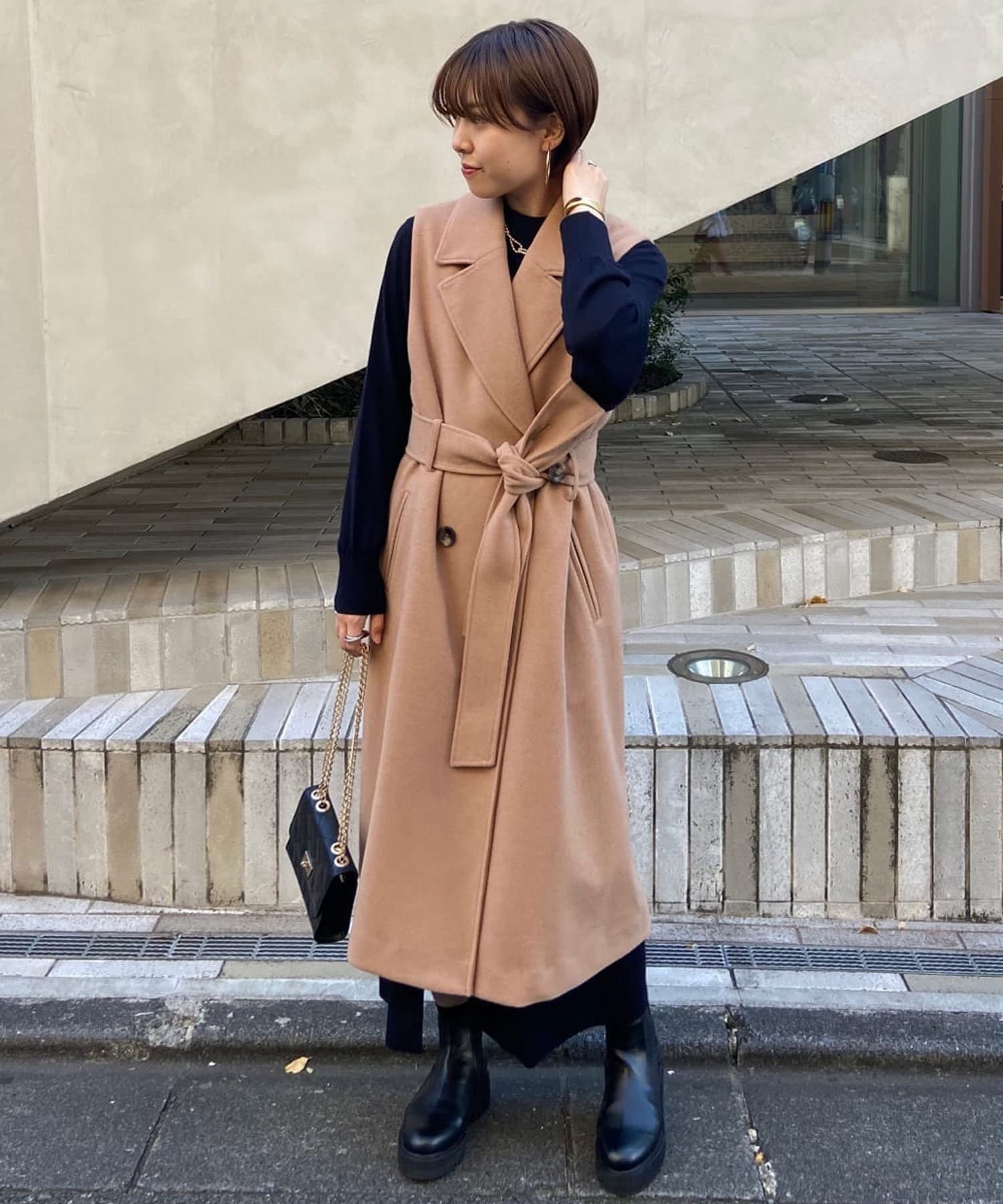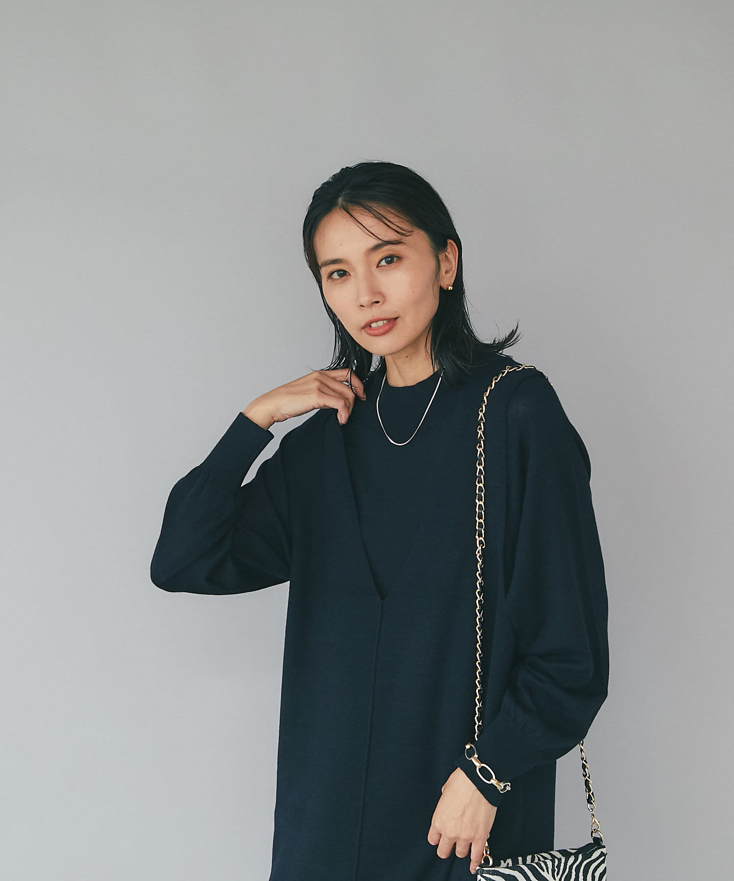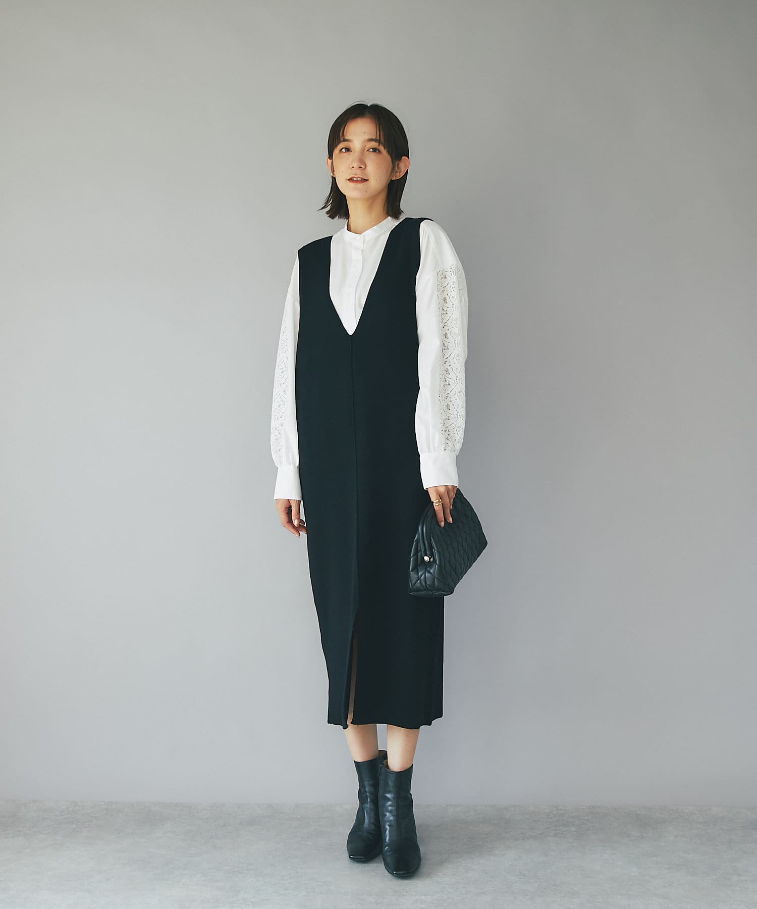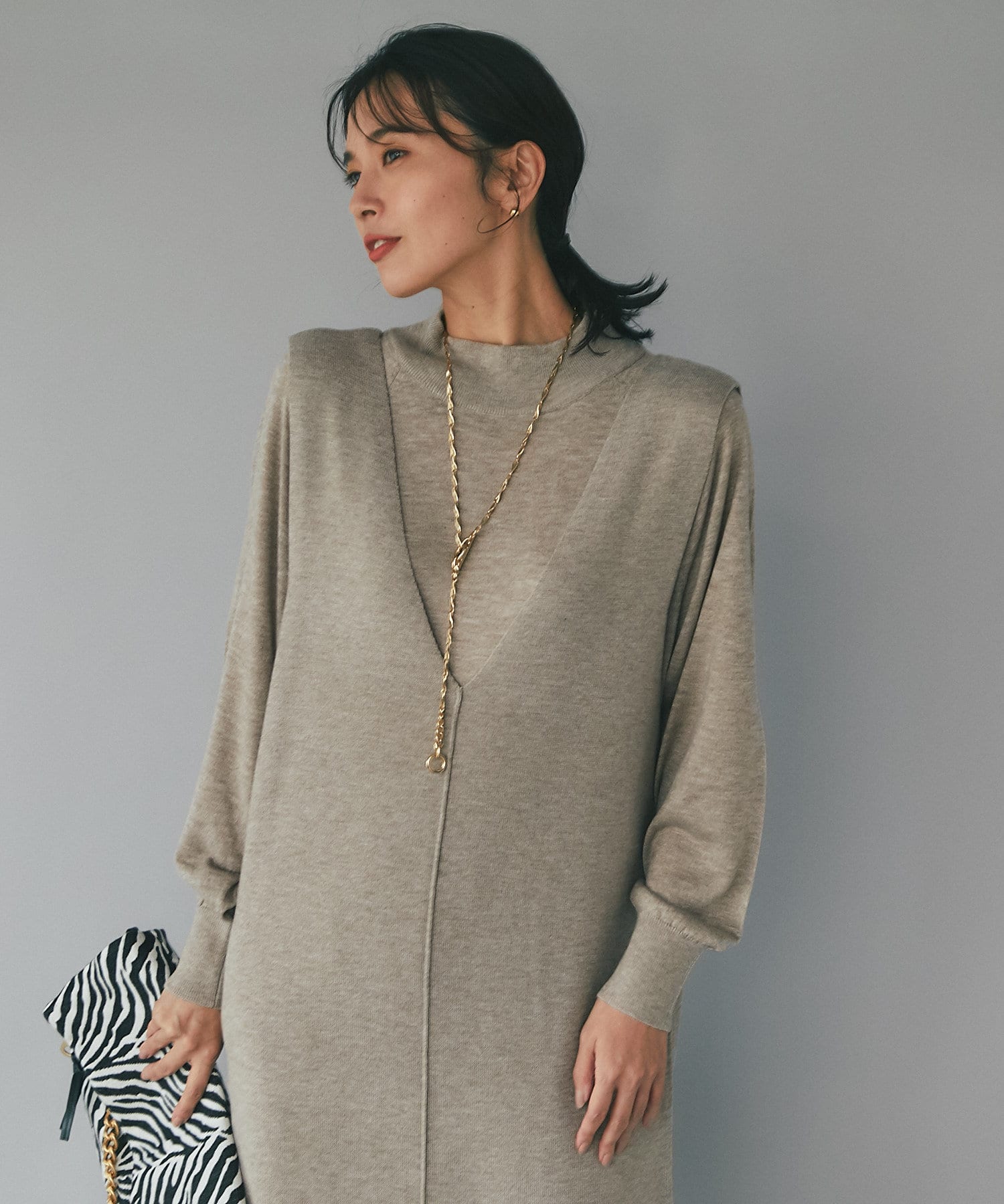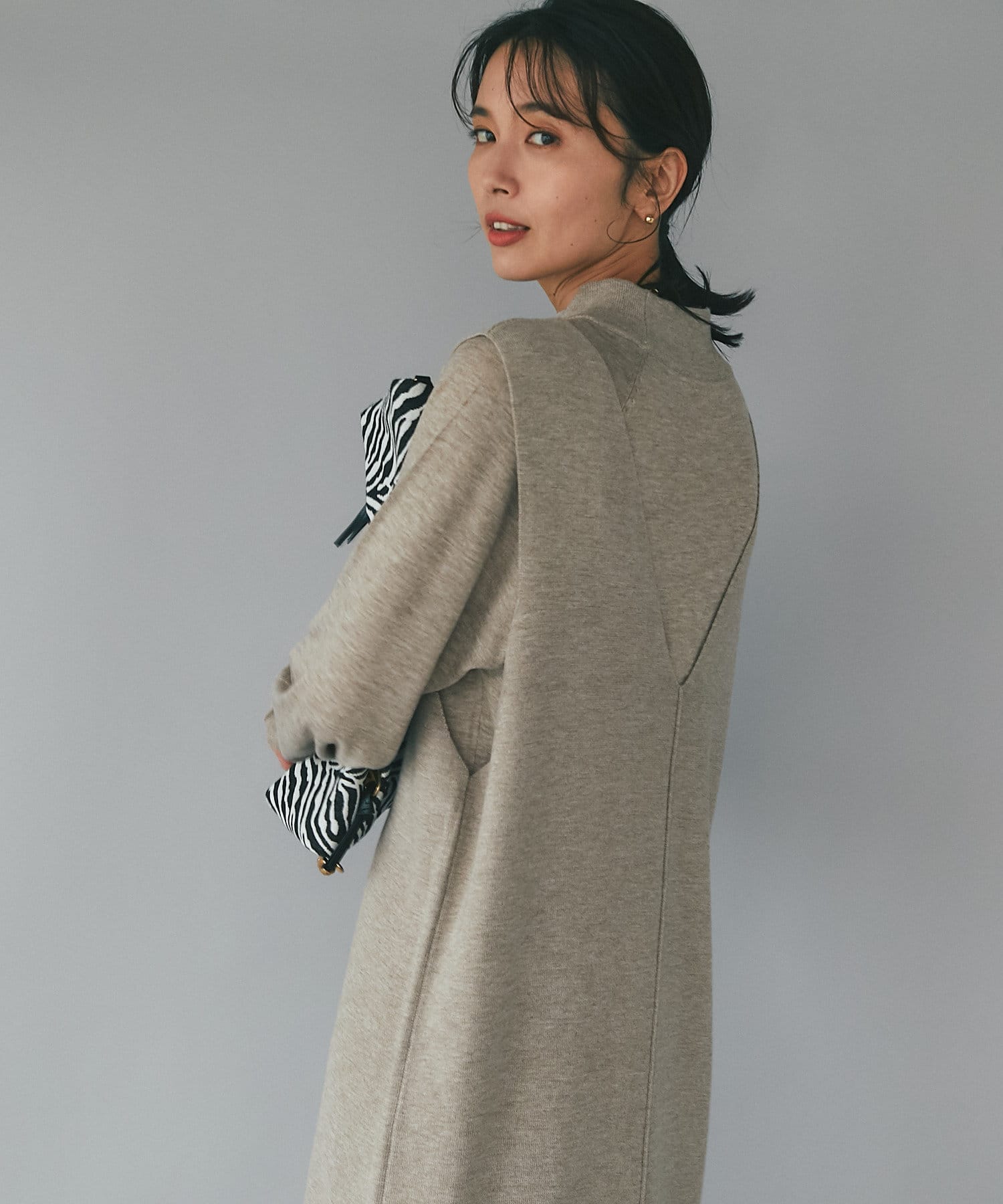 セットで着用してワンピースのように着用して頂くと、リラックス感がありながらも上品で着こなして頂けます。
