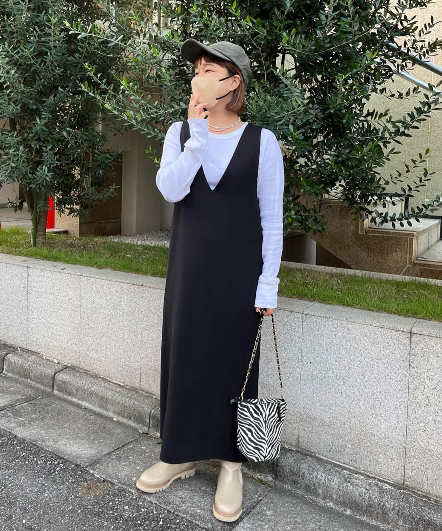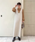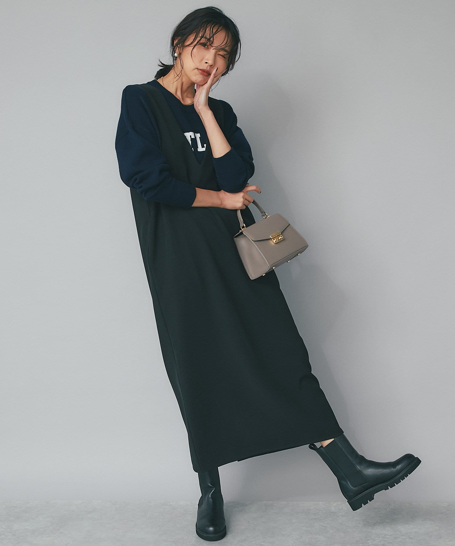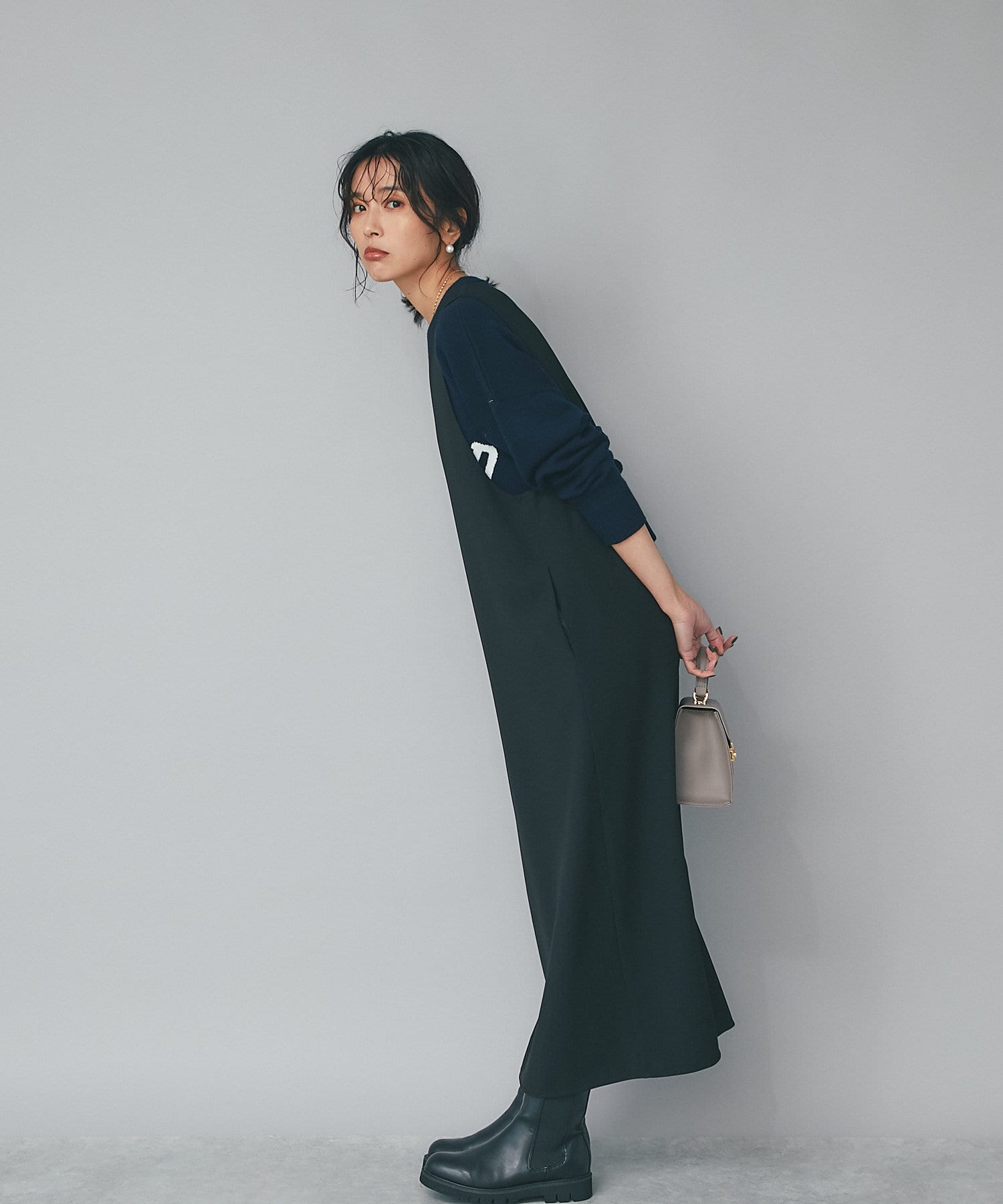 Iラインシルエットとシャープなネックラインのバランスがキレイなマキシ丈ワンピース。 ディープカットされたネックデザインが着こなしにモードなエッセンスをプラスしてくれる1着です。 膝下まで切れ込んだバックスリットで足捌きもよく、後姿に女性らしい抜け感をプラスしました。 スリット上までの裏地付きで滑りもよく、さらっと軽い着心地。 ご自宅で手洗いしていただけるシーズンレスで重宝するアイテムです。