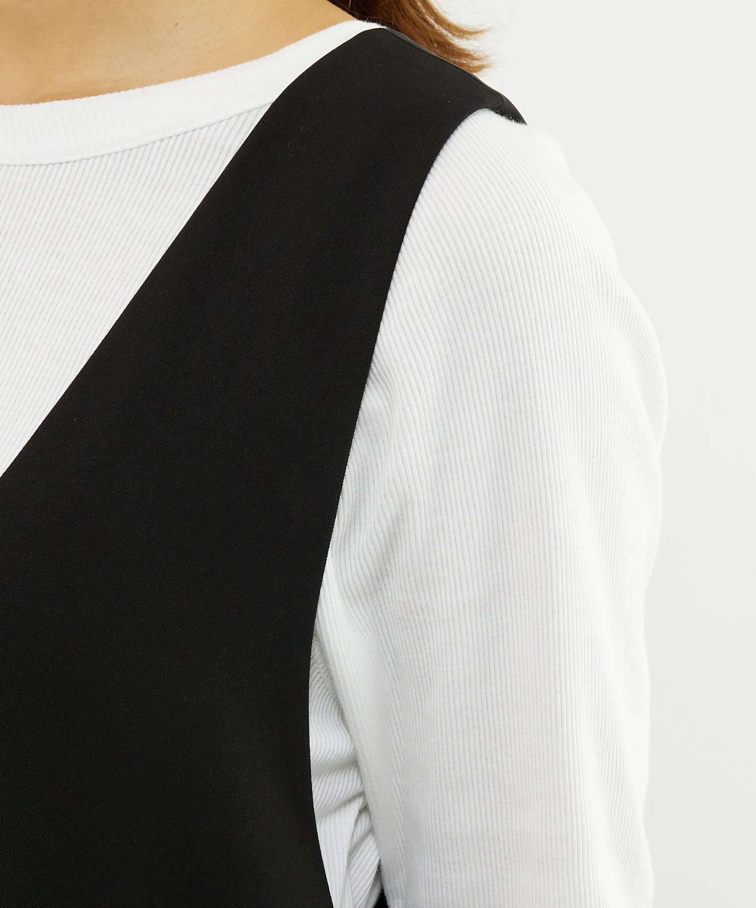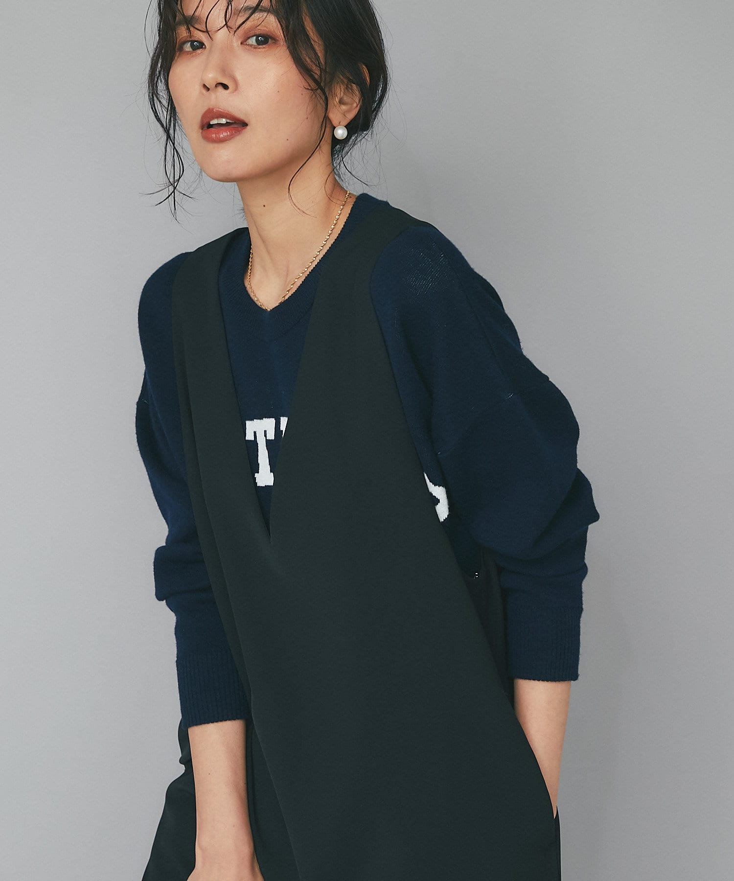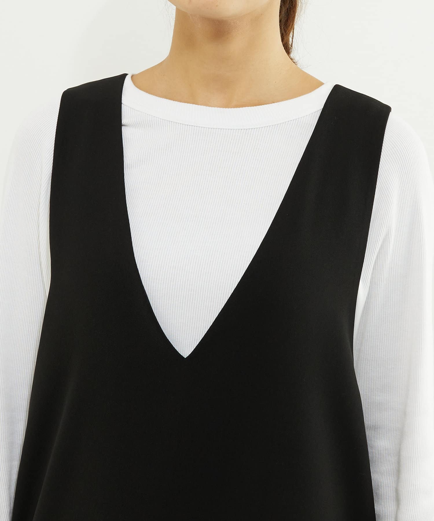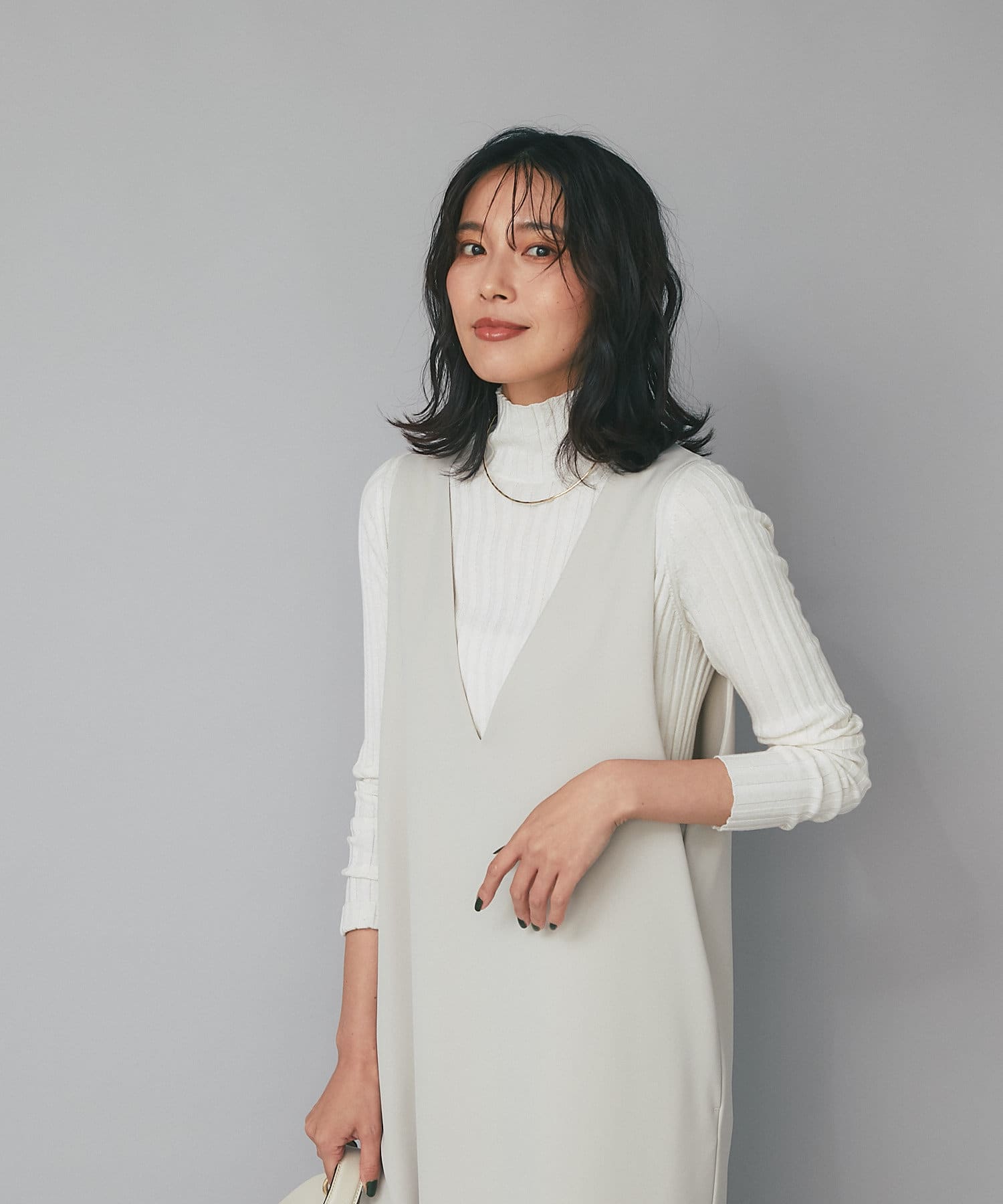 深く開いたアームホールは少し厚手のニットやリラックスしたサイズのシャツと重ねても