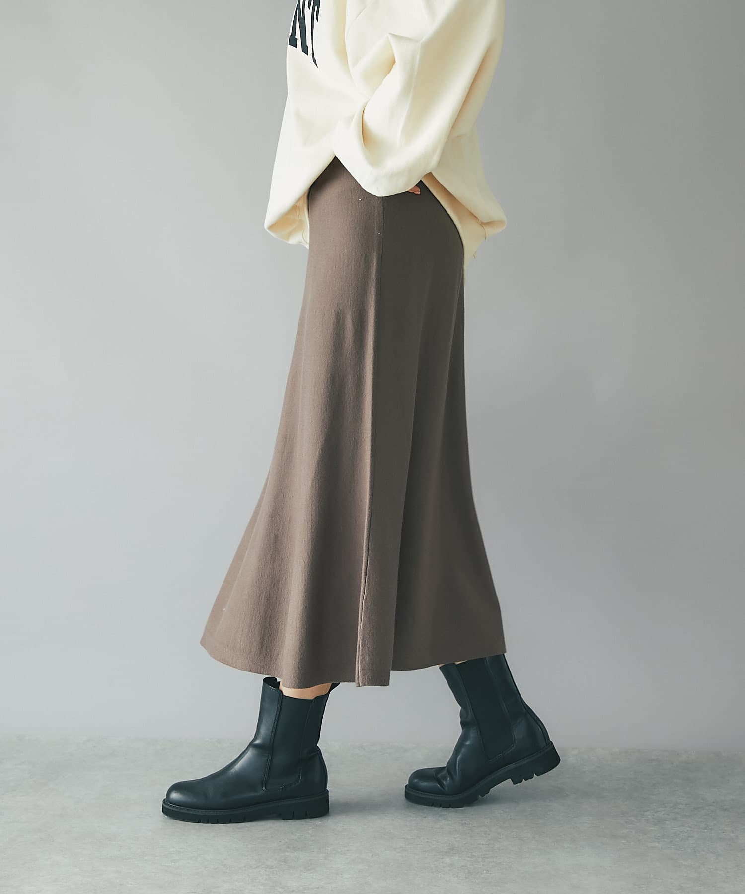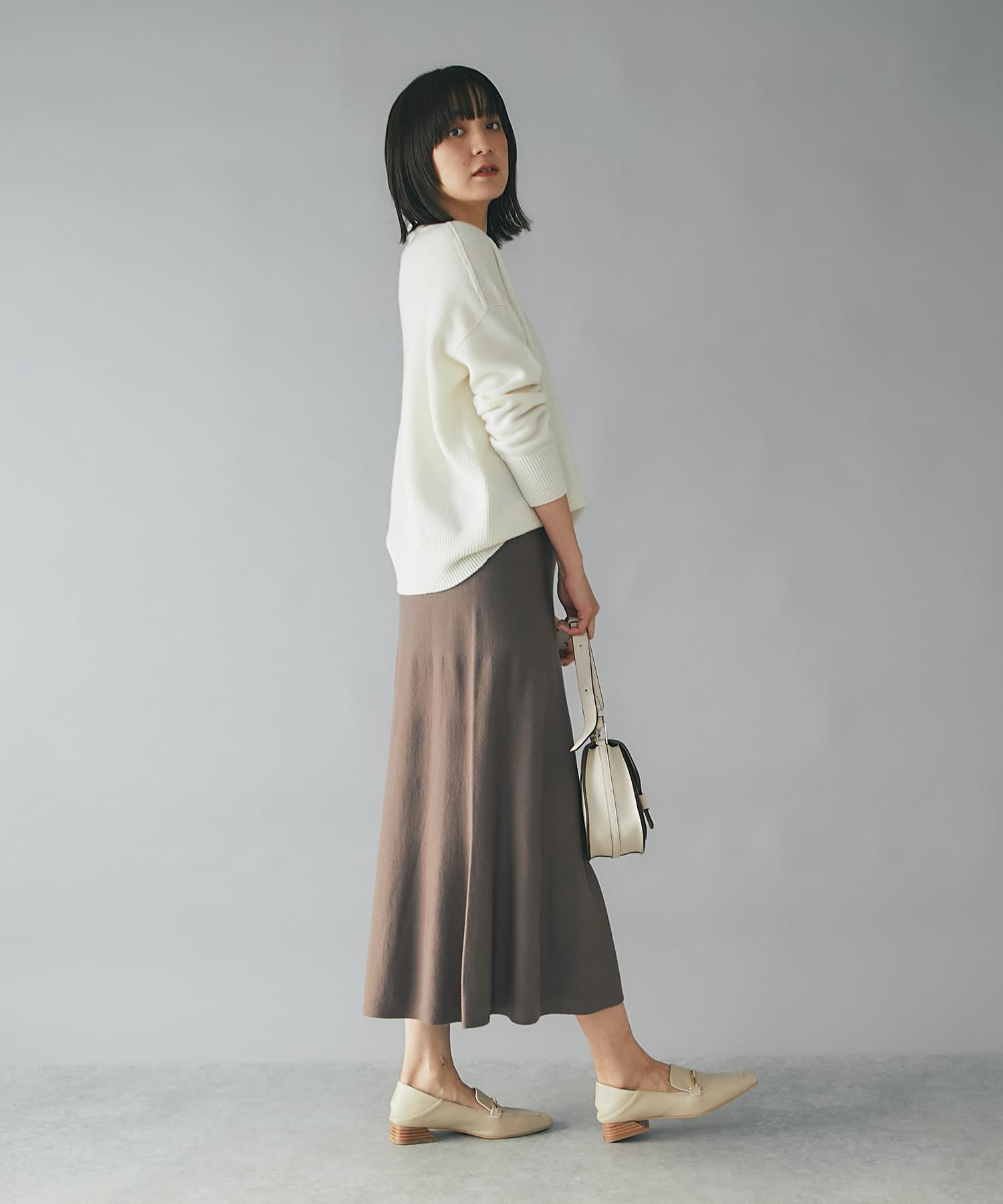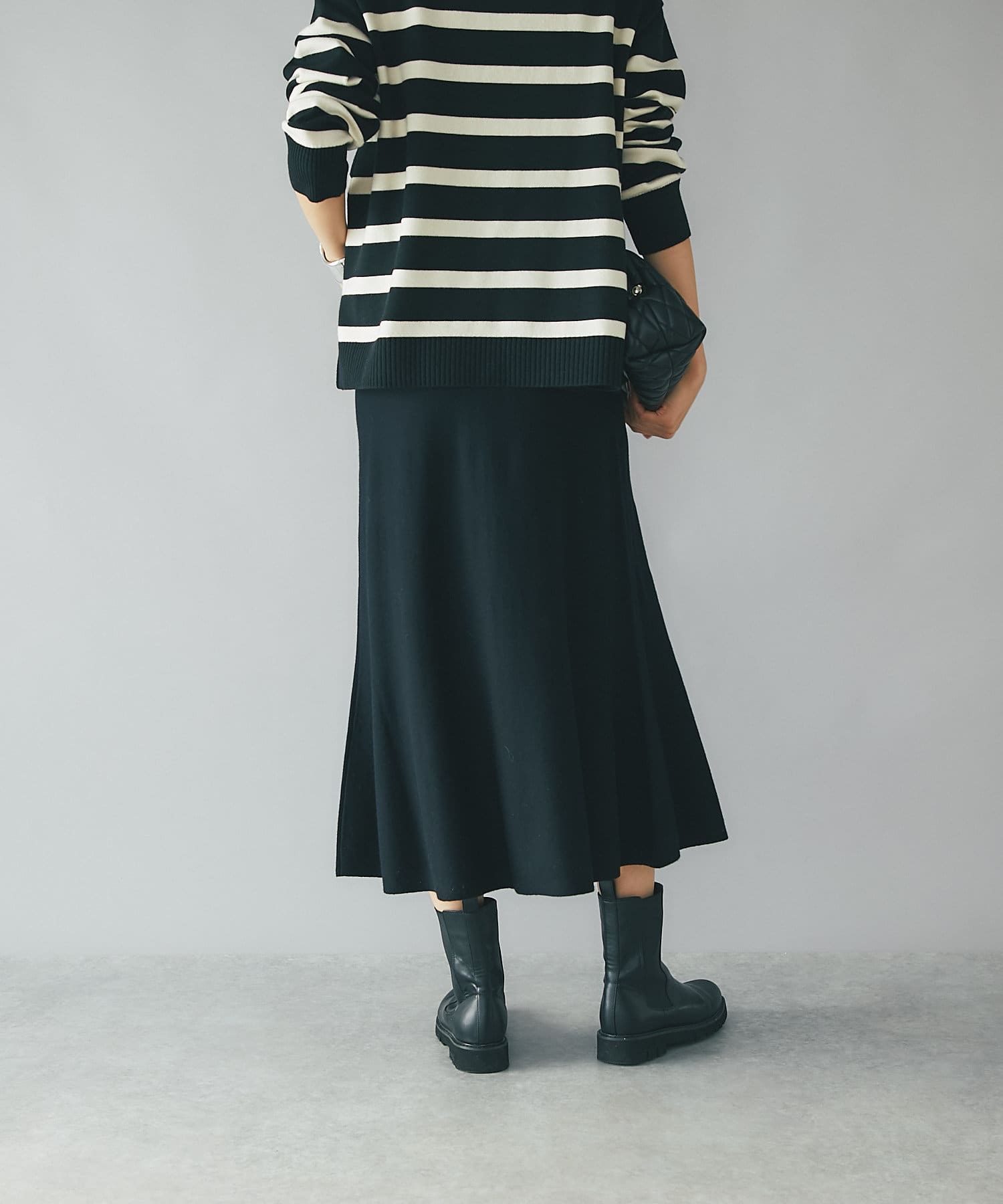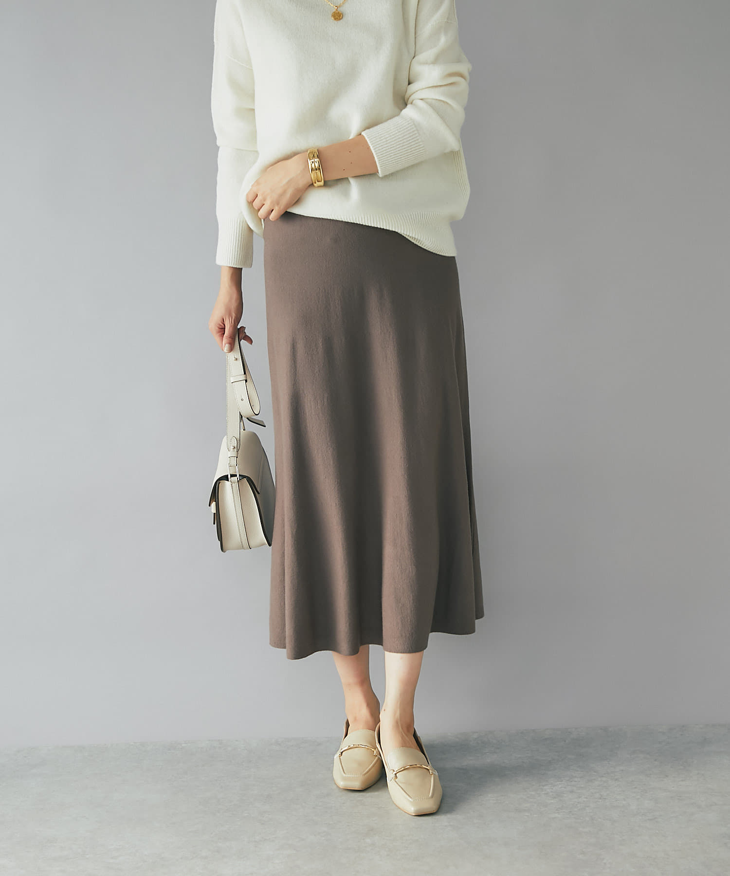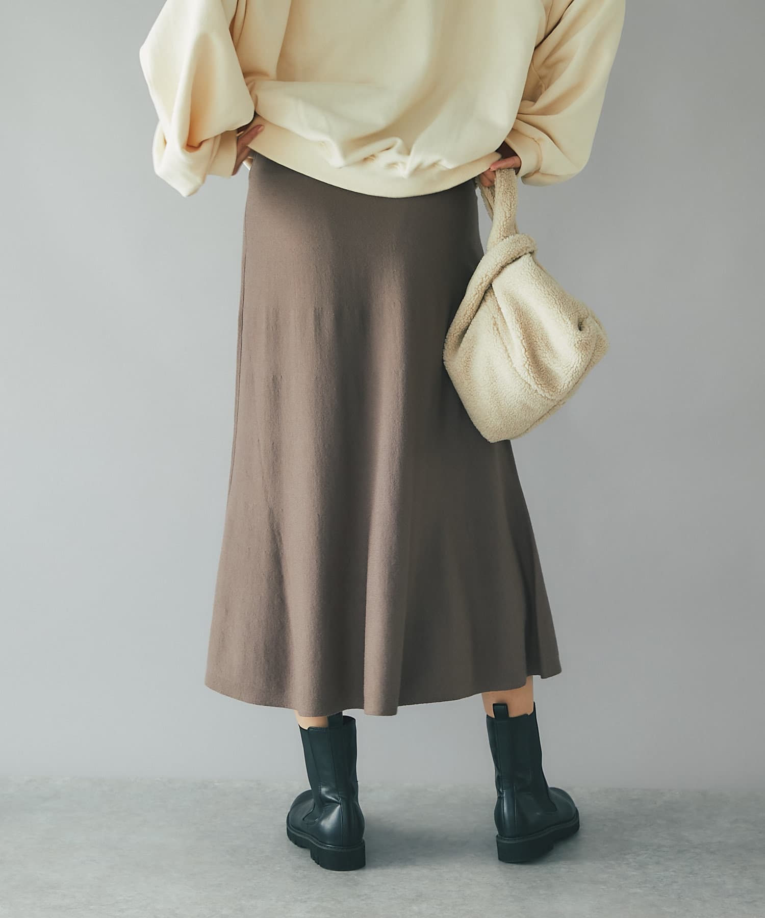 マーメイドシルエットの上品なフレアが素敵なニットスカート。