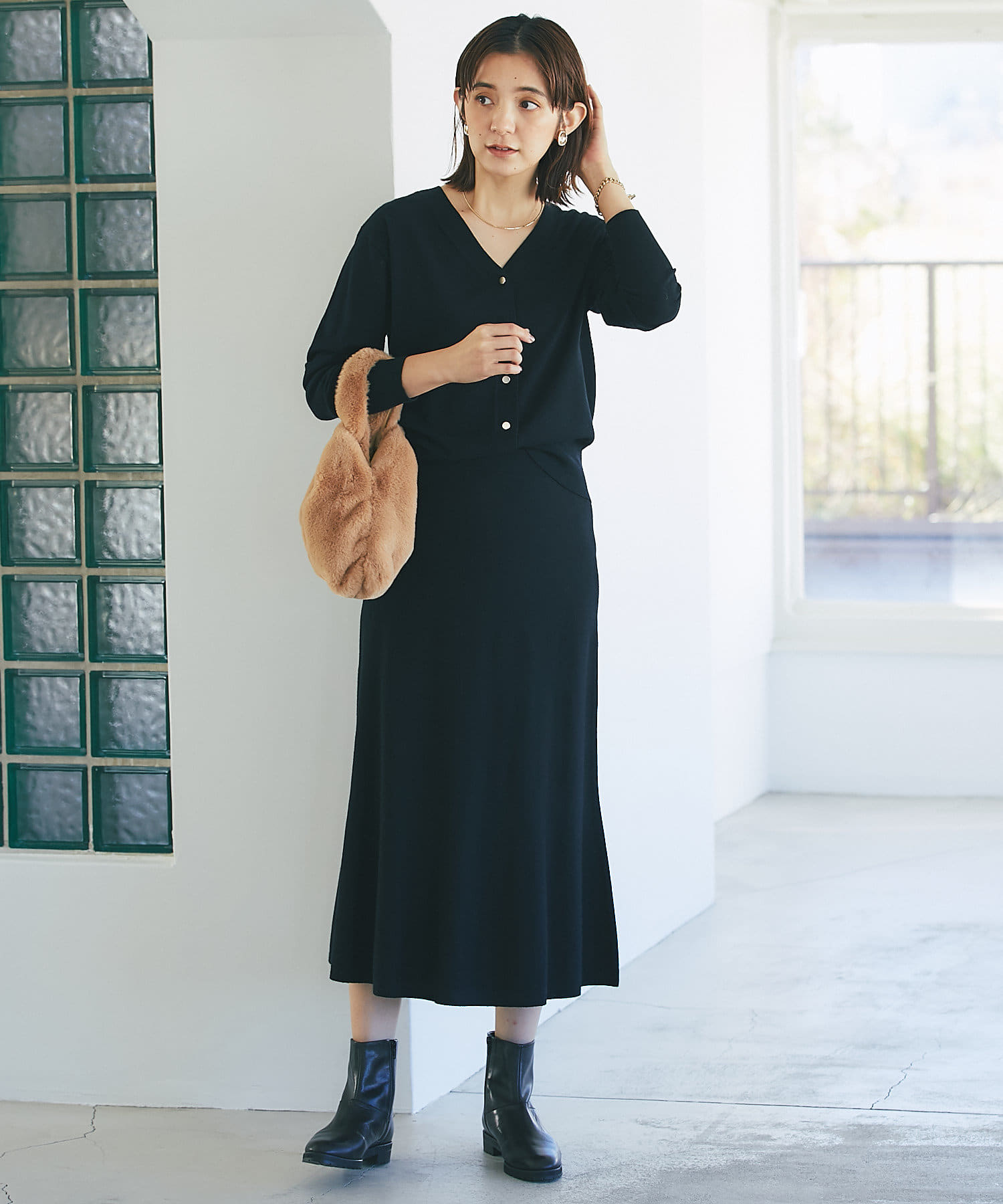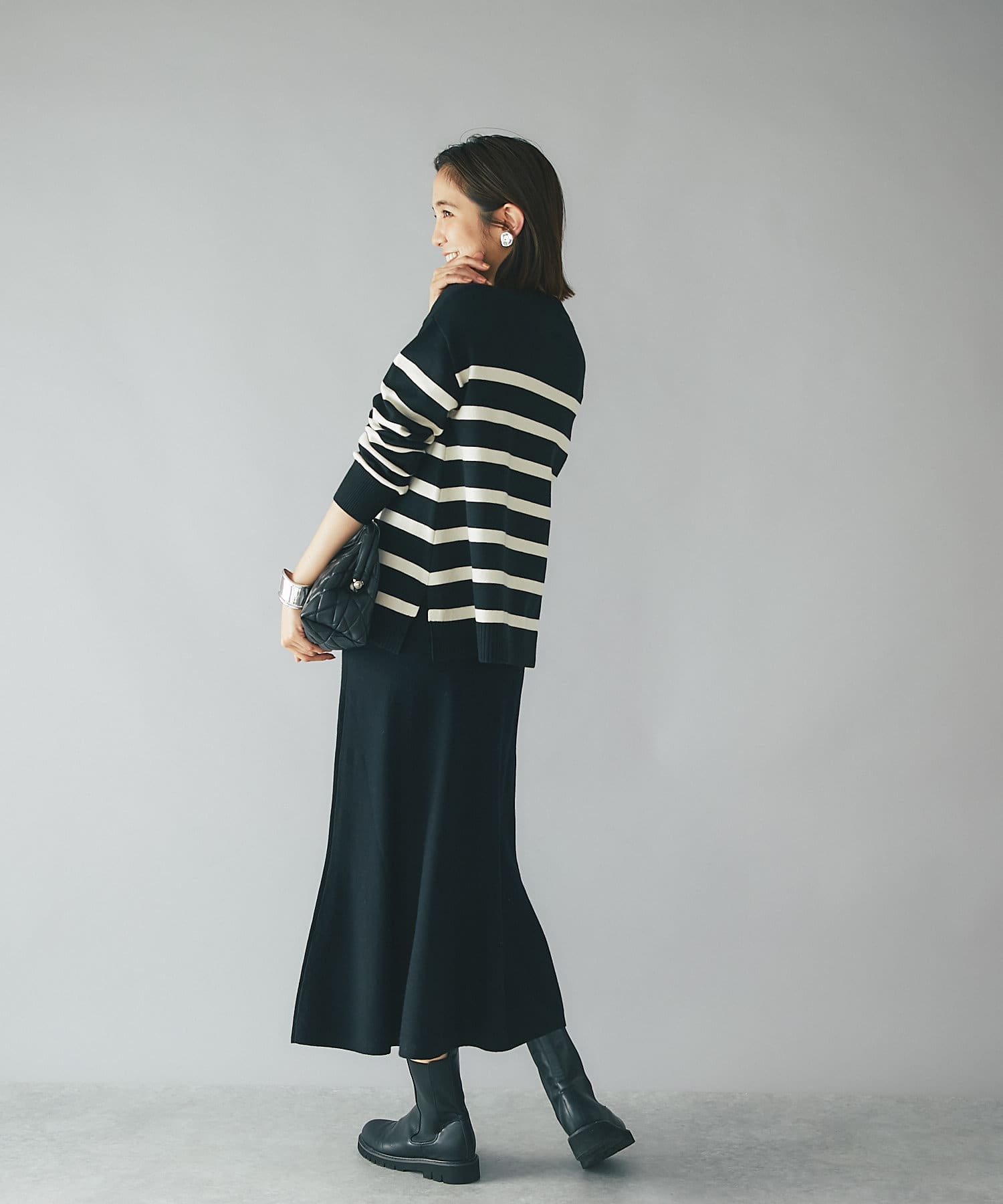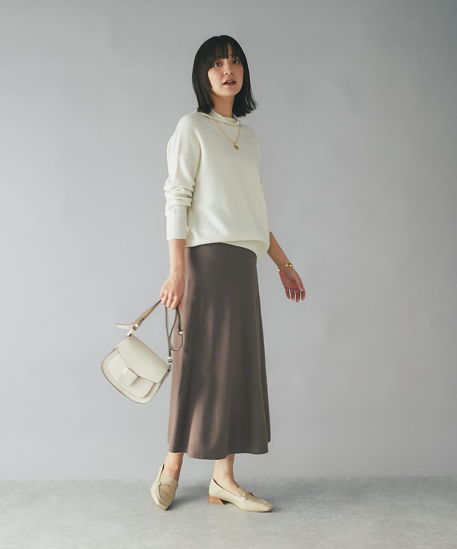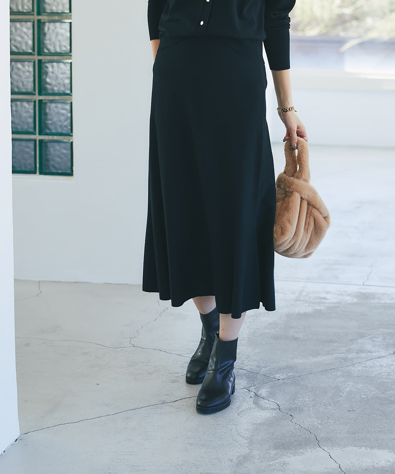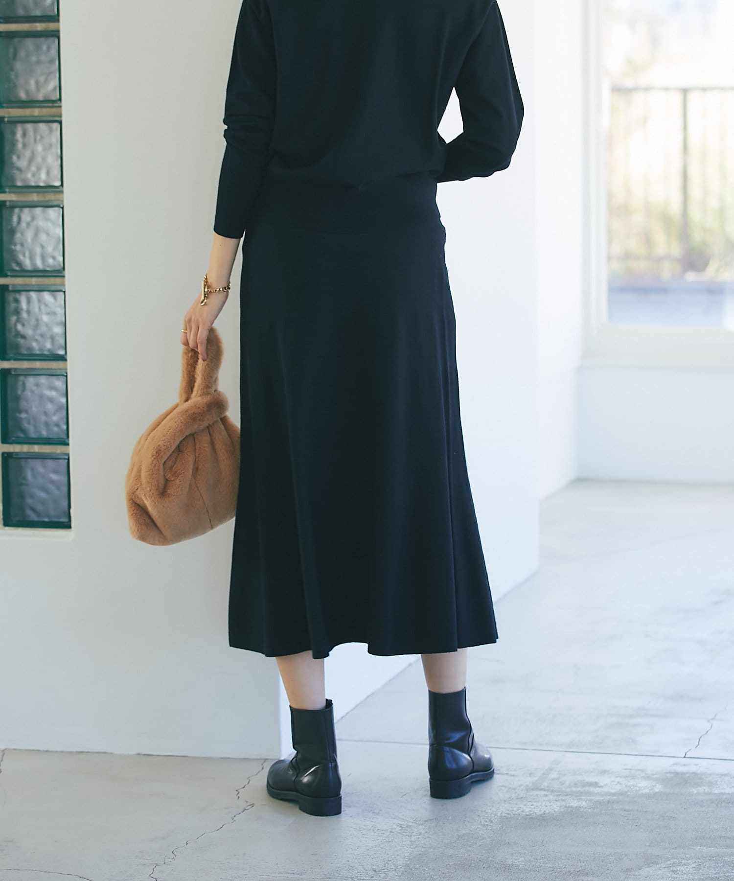 マーメイドシルエットの上品なフレアが素敵なニットスカート。