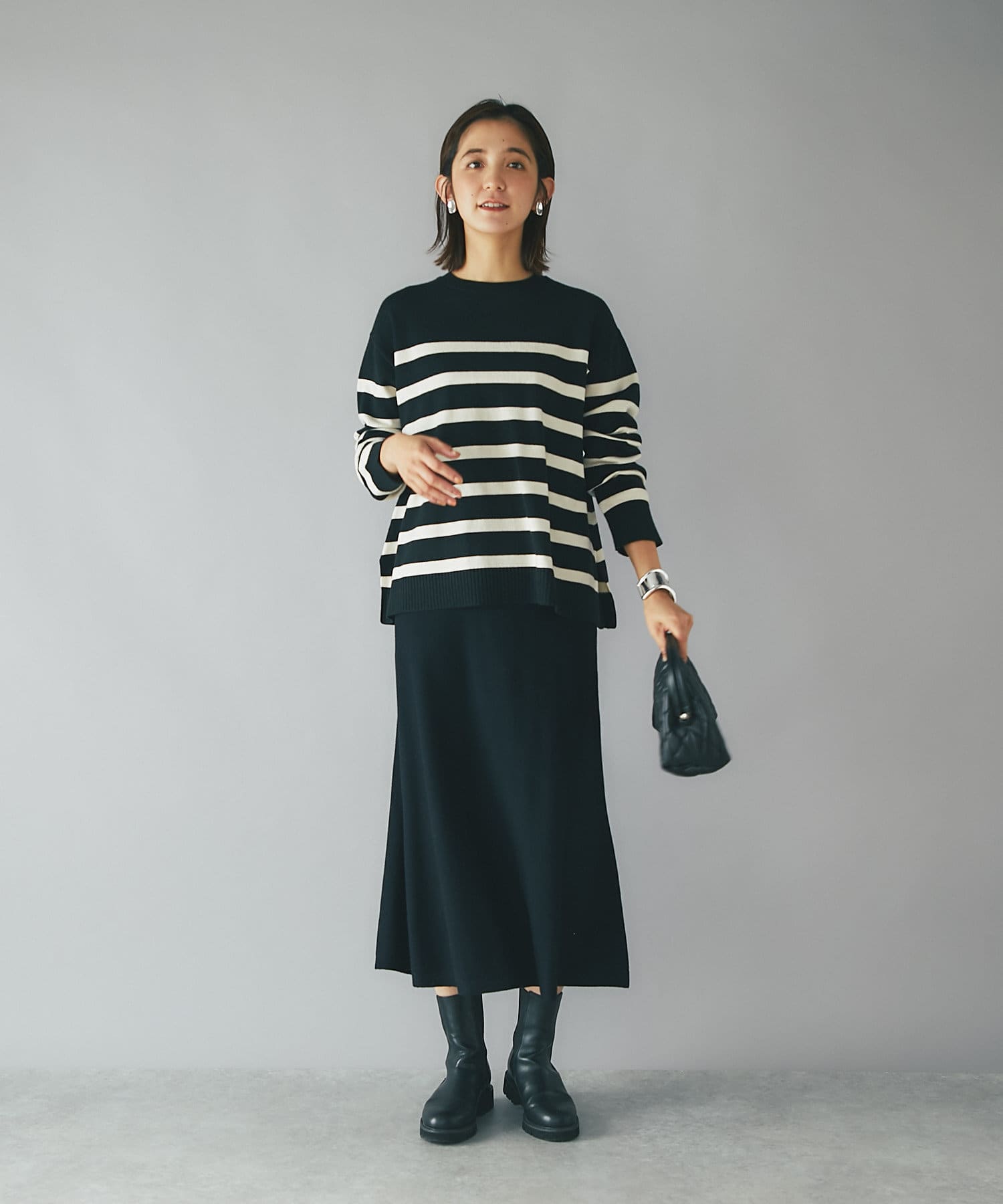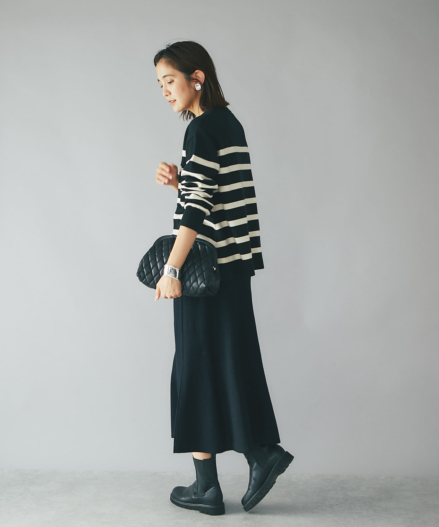 旬なブーツも合わせやすい着丈で、バランスよく着れる一枚。