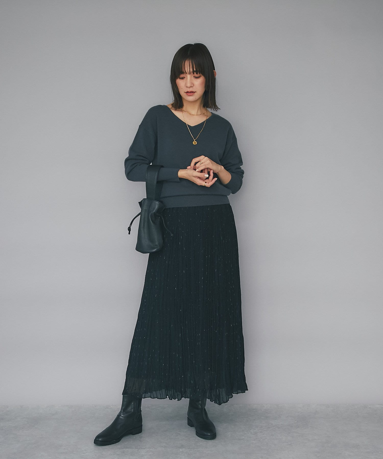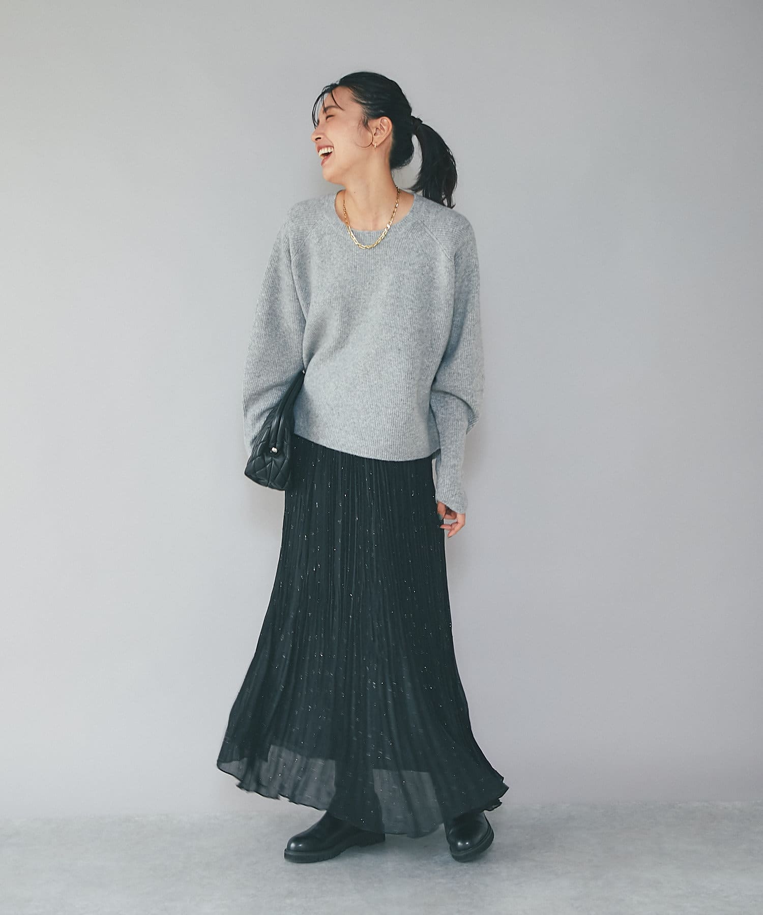 【リラックス感と華やかさを兼ね備えた】キラキラプリーツスカート