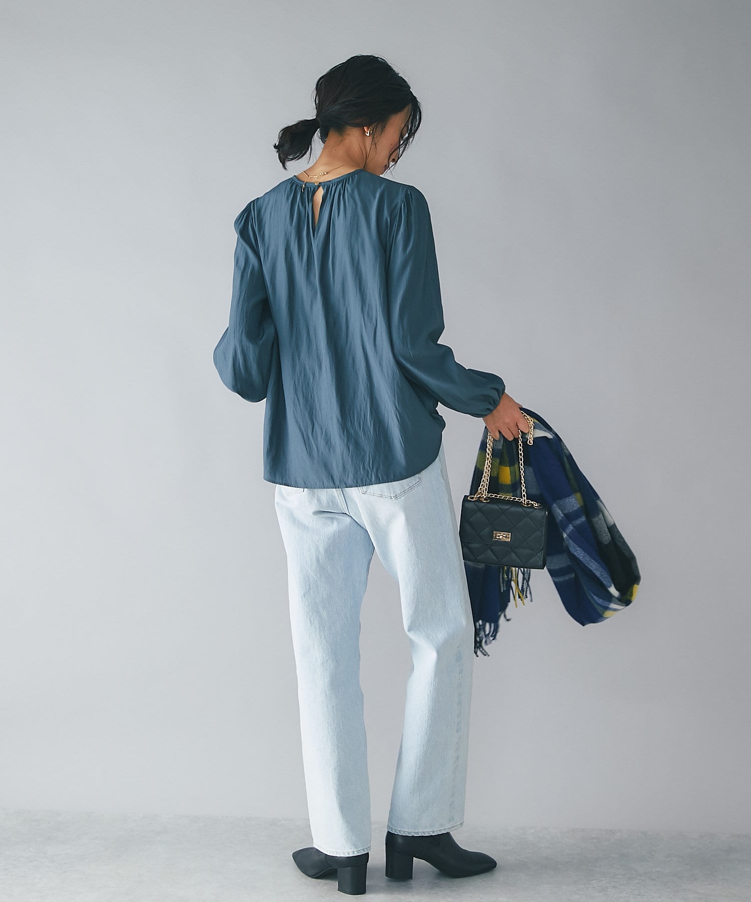 改まった席から、デニムやサロペット合わせのカジュアルなスタイルまで着用シーンの幅が広がる1枚です。                                                                     シワになりにくく、ご自宅で手洗い可能になっているところも嬉しいポイントです。