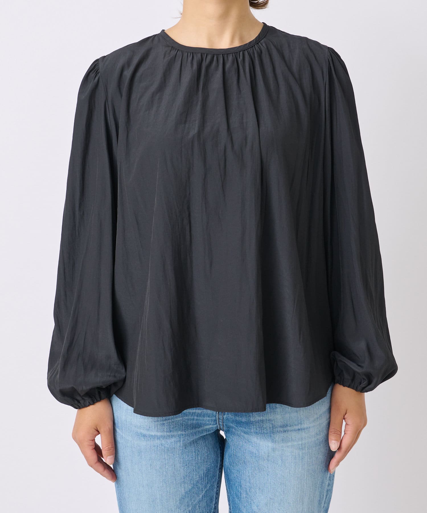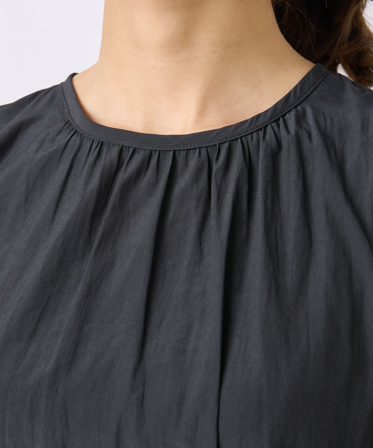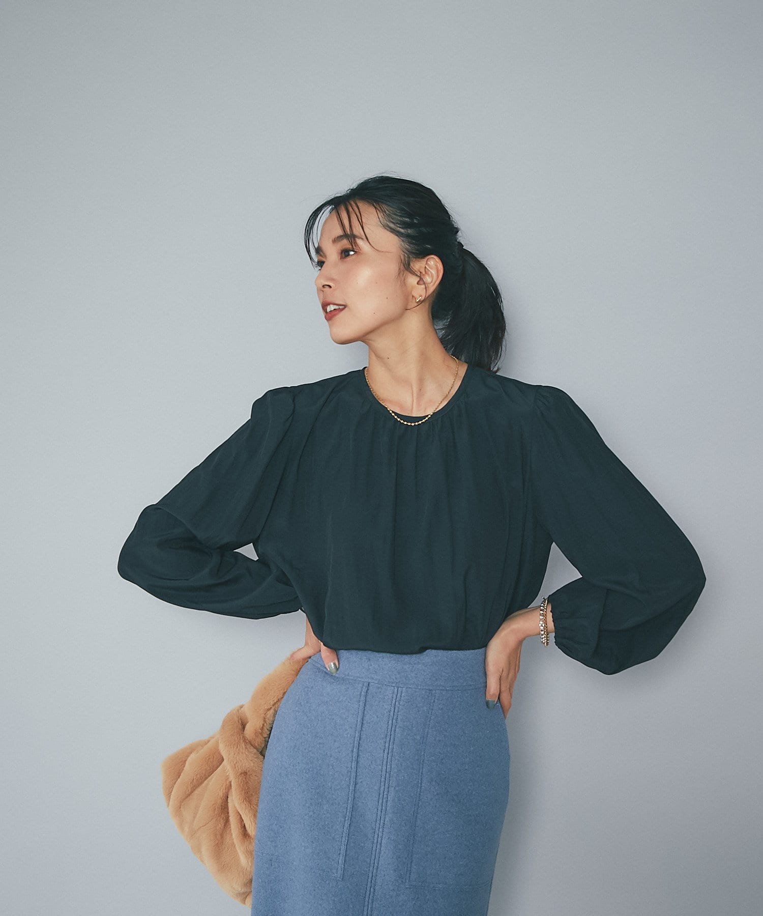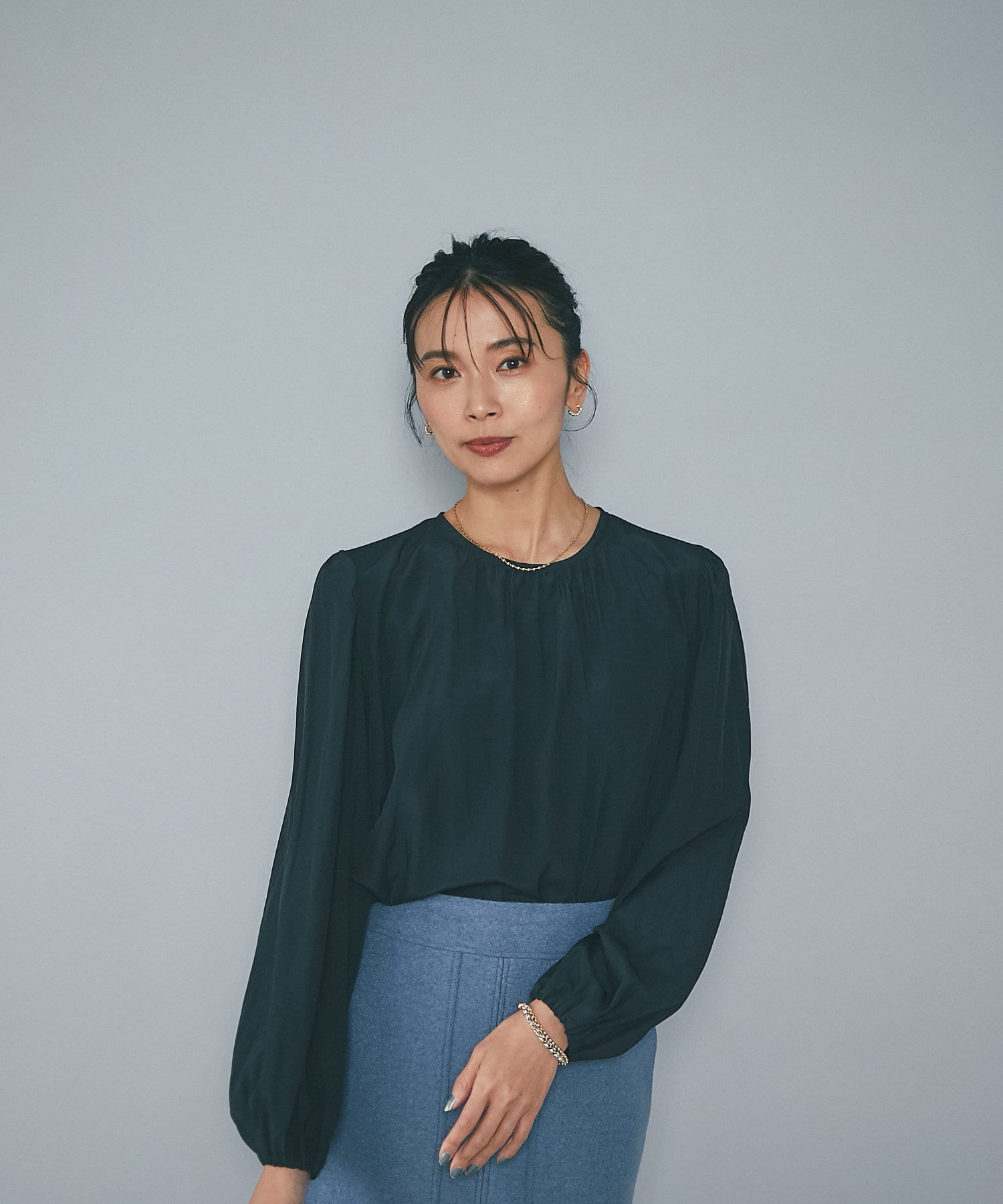カッセンのサラッとした落ち感と華奢な表面感が特徴的な1枚で着映えするブラウス。                                                                                               クラシカルなネックラインとギャザーディティールを効かせたデザインで、上品な佇まいのある1着。