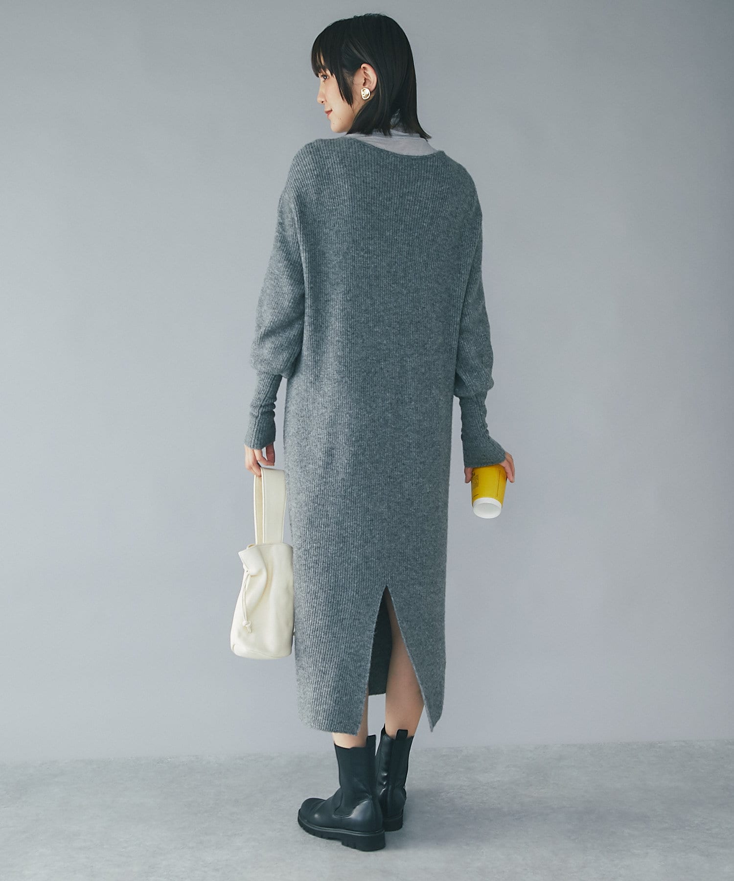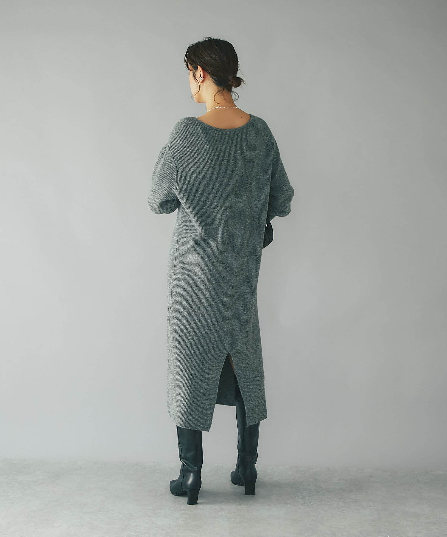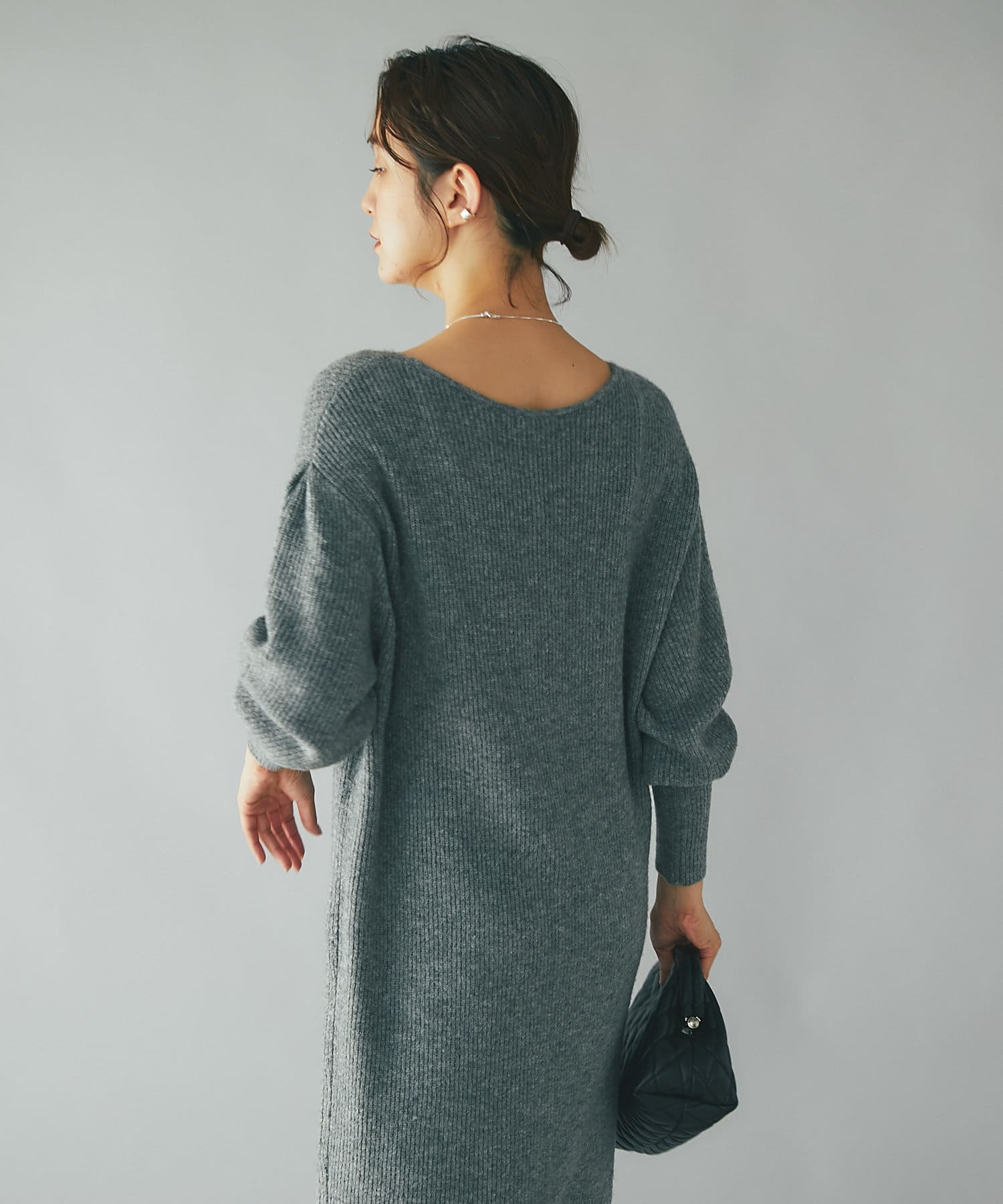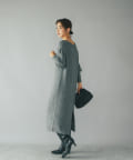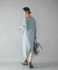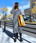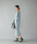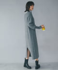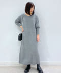 たぷっとしたスリーブとフィット感のあるロングリブ、裾のボリュームを抑えたマキシ丈のシルエット、全体のバランスが良くムードのある着こなしが叶うニットワンピース。