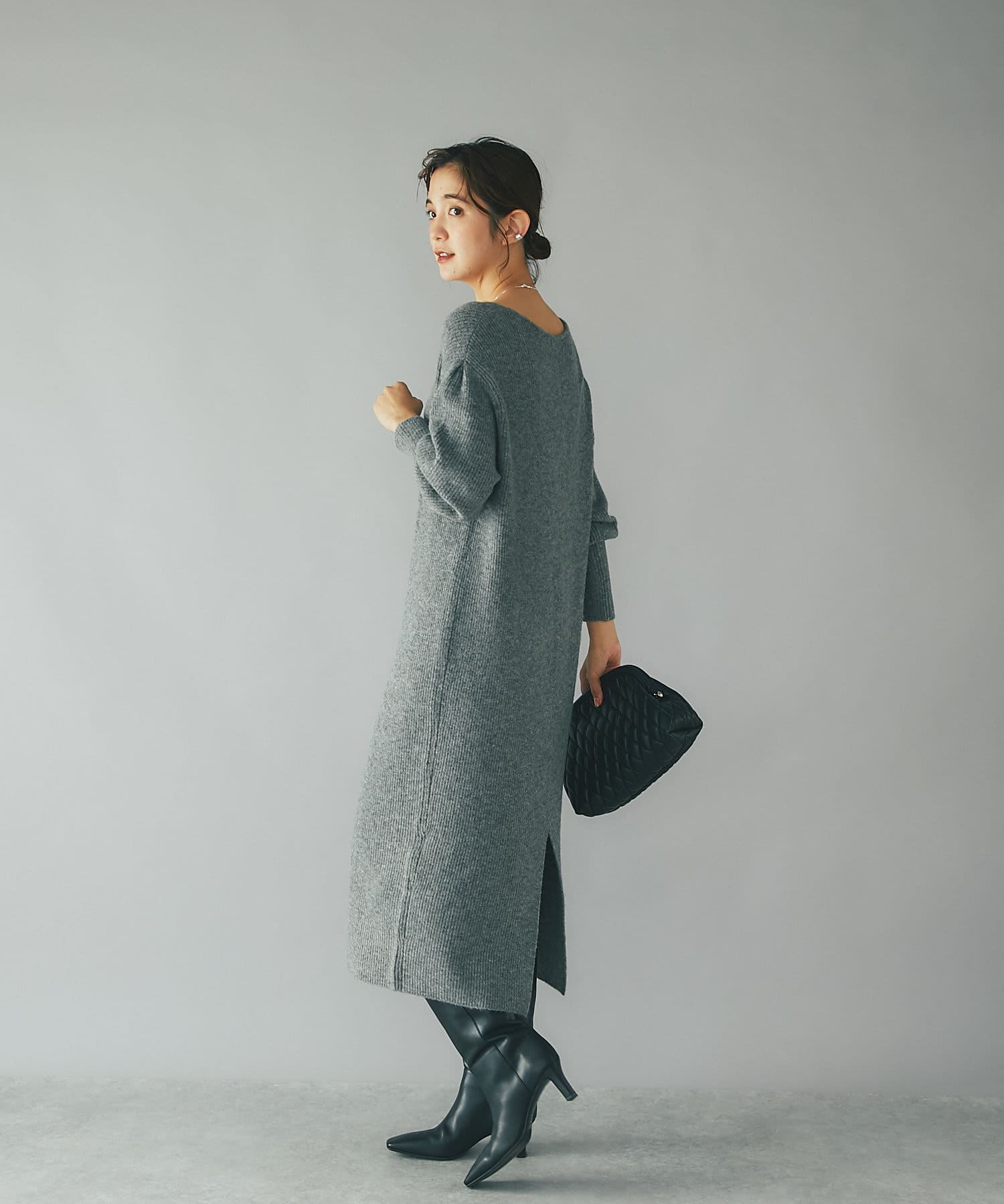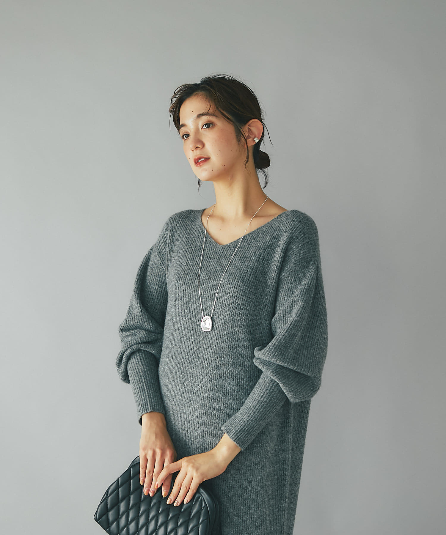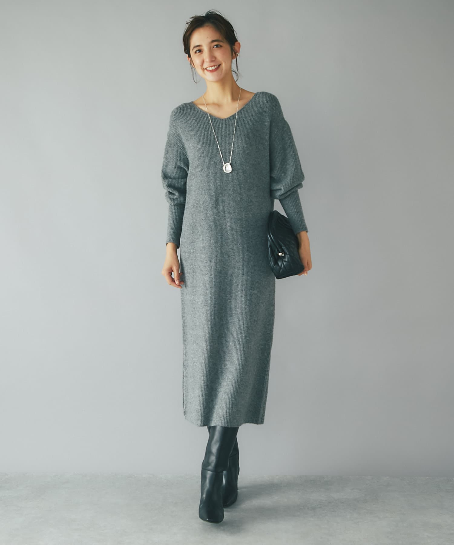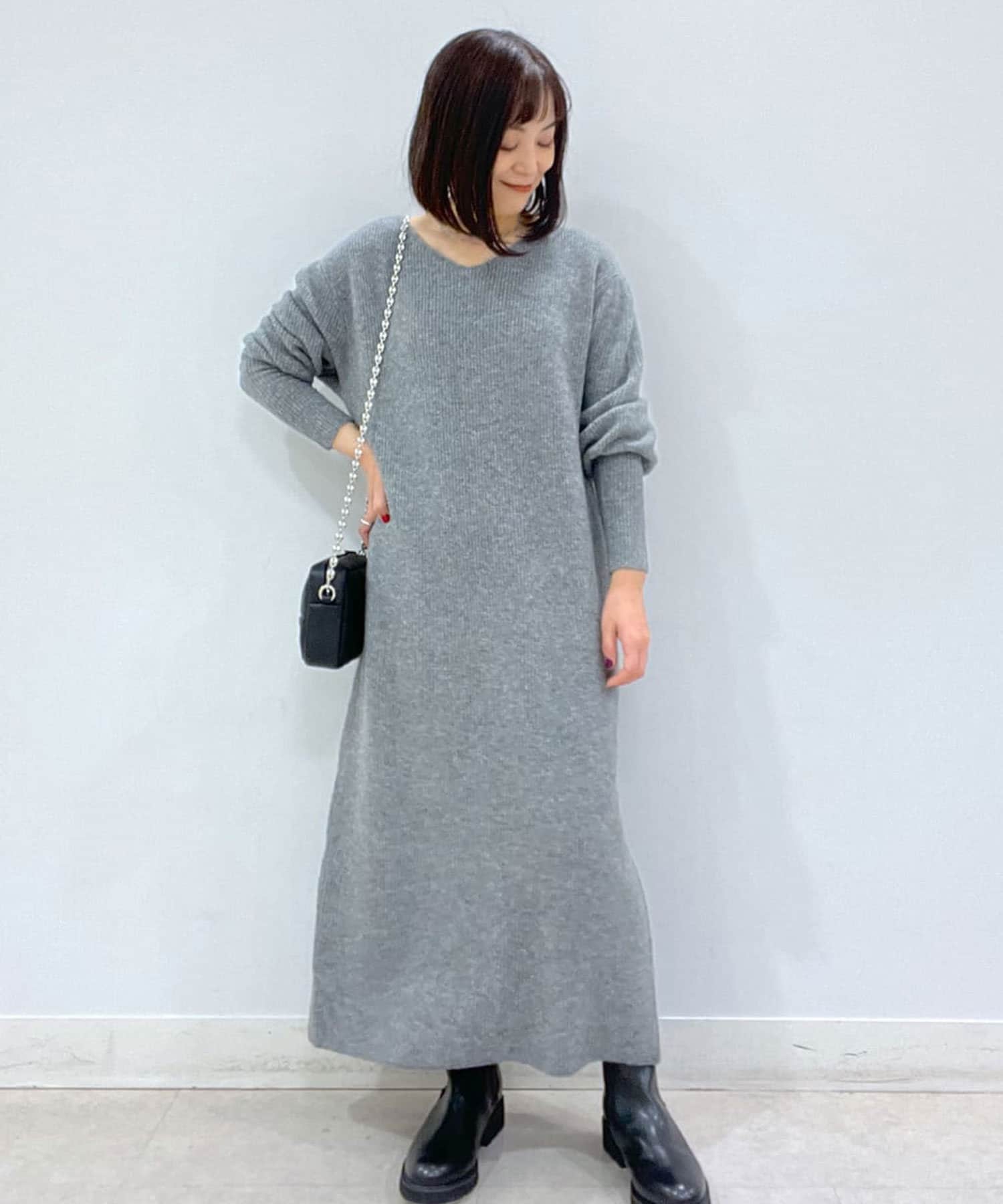 デザイナーの推しカラーは今季トレンドのグレー。アクセサリーの質感次第でフェミニンにもモードにもこなせるのでぜひ押さえていただきたいカラーです。