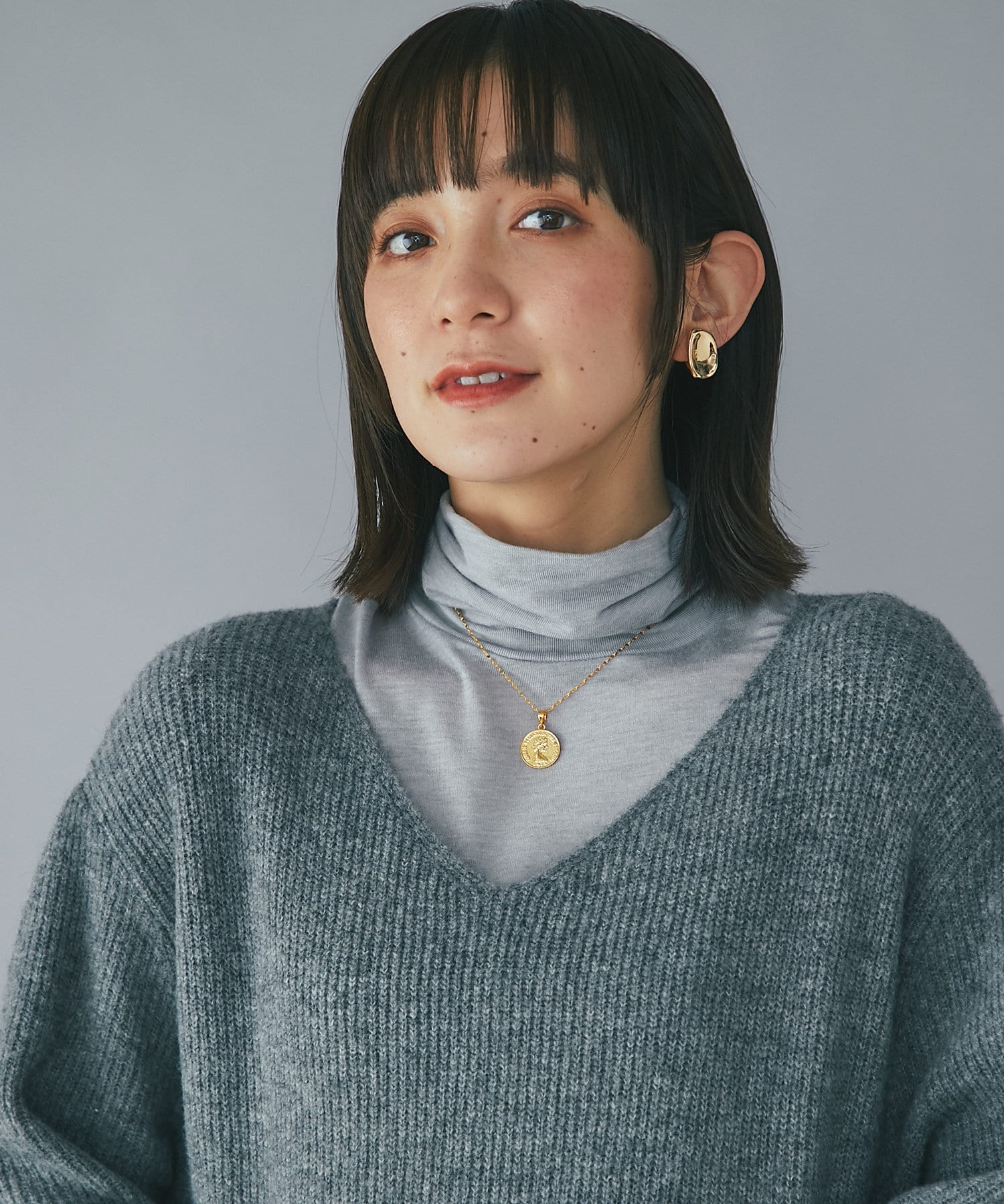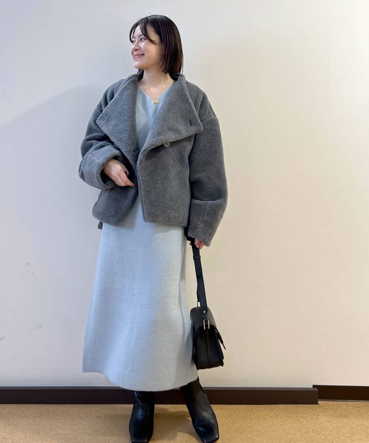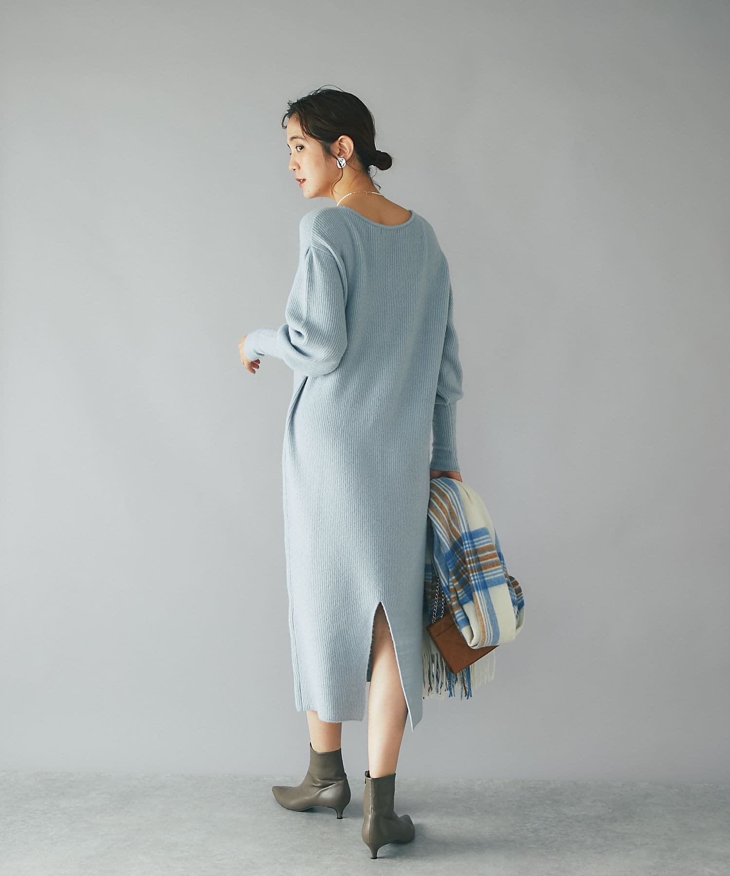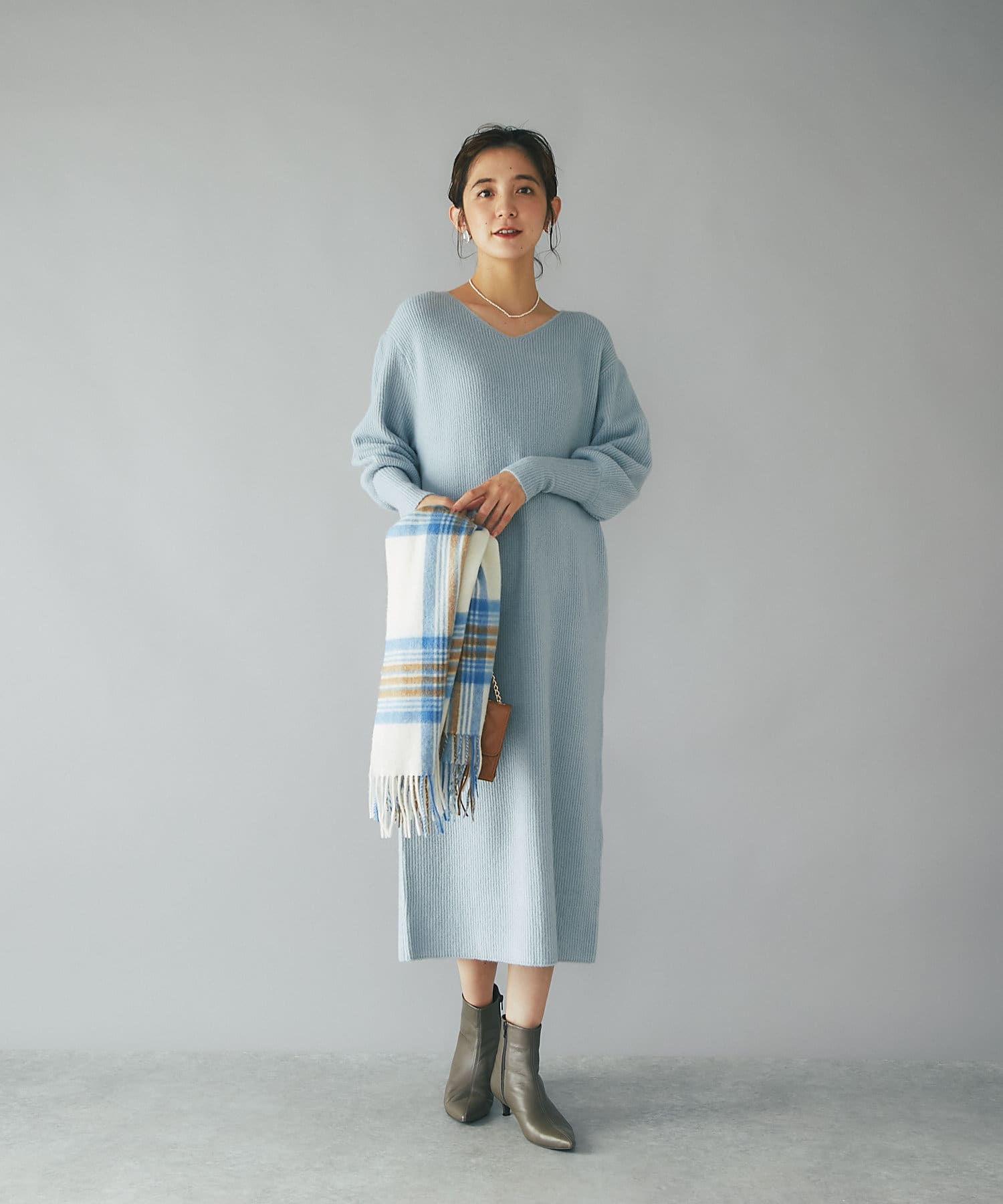デザイナーの推しカラーは今季トレンドのグレー。アクセサリーの質感次第でフェミニンにもモードにもこなせるのでぜひ押さえていただきたいカラーです。