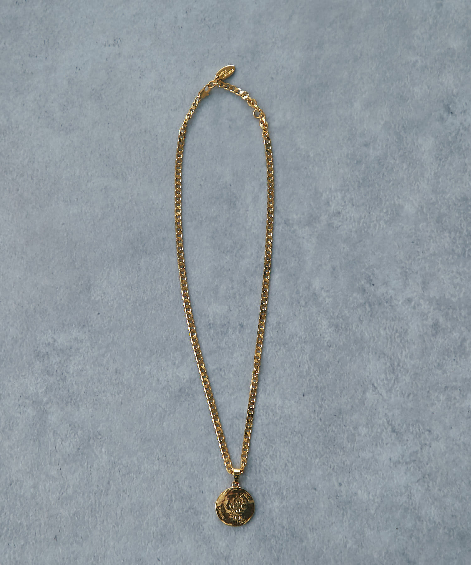 ヴィンテージライクデザインが魅力のコインモチーフショートネックレス。