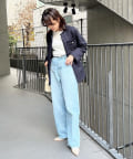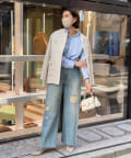 シンプルなデニムスタイルに映える華やかさのある一枚。