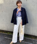 丸みのあるややオーバーなシルエット。華やかさのある金ボタンがスタイリングのアクセントになり◎
